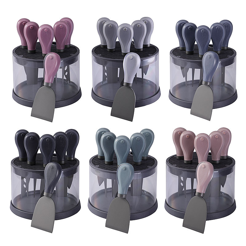新款芝士刀座6件套组合套装奶酪刀具刀叉奶油刀不锈钢镀芝士刀