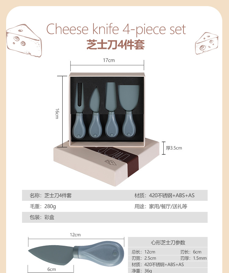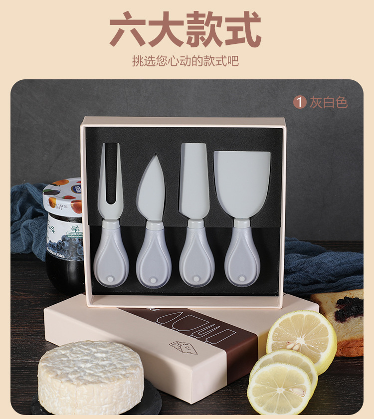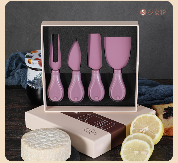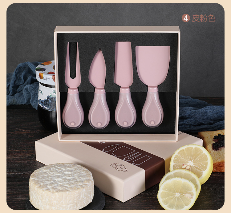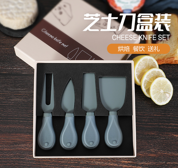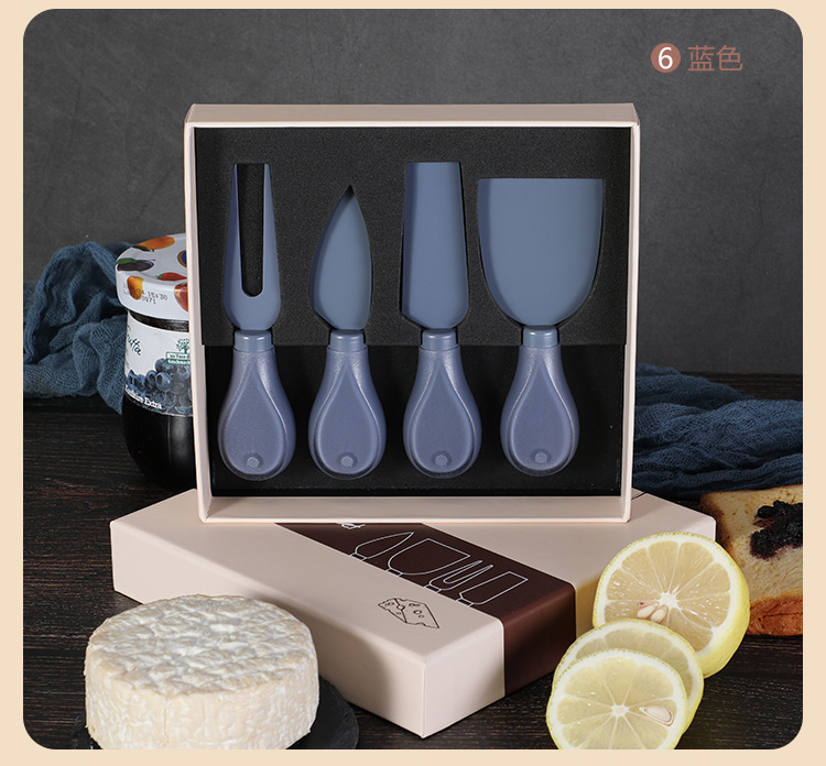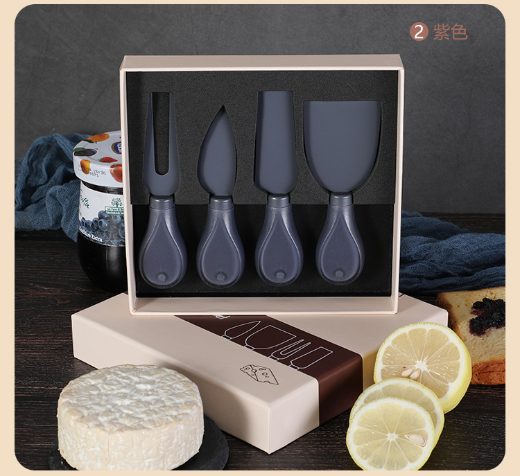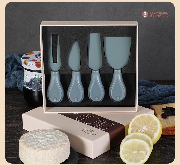跨境礼盒黄油刀奶酪刀彩色不锈钢餐具套装创意4件套芝士刀套装