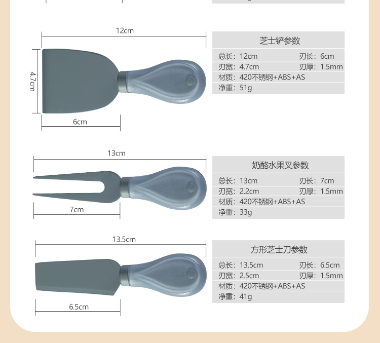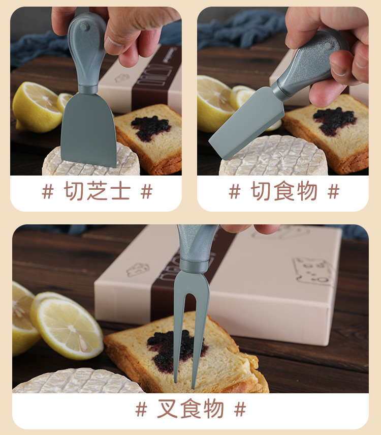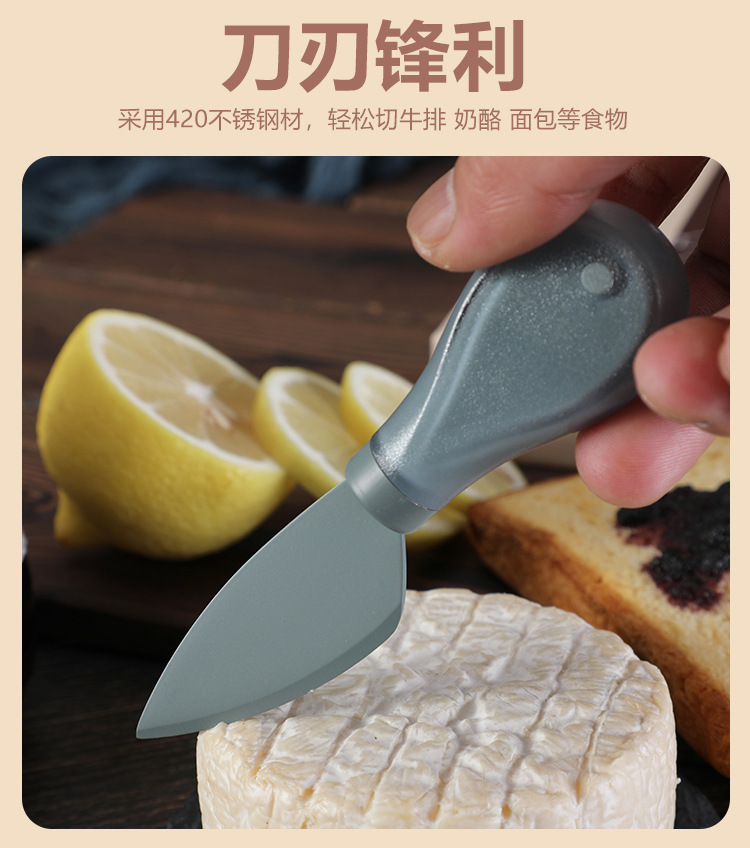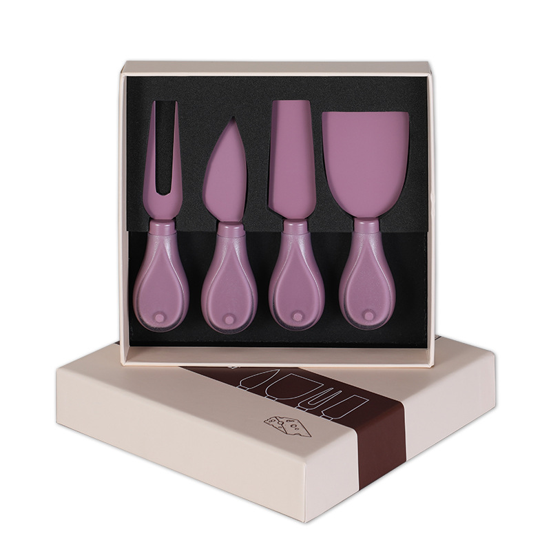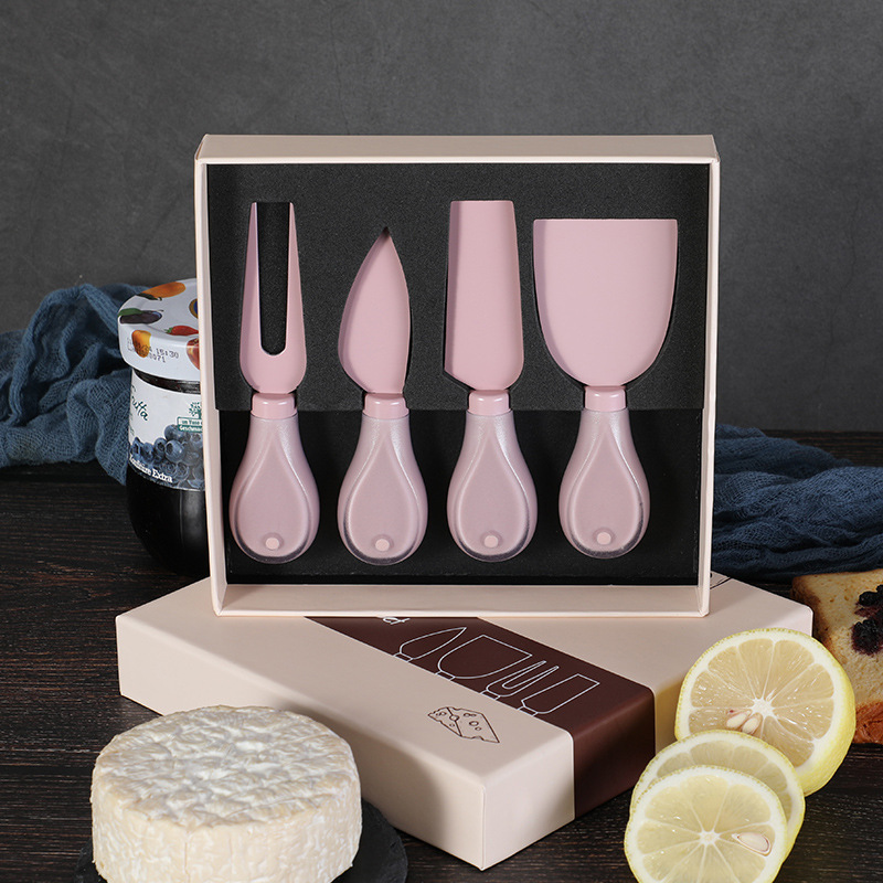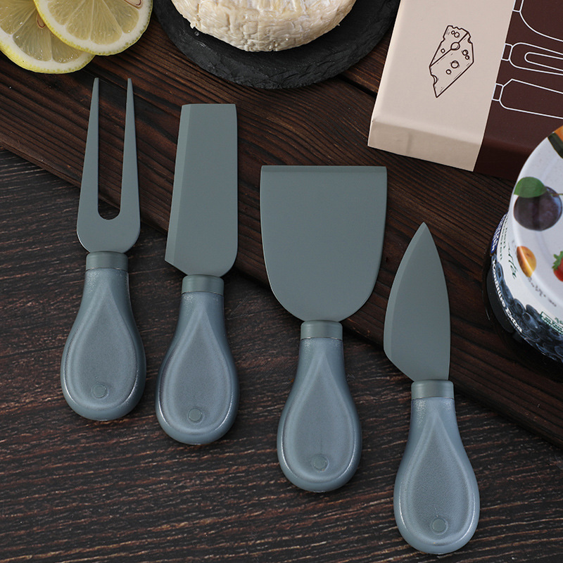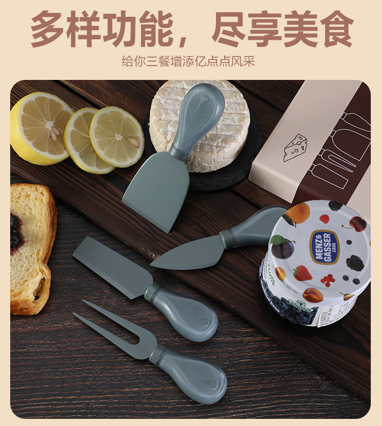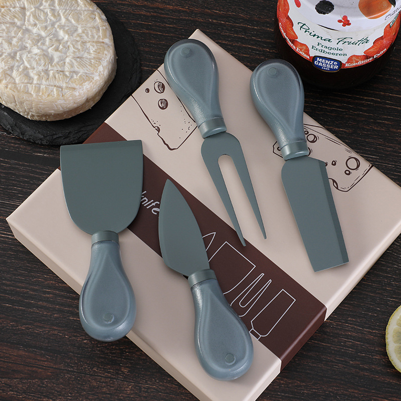 跨境礼盒黄油刀奶酪刀彩色不锈钢餐具套装创意4件套芝士刀套装