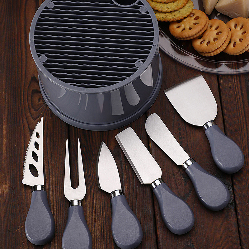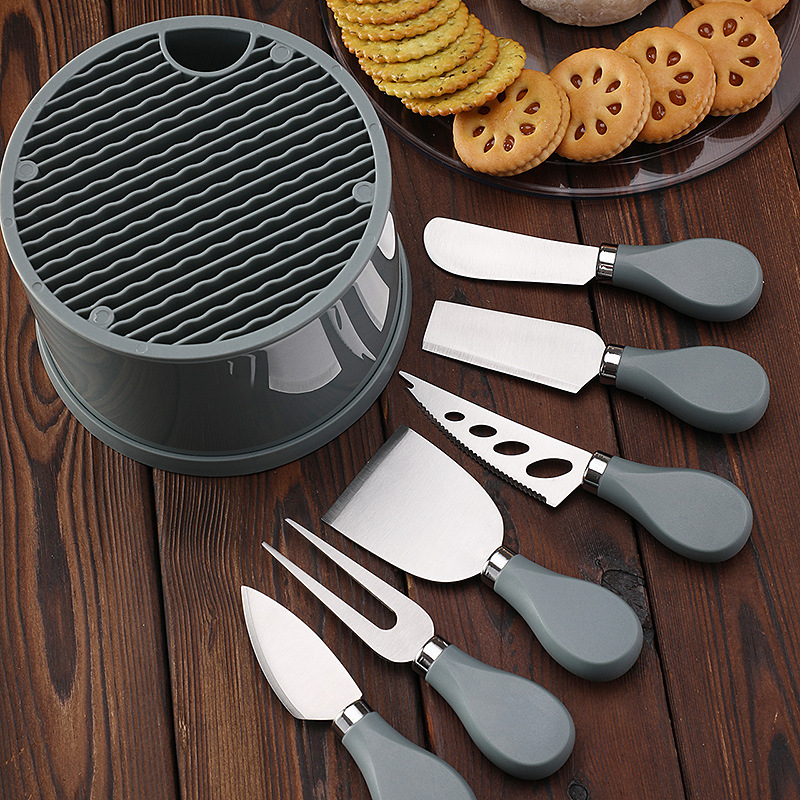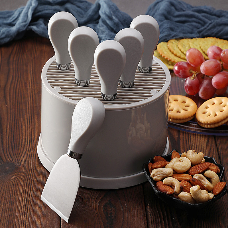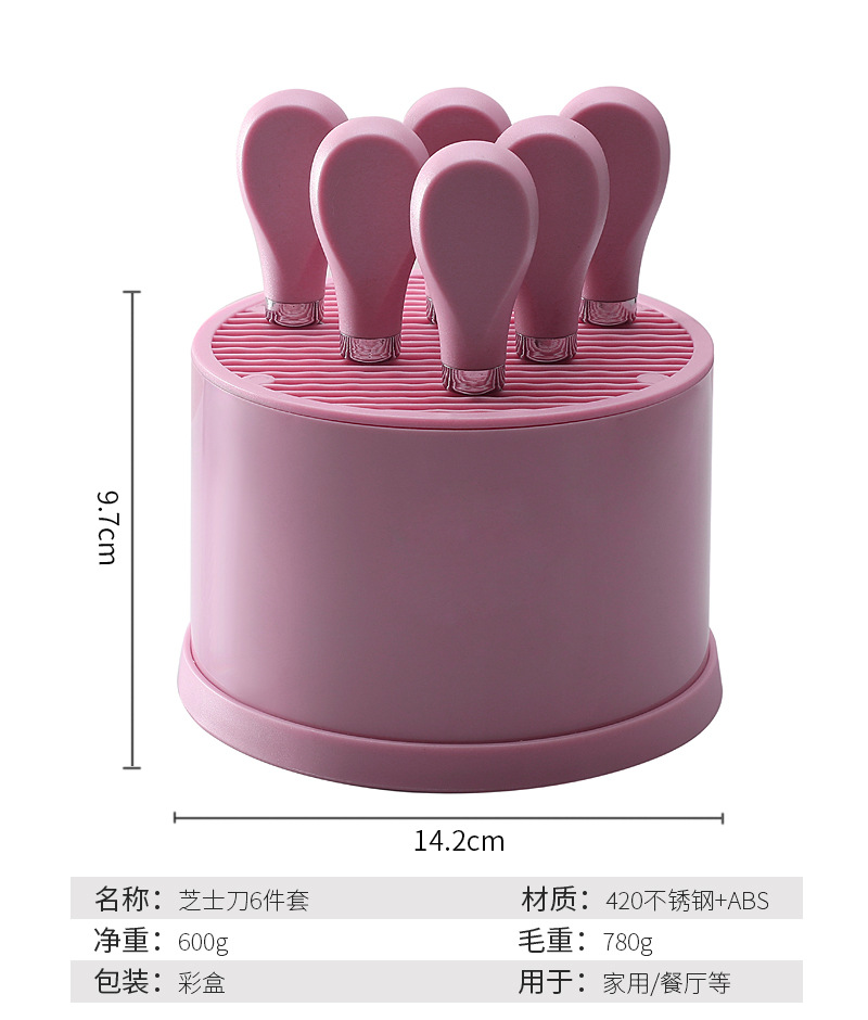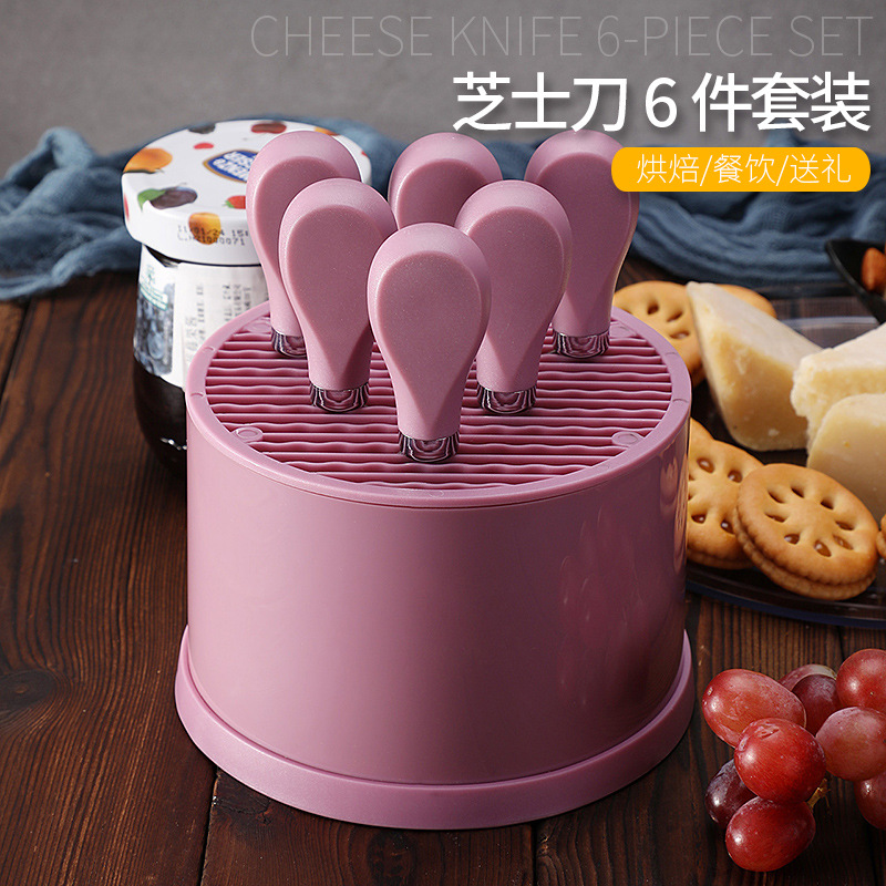 跨境带刀座的奶酪黄油奶油抺厨房餐具刀叉6件套芝士刀套装蛋糕