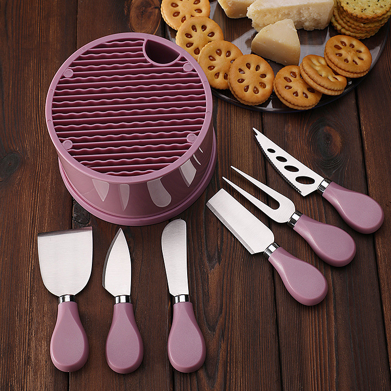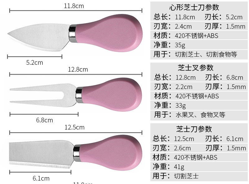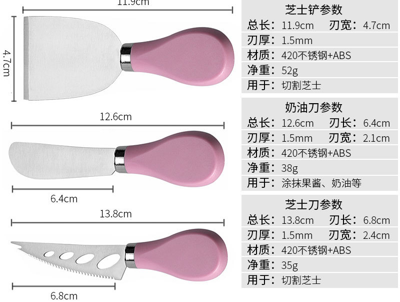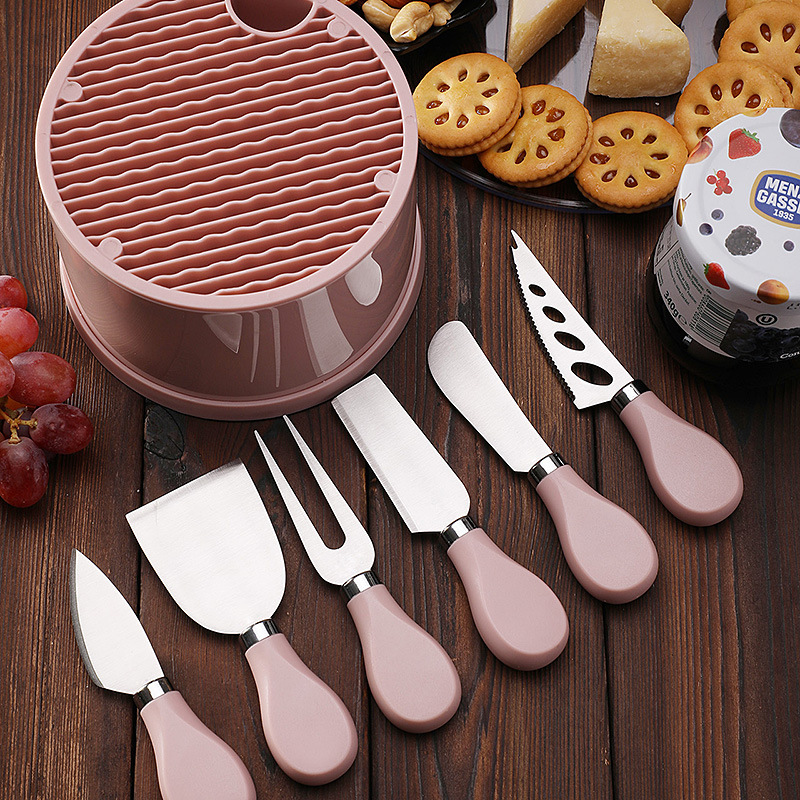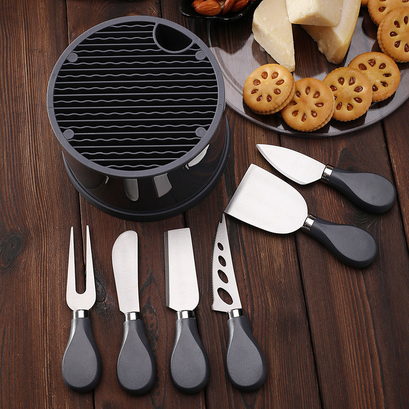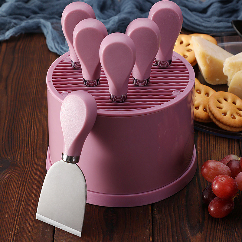 跨境带刀座的奶酪黄油奶油抺厨房餐具刀叉6件套芝士刀套装蛋糕