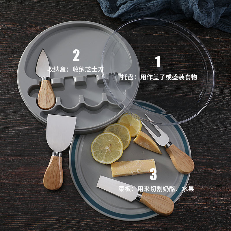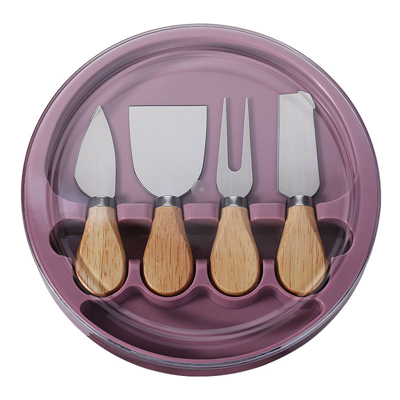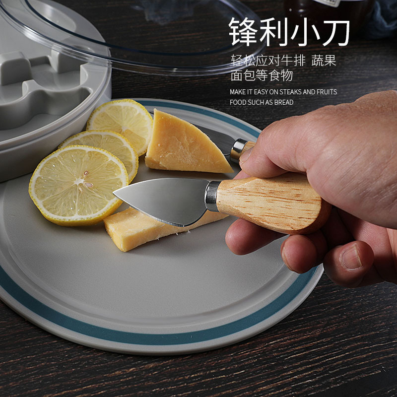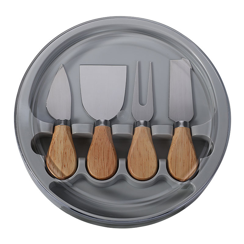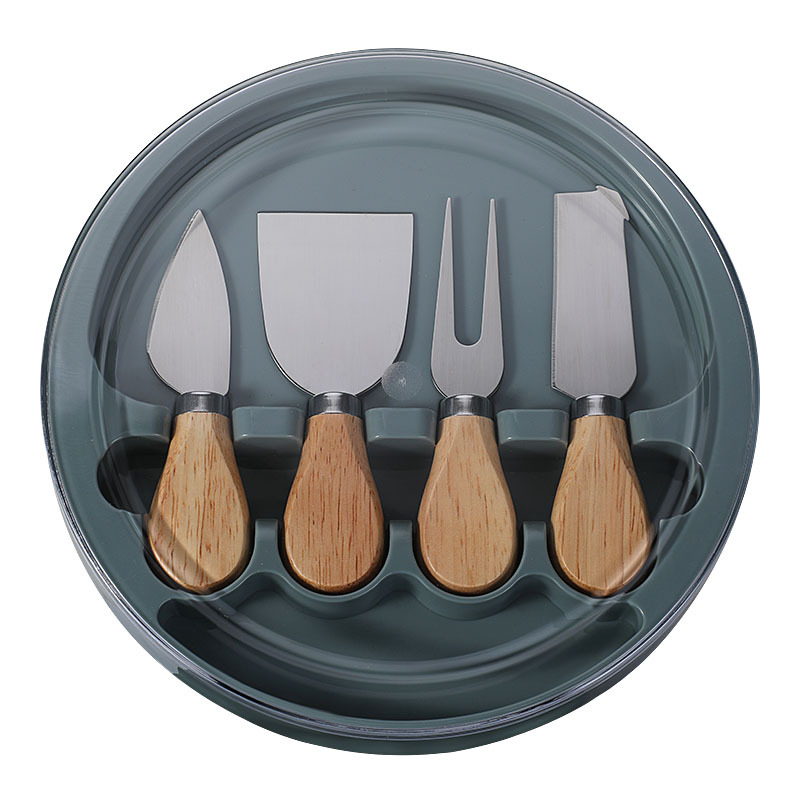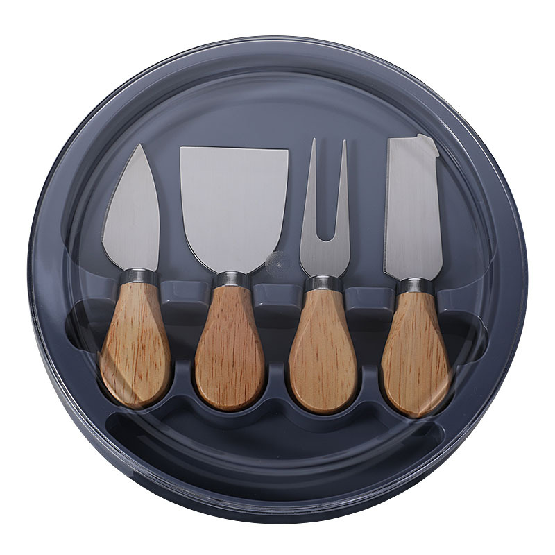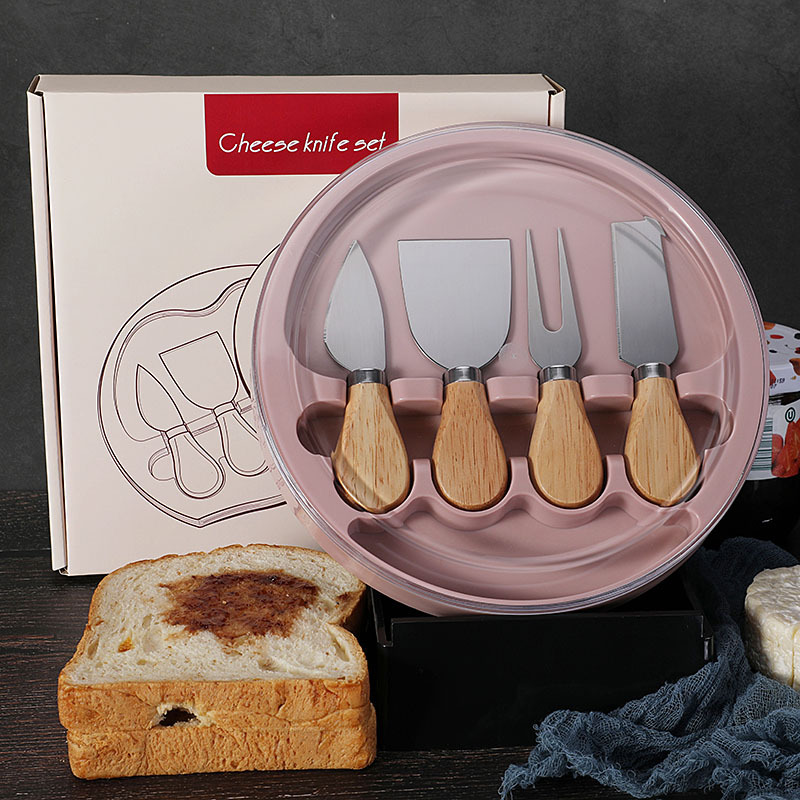 新款盒装4件套奶油奶酪刀叉套装不锈钢芝士工具橡木柄芝士刀配