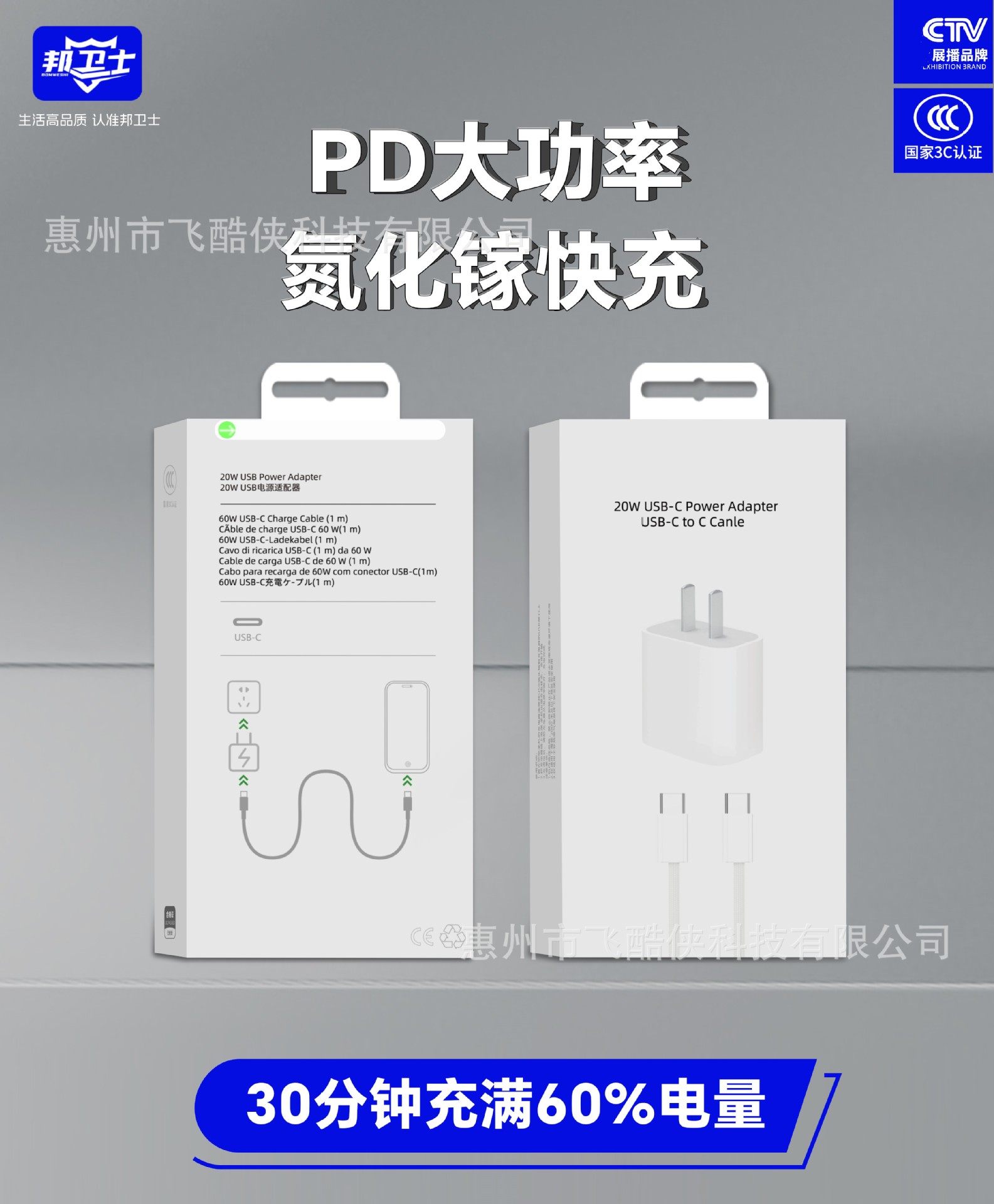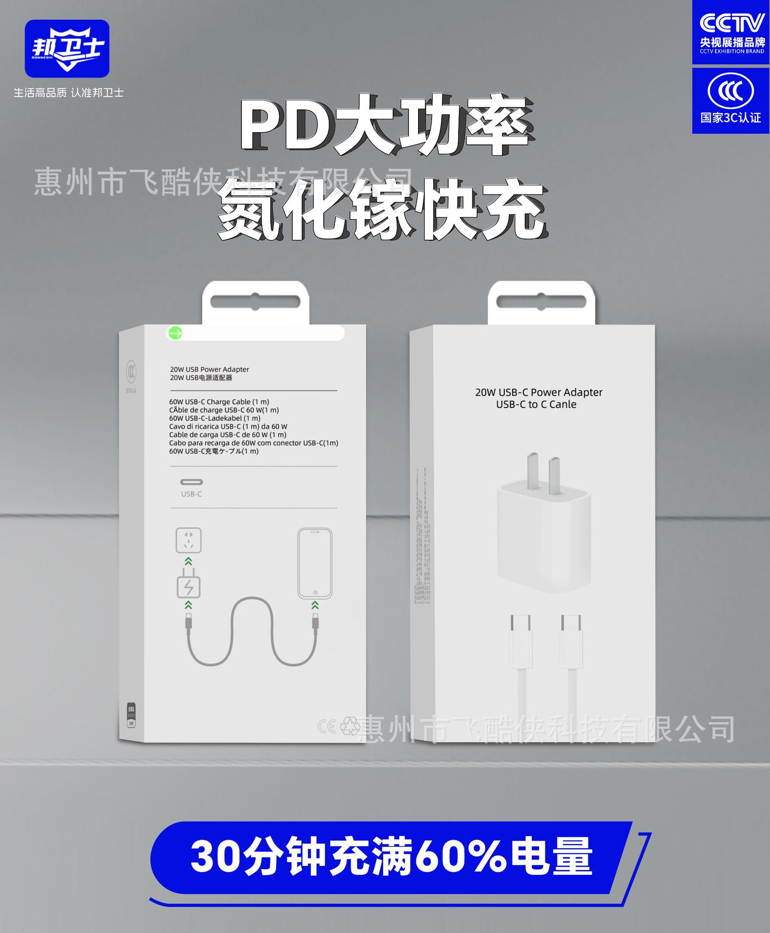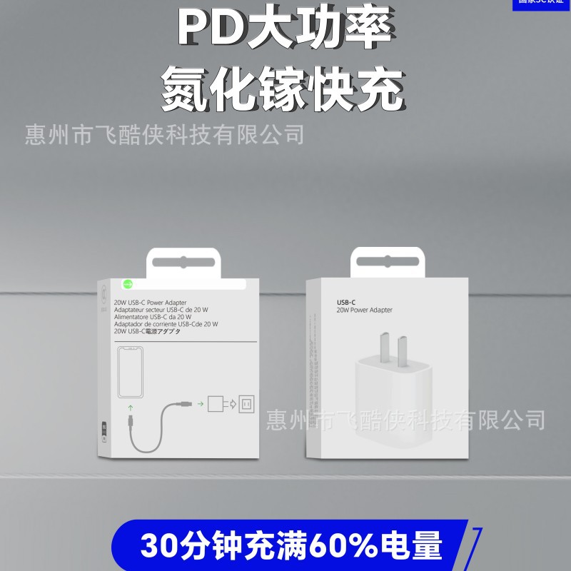 品牌原装PD20W快充闪充电头套装数据线 适用于苹果手机充电器批发