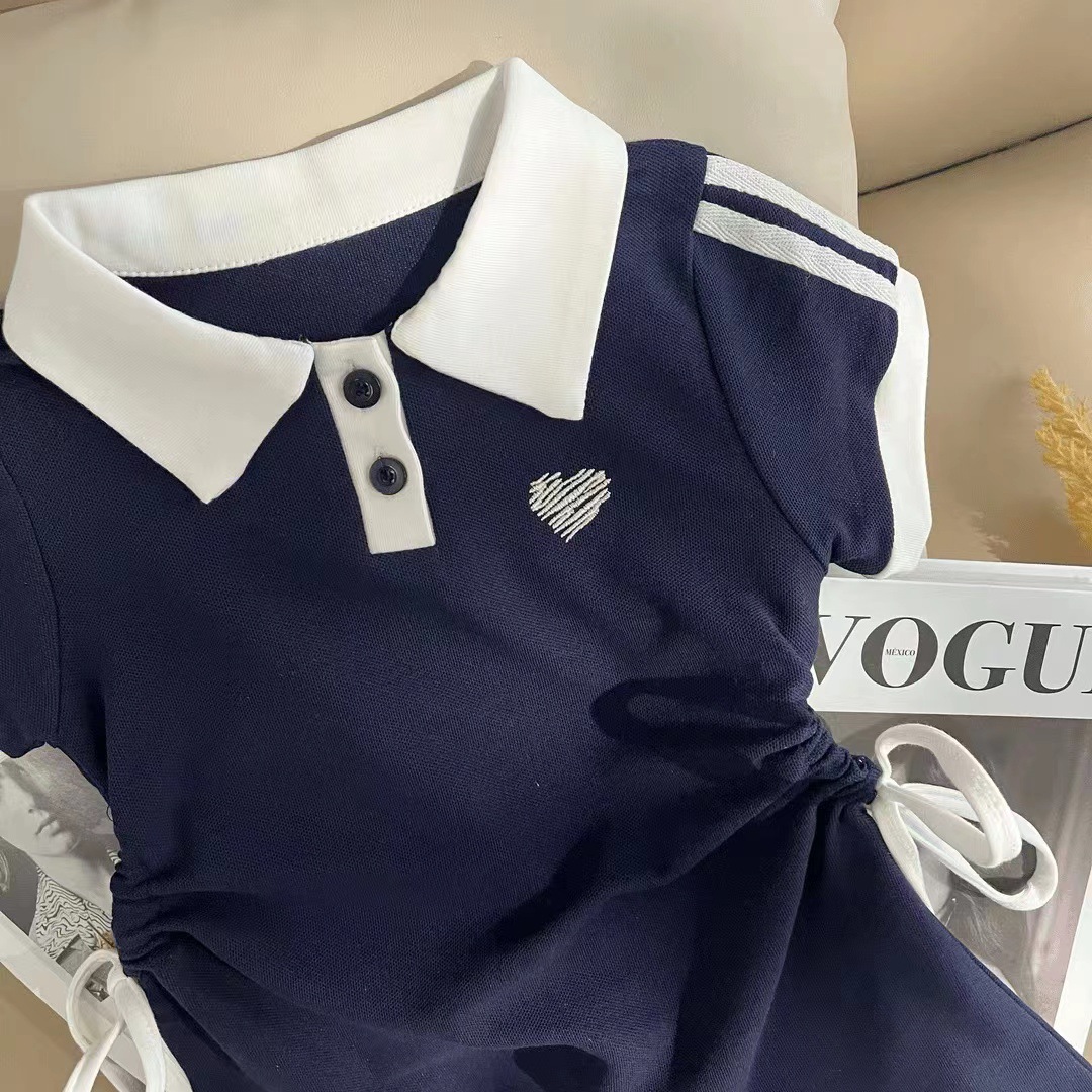 女童学院风抽绳POLO领短袖连衣裙2024夏季新品女小童洋气休闲裙子