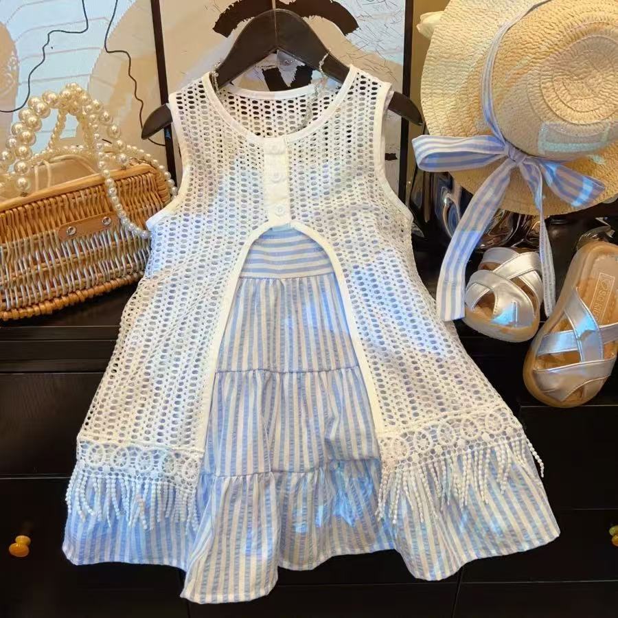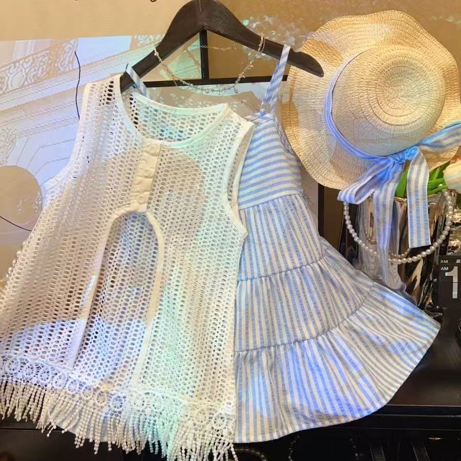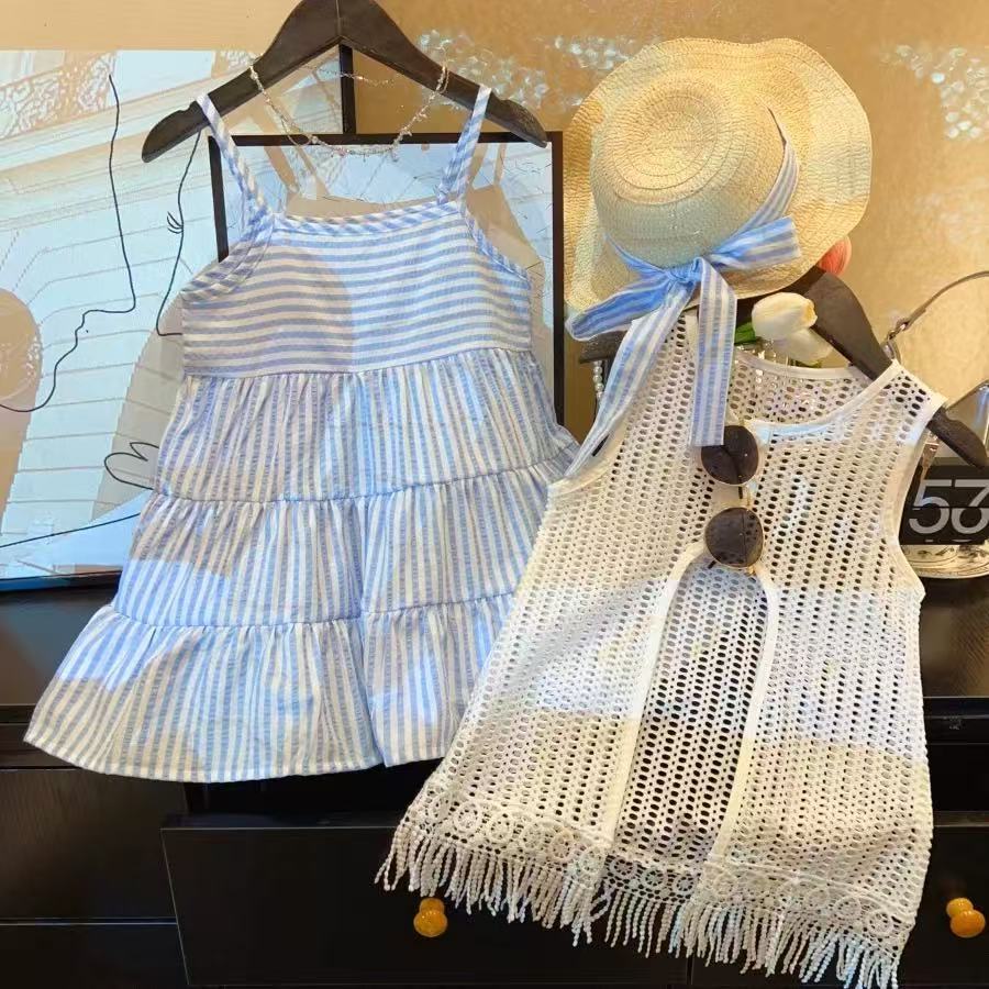 女童两件套连衣裙镂空公主荷叶裙吊带夏季女碎花女童宝A字裙50087
