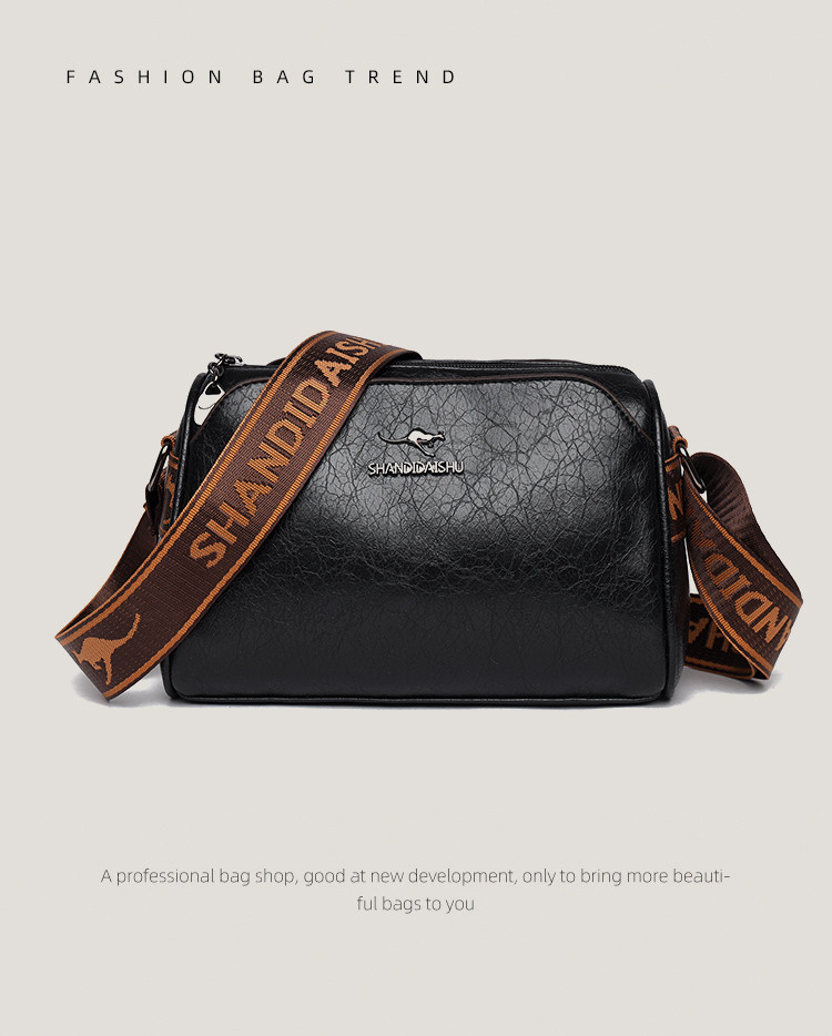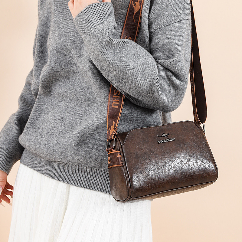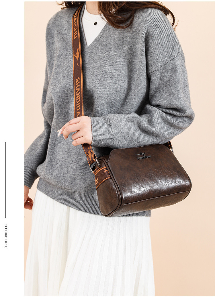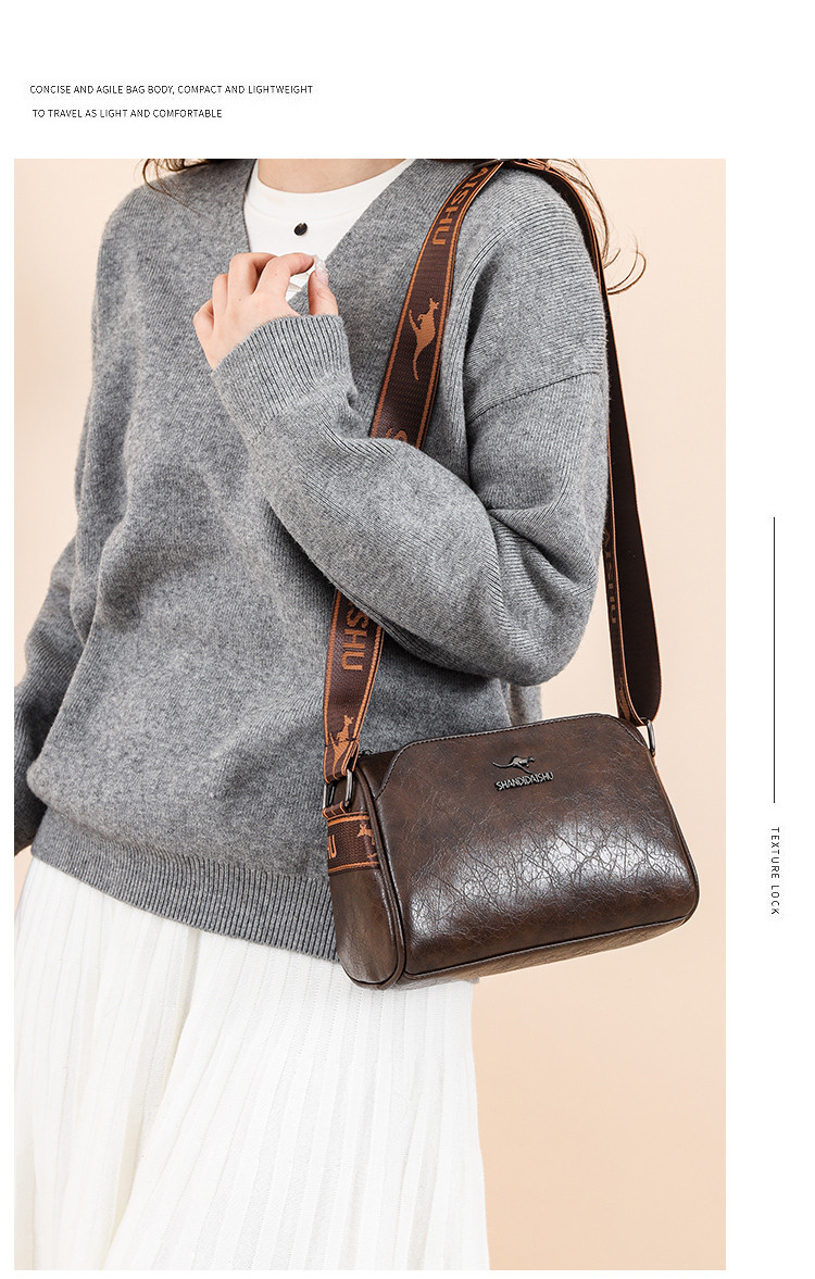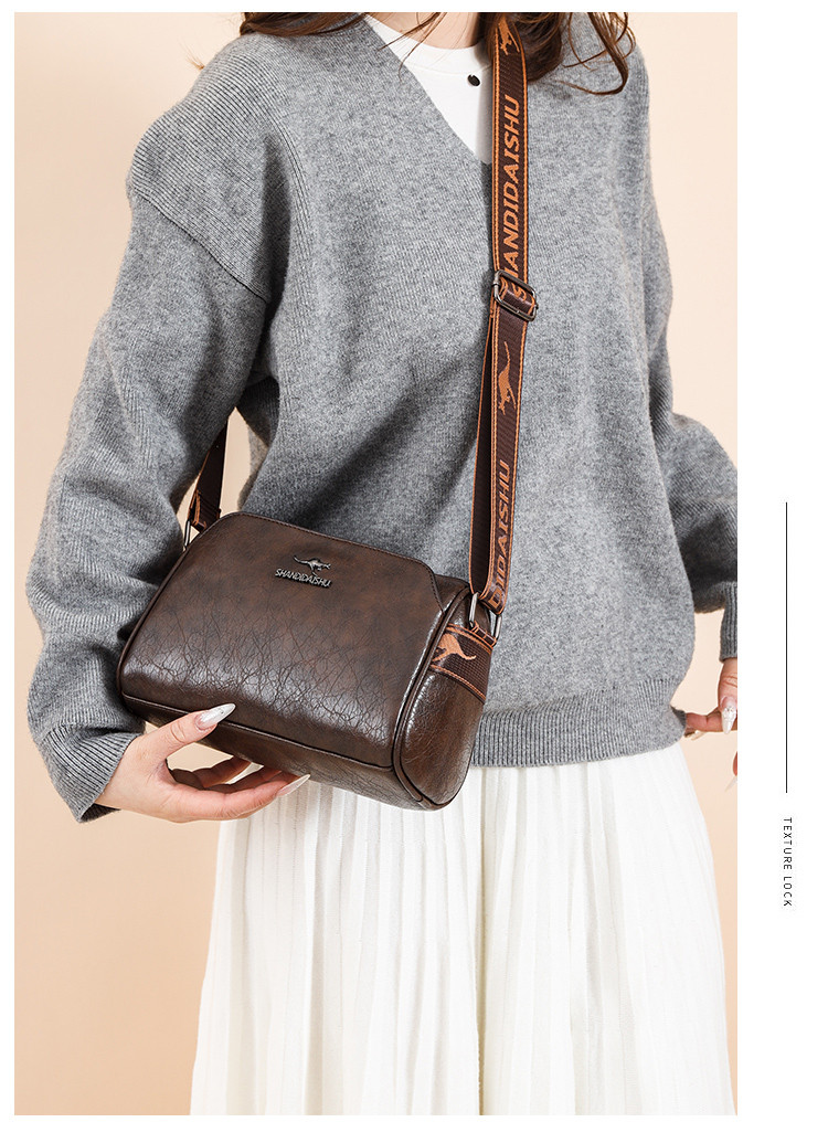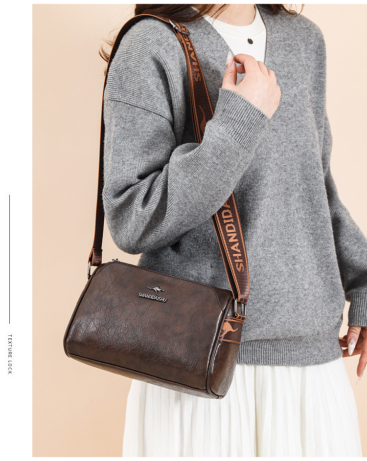 复古裂纹枕头包多层大容量斜挎包女士包2025新款高级宽肩带单肩包