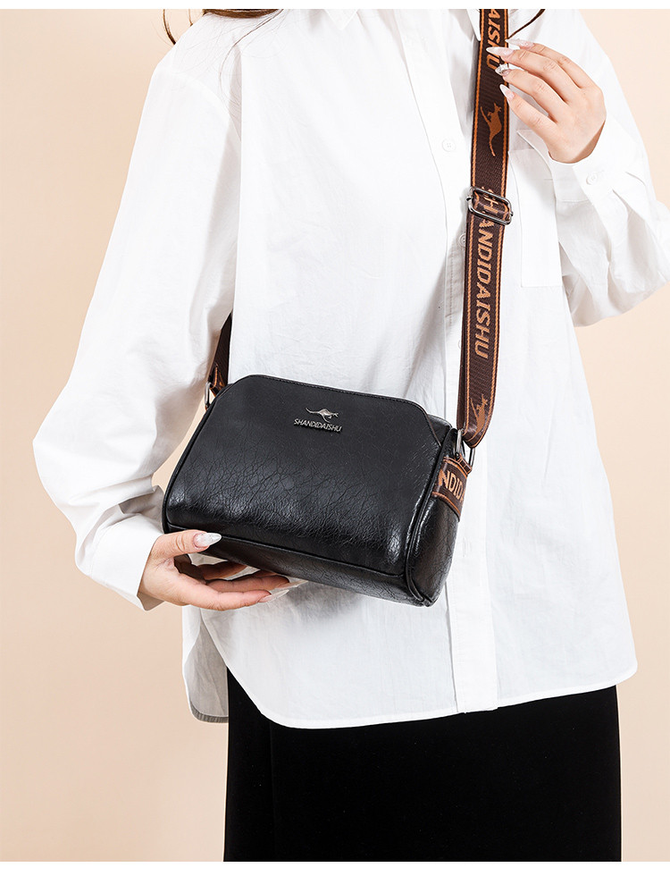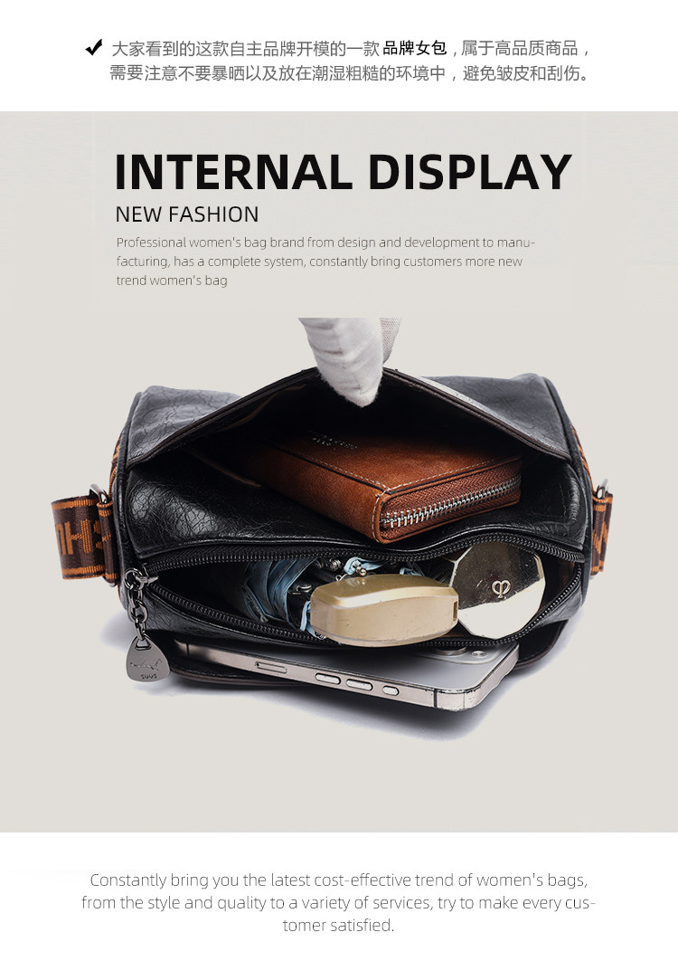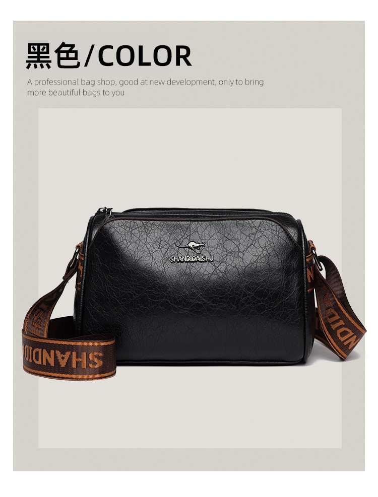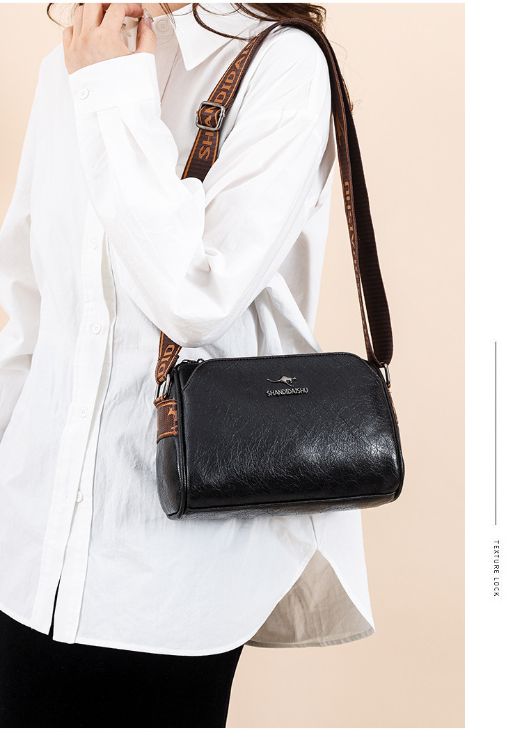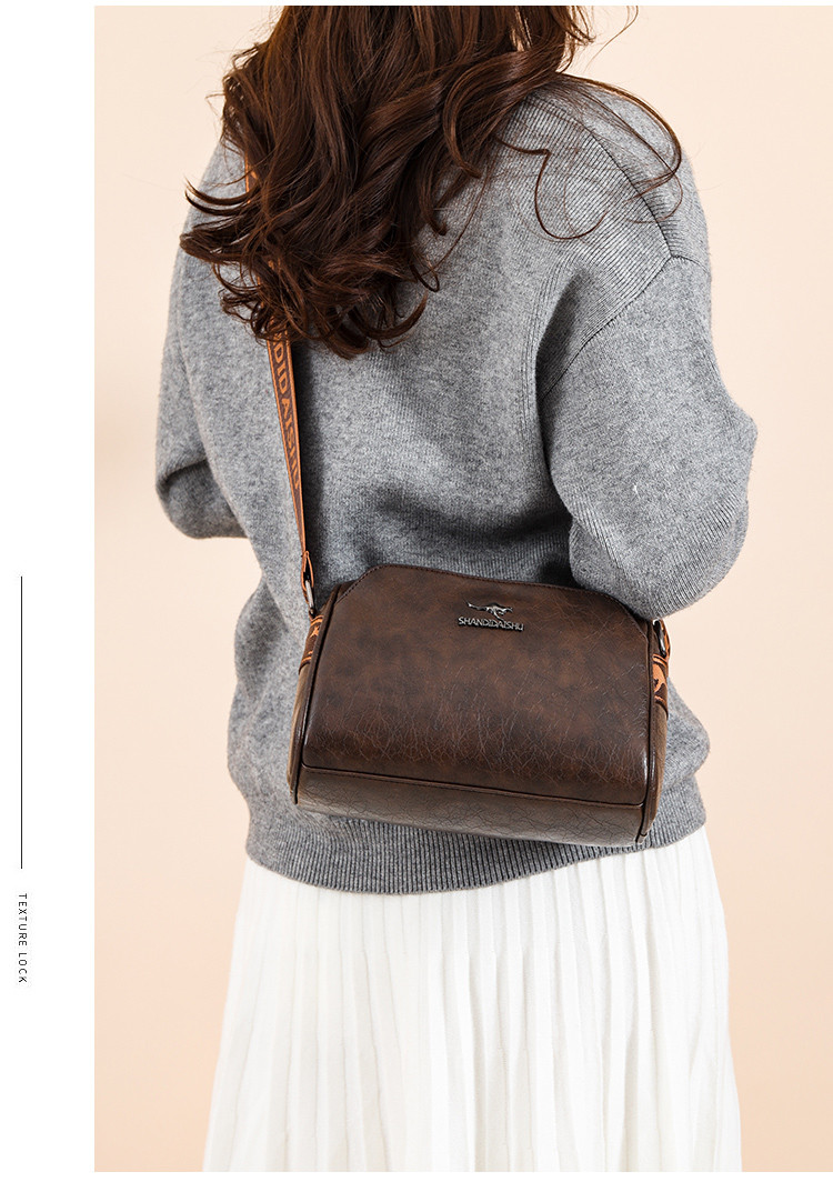 复古裂纹枕头包多层大容量斜挎包女士包2025新款高级宽肩带单肩包