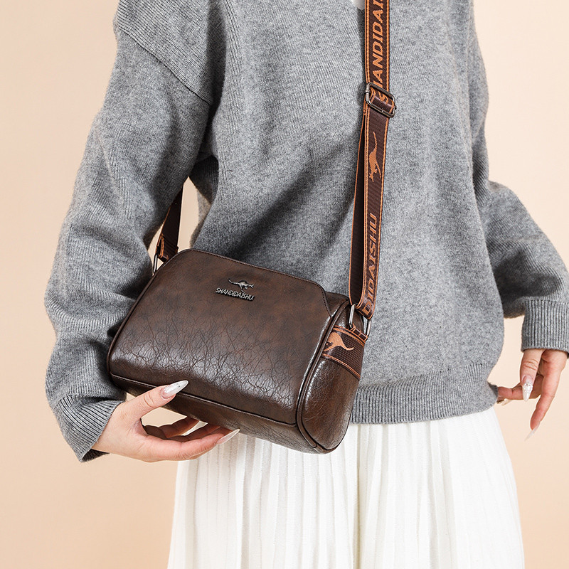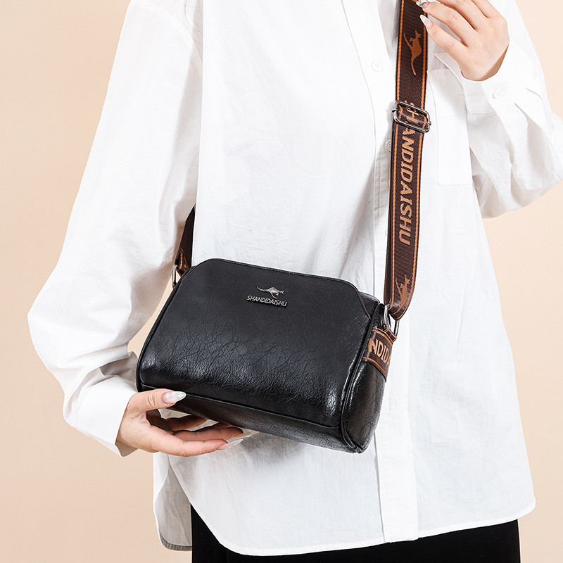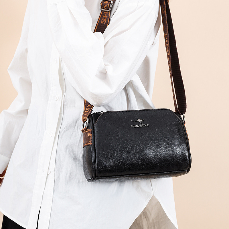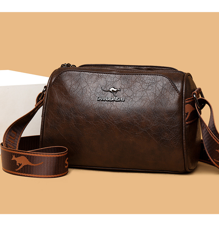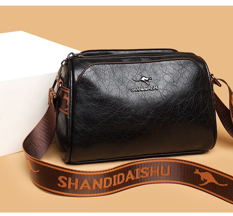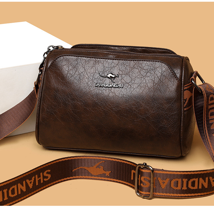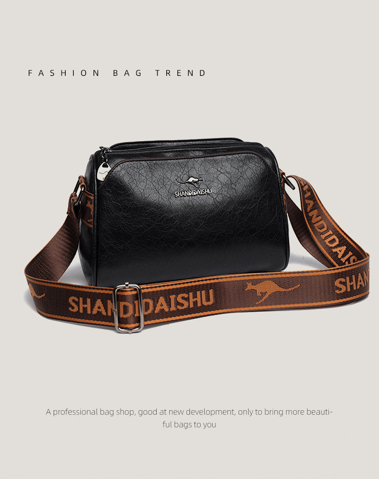 复古裂纹枕头包多层大容量斜挎包女士包2025新款高级宽肩带单肩包