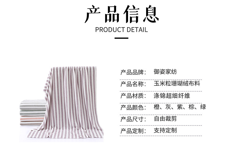 双面涤锦珊瑚绒布料加厚吸水干发帽浴裙浴巾提花玉米粒绒布面料