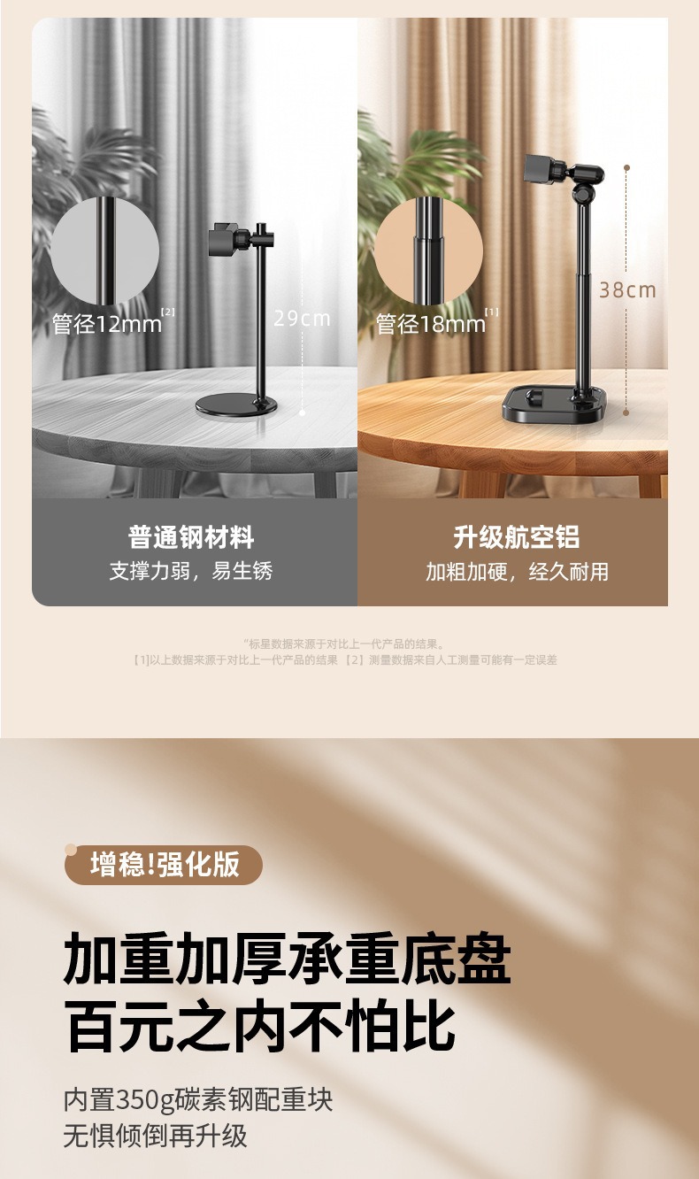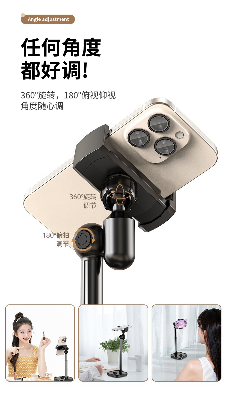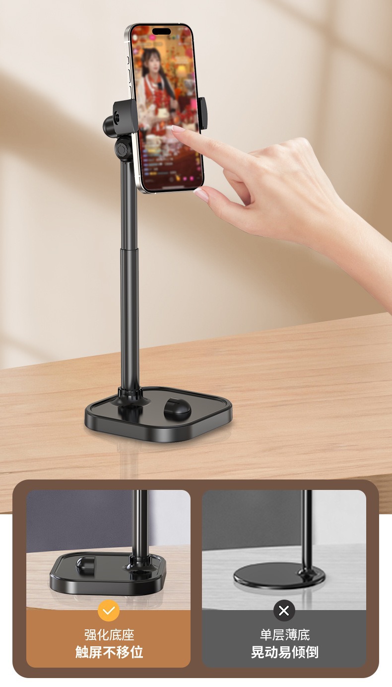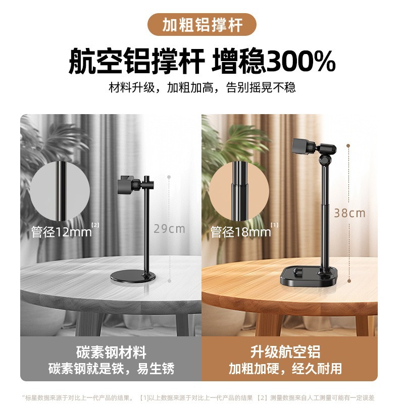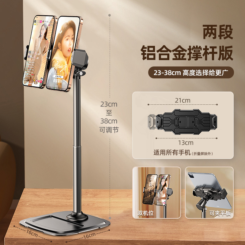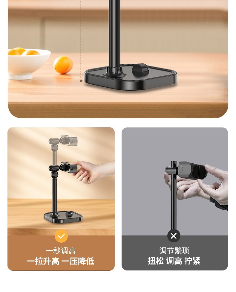 俯拍直播手机支架 桌面办公会议拍照摄像升降铝合金支架大底座