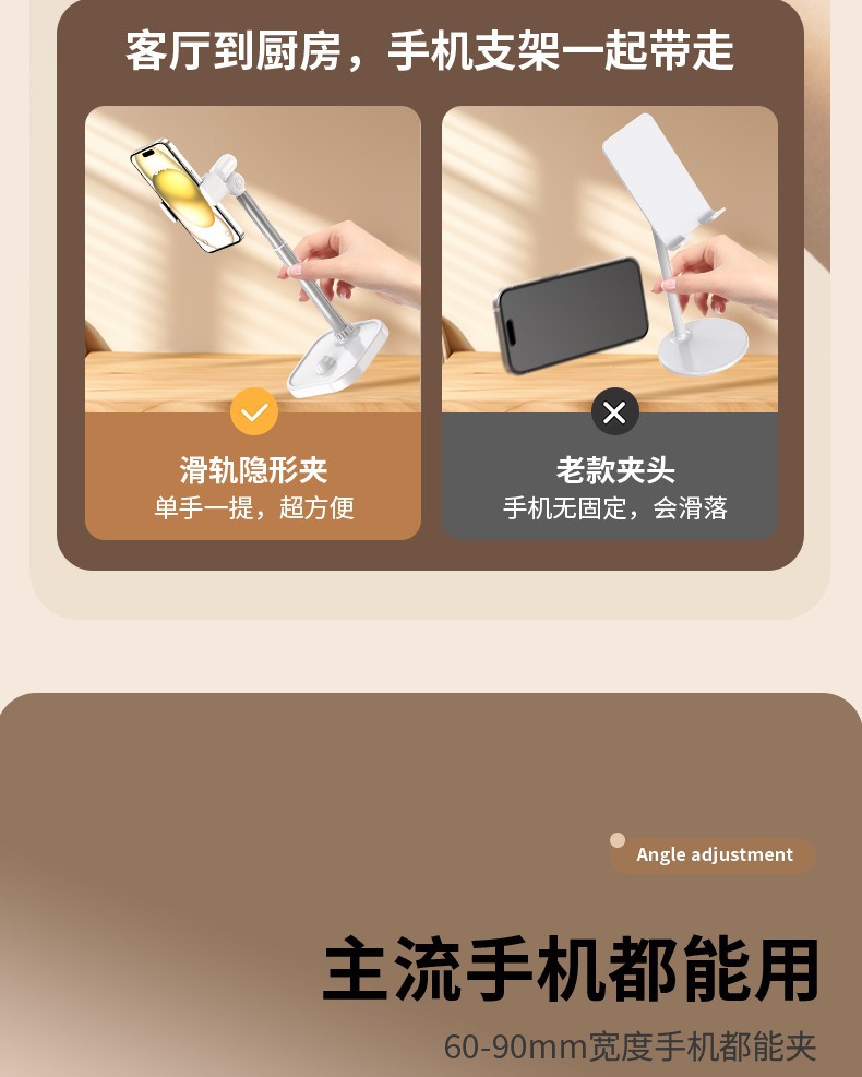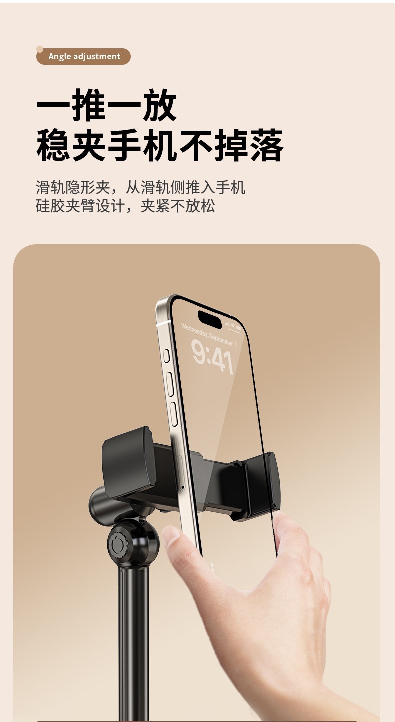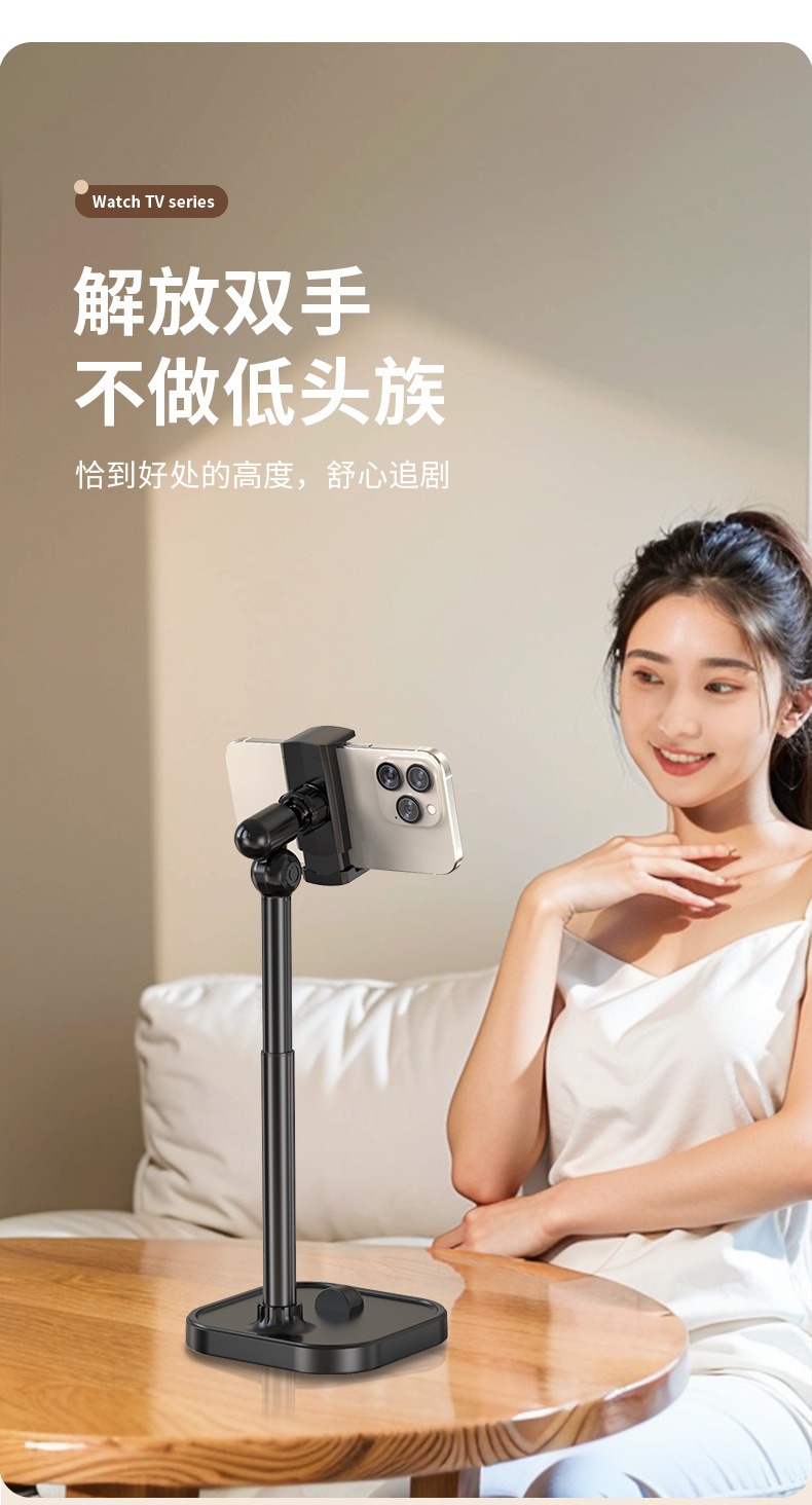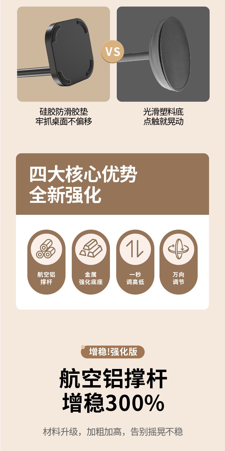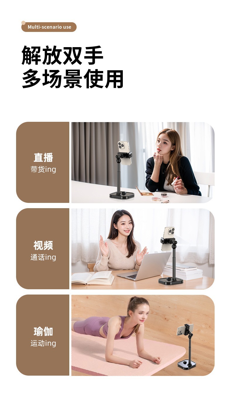俯拍直播手机支架 桌面办公会议拍照摄像升降铝合金支架大底座