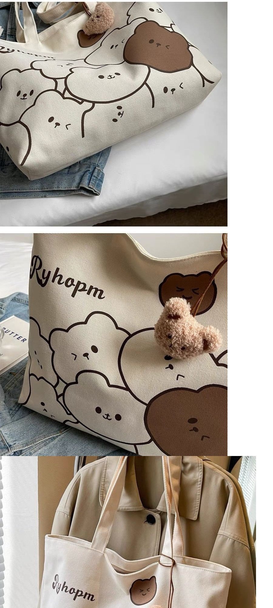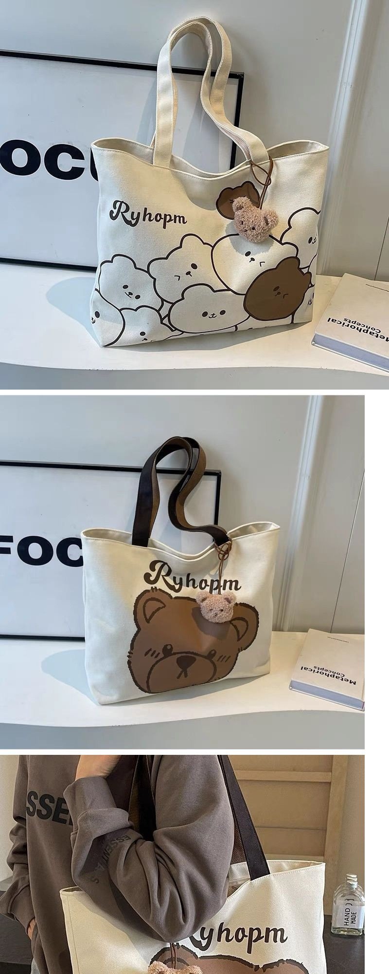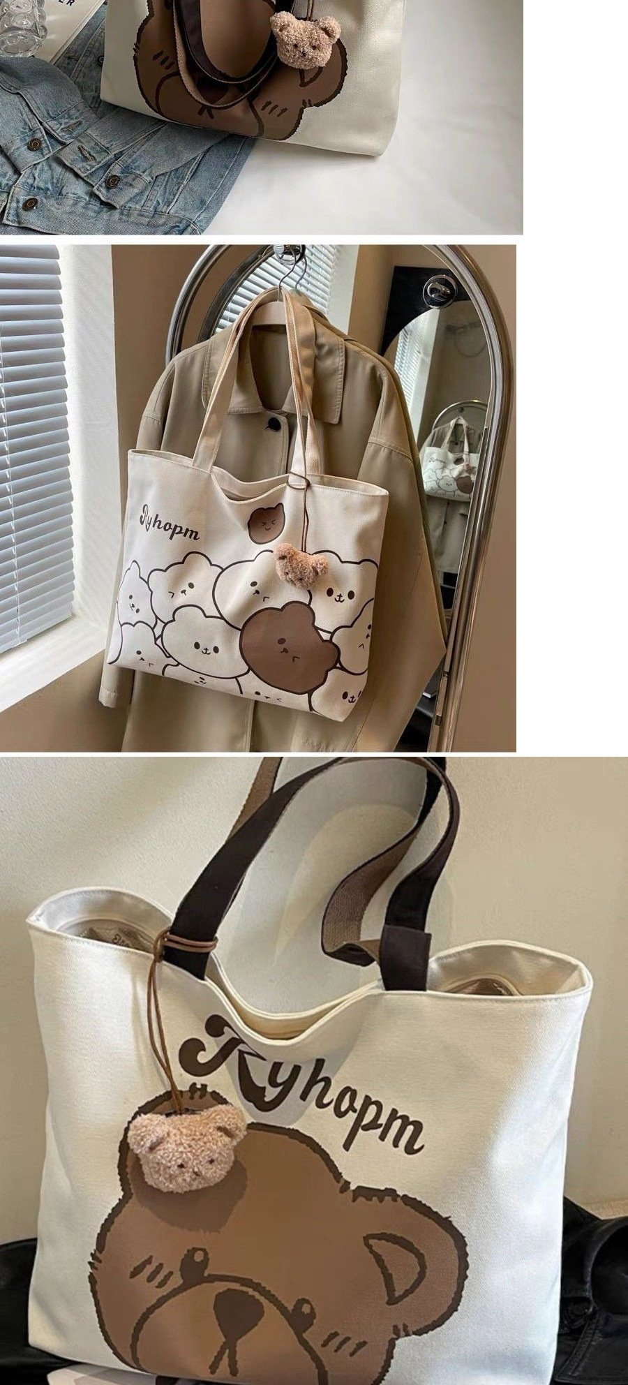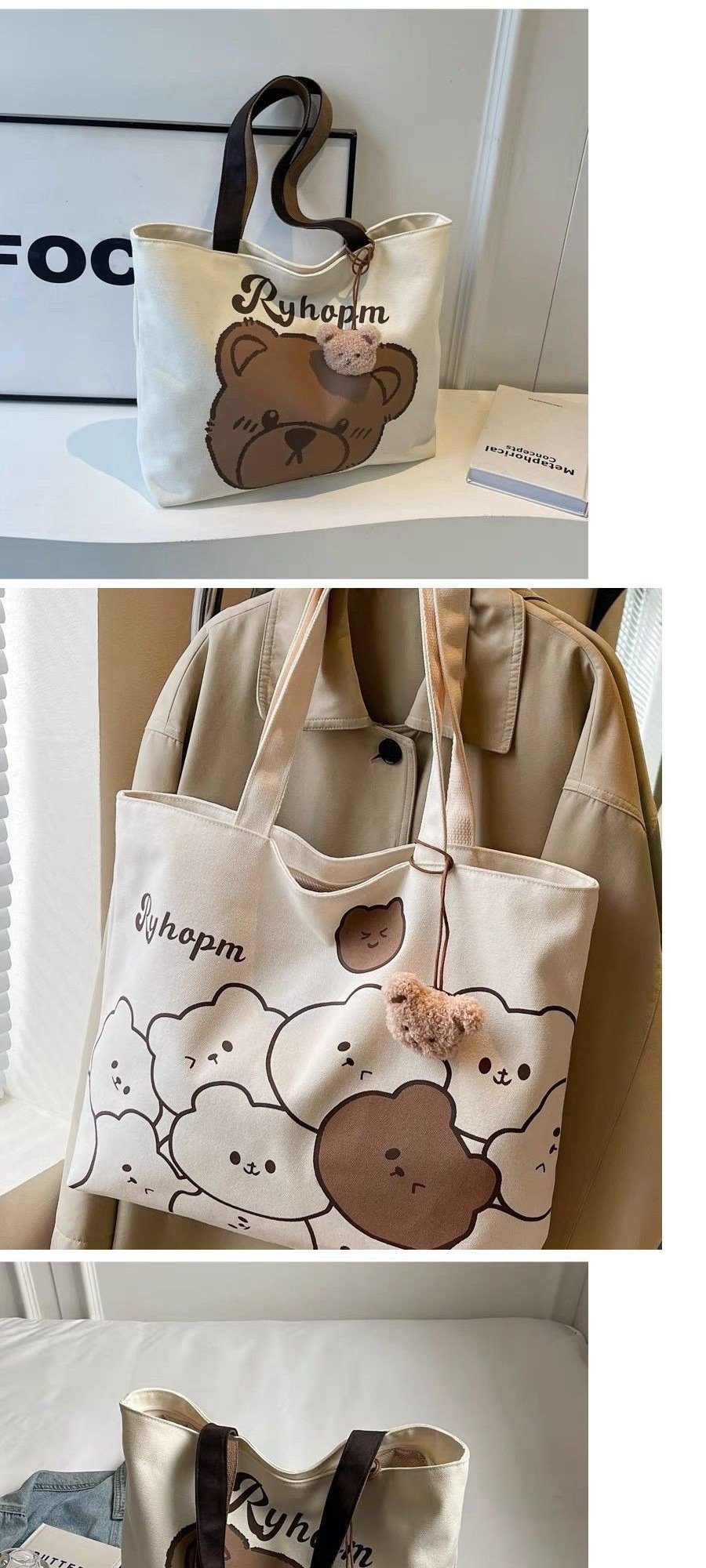 通勤日系卡通单肩大容量无内衬布袋托特百搭学生上课帆布手提袋