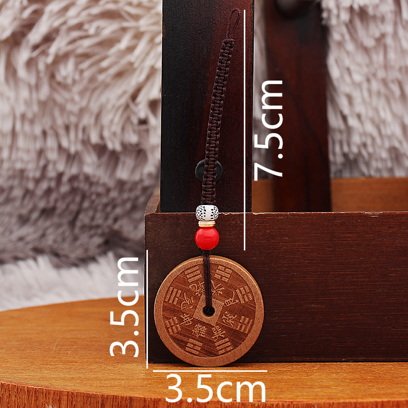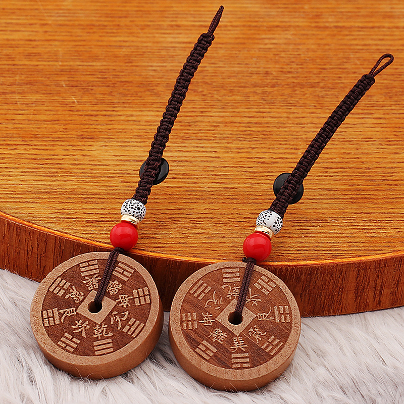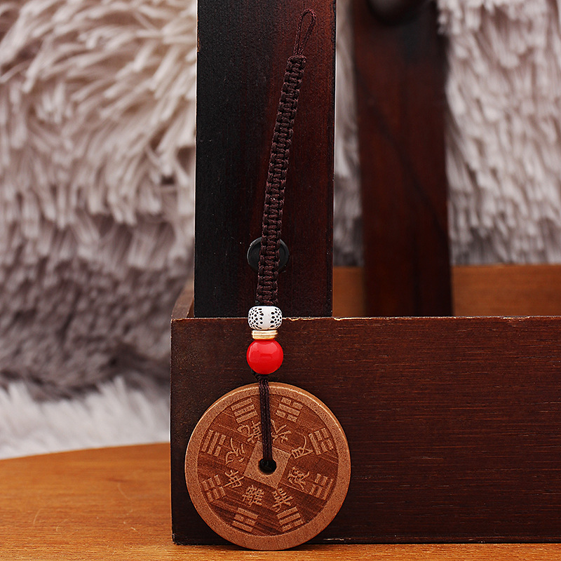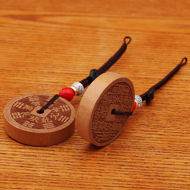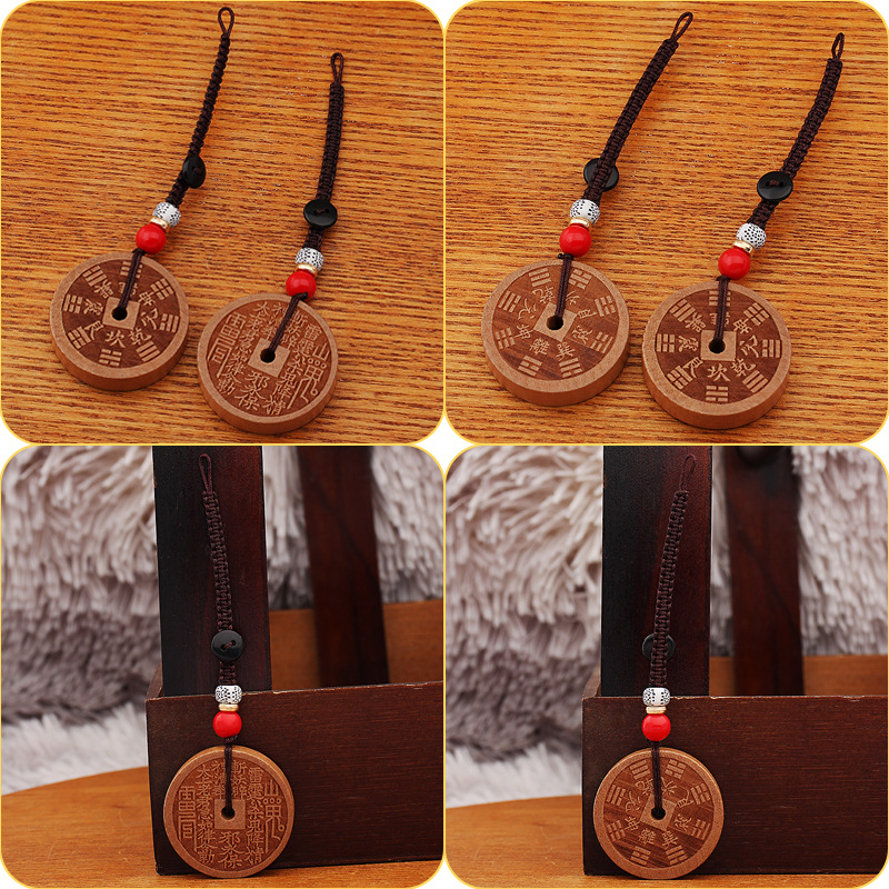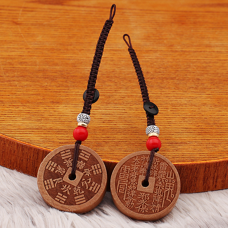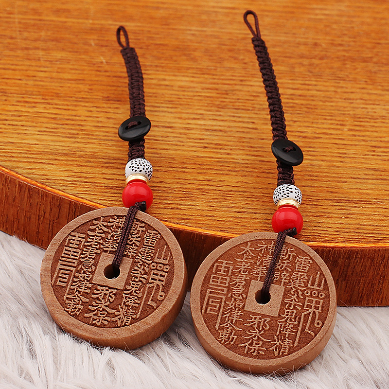 桃木山鬼花钱钥匙扣男女手机挂件仿古铜钱平安扣工艺礼品厂家批发