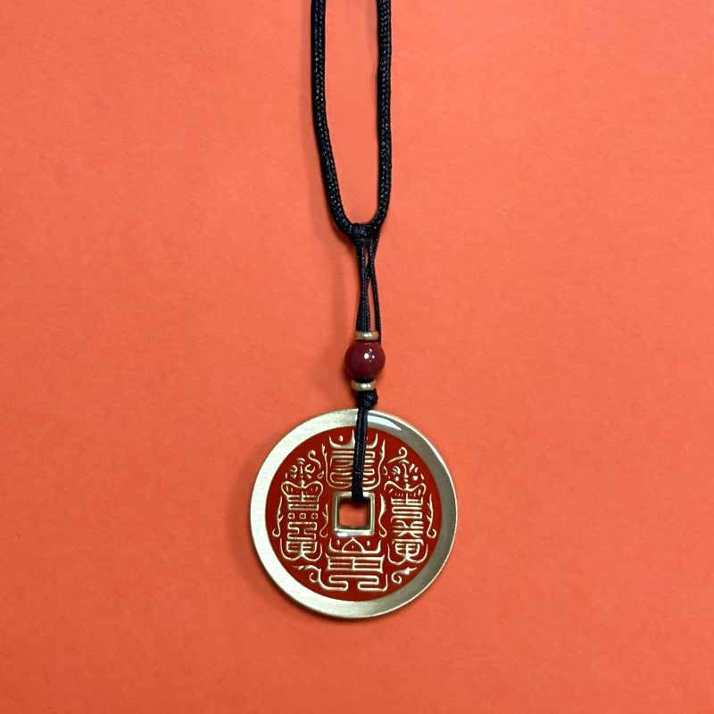 封胶真朱砂山鬼花钱黄铜吊坠八卦饰品男女室内外平安佩戴摆件