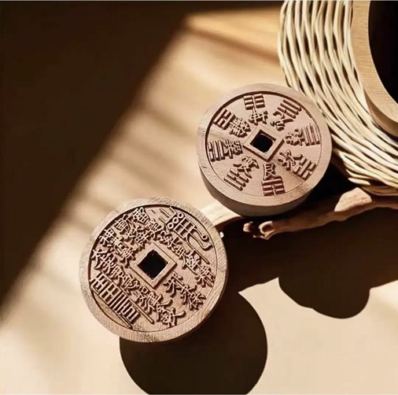 桃木山鬼花钱吊坠挂件项坠新中式男女通用款式