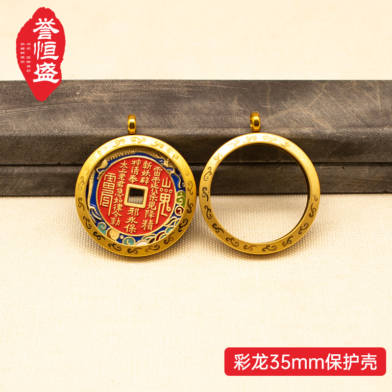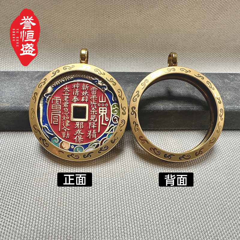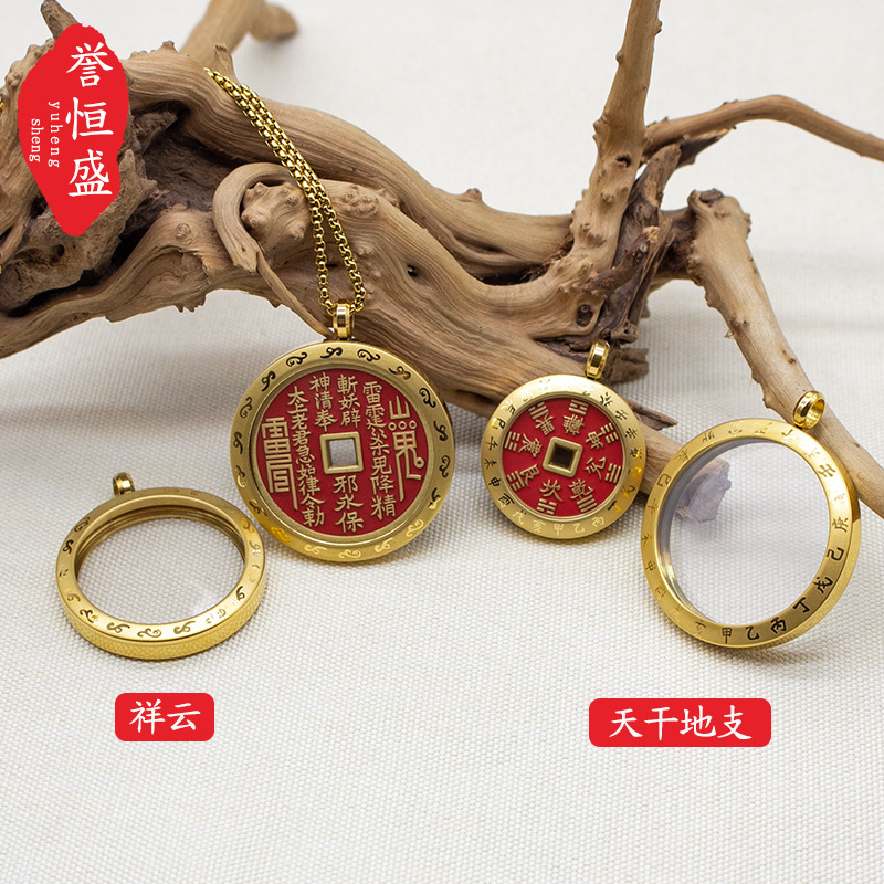 厂家直销山鬼花钱保护壳吊坠钛钢平安乾坤太极钛金吉祥嘎乌盒
