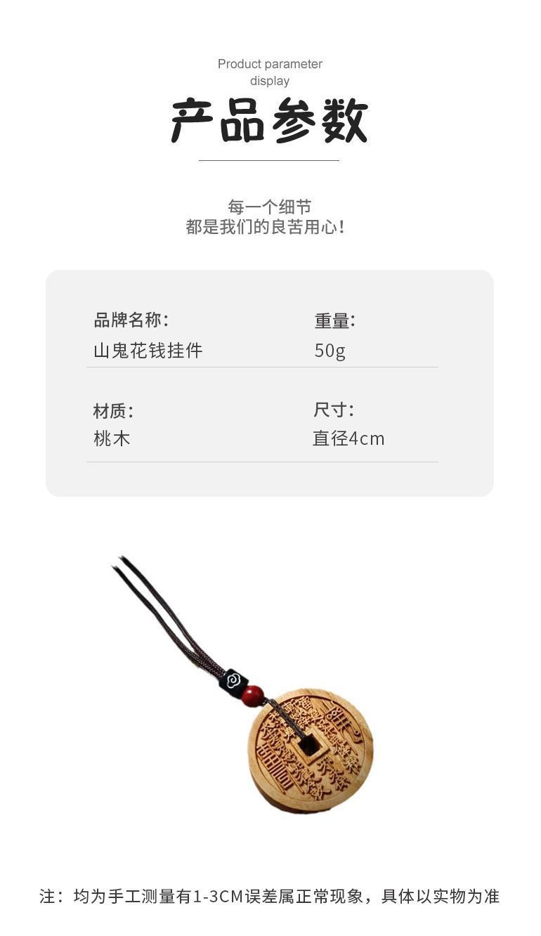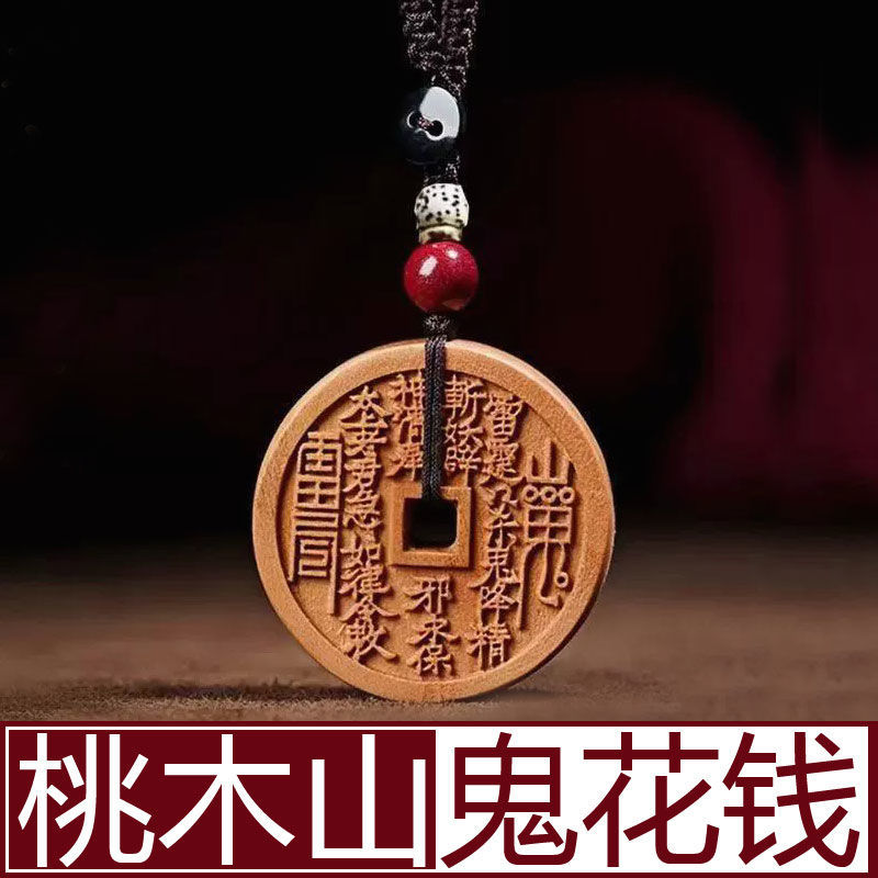 2025年蛇年精雕桃木山鬼花钱钥匙扣吊坠男女个性创意随身平安挂件