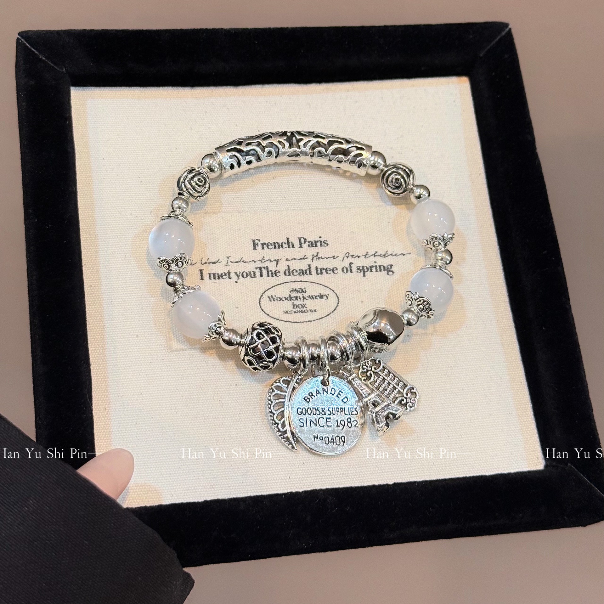 新中式民族风苗疆手链时尚手工串珠山鬼无极花钱国风算盘弹力手串