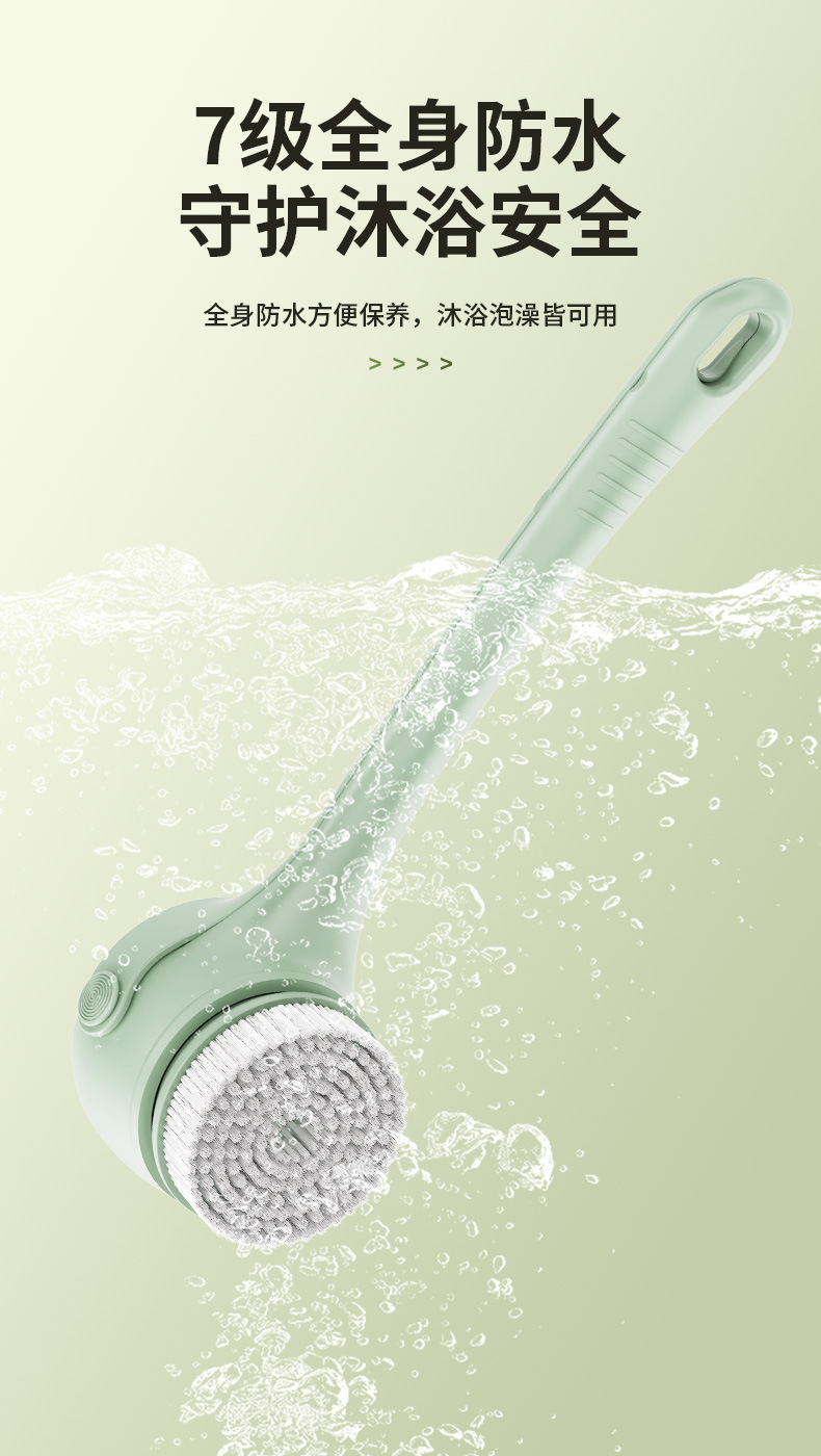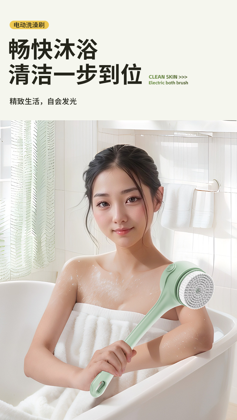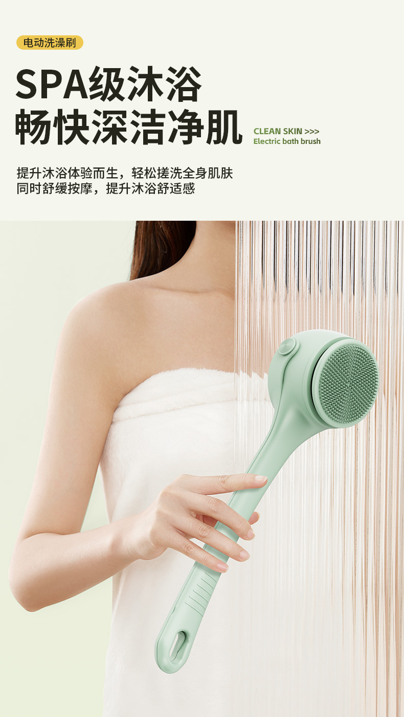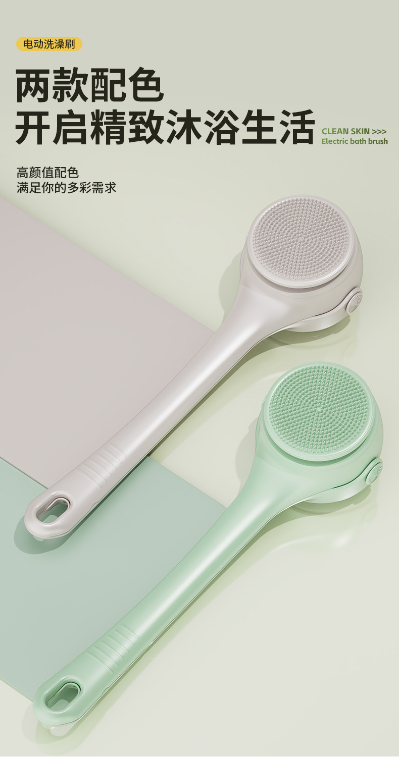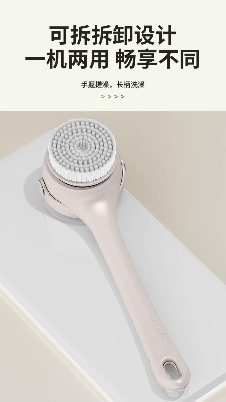 电动洗澡刷双柄款多功能替换头搓澡神器充电款长柄搓背电动沐浴刷