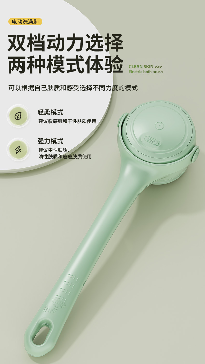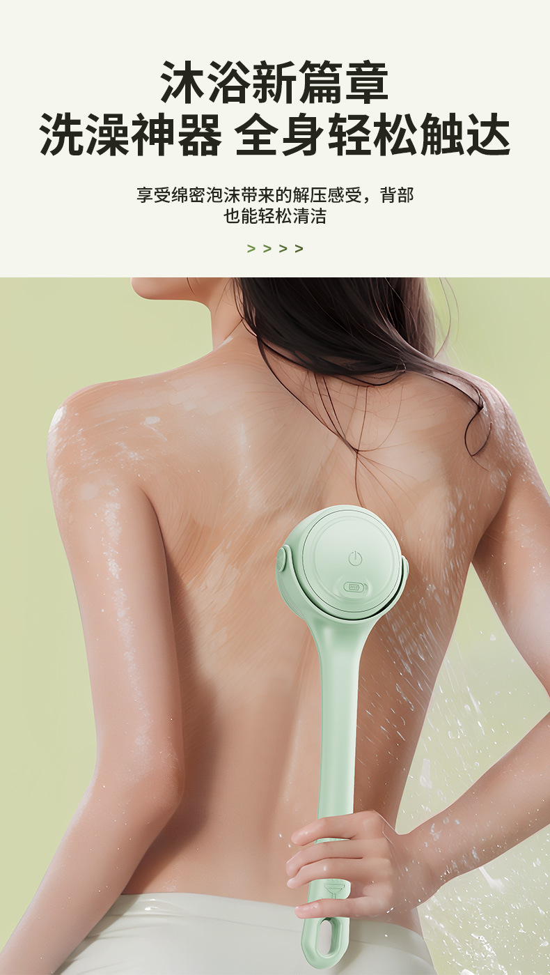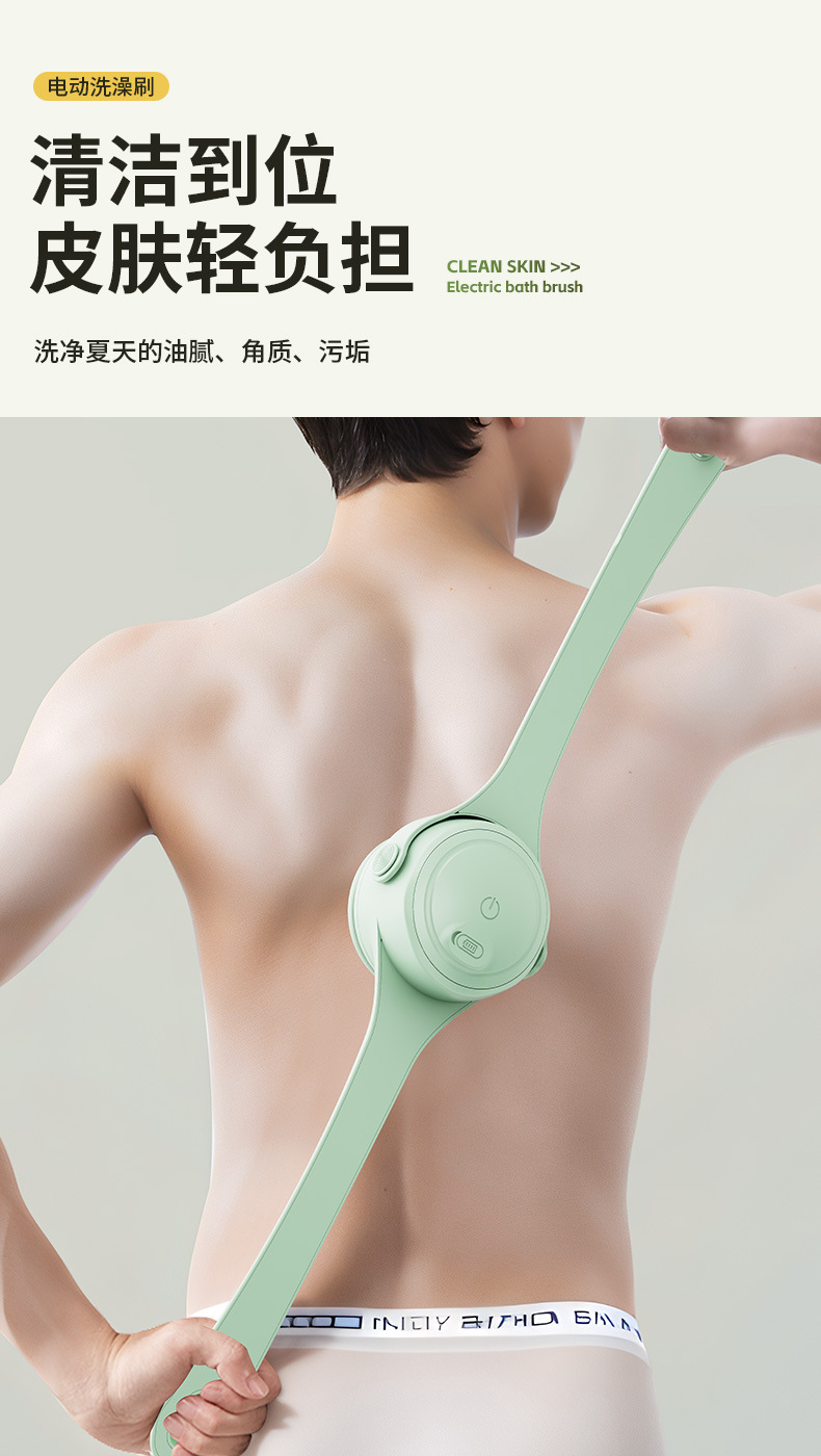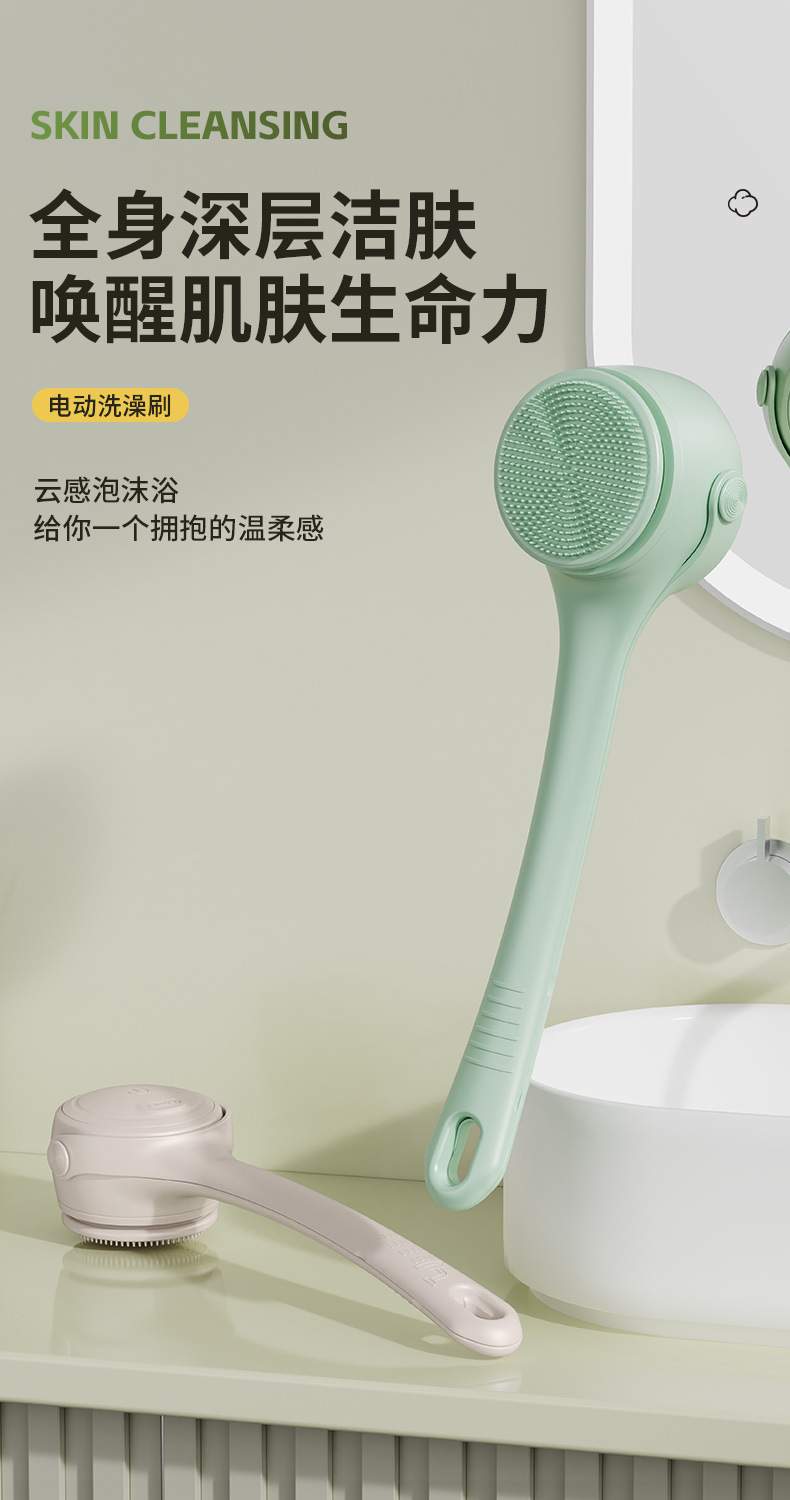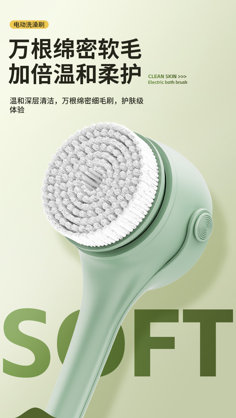 电动洗澡刷双柄款多功能替换头搓澡神器充电款长柄搓背电动沐浴刷