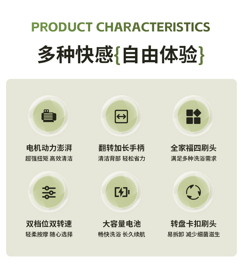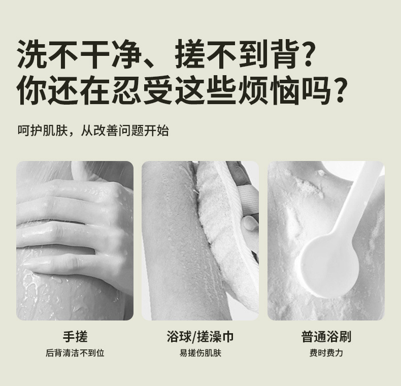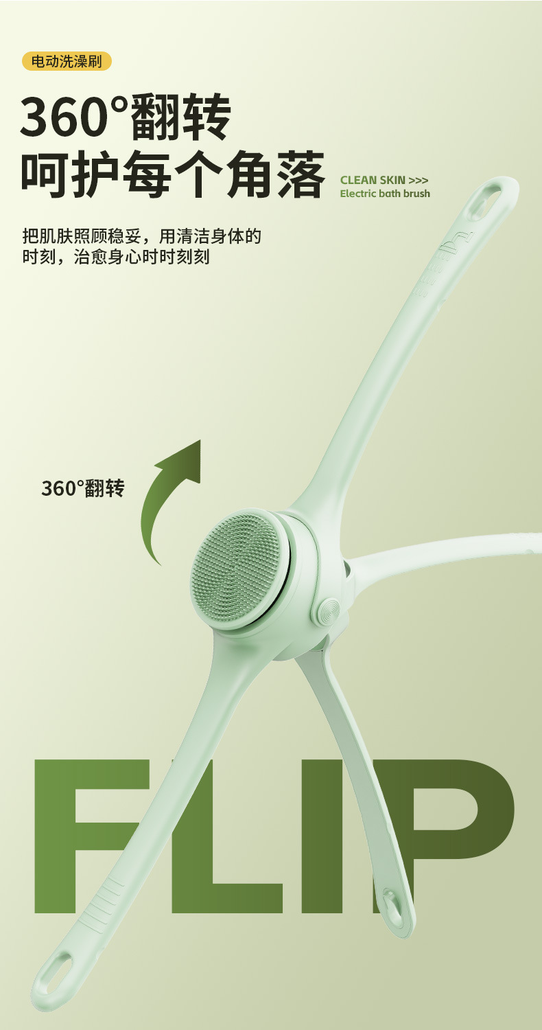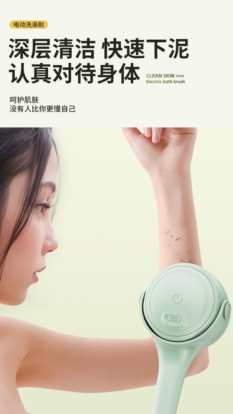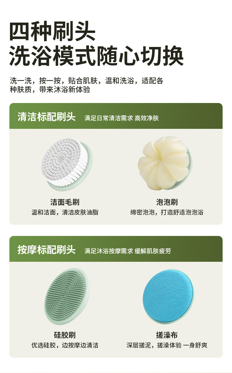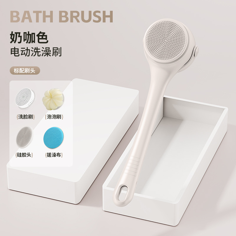 电动洗澡刷双柄款多功能替换头搓澡神器充电款长柄搓背电动沐浴刷