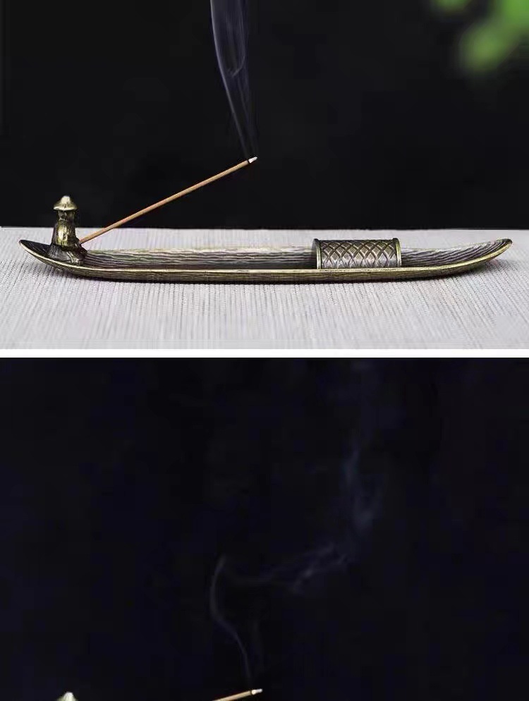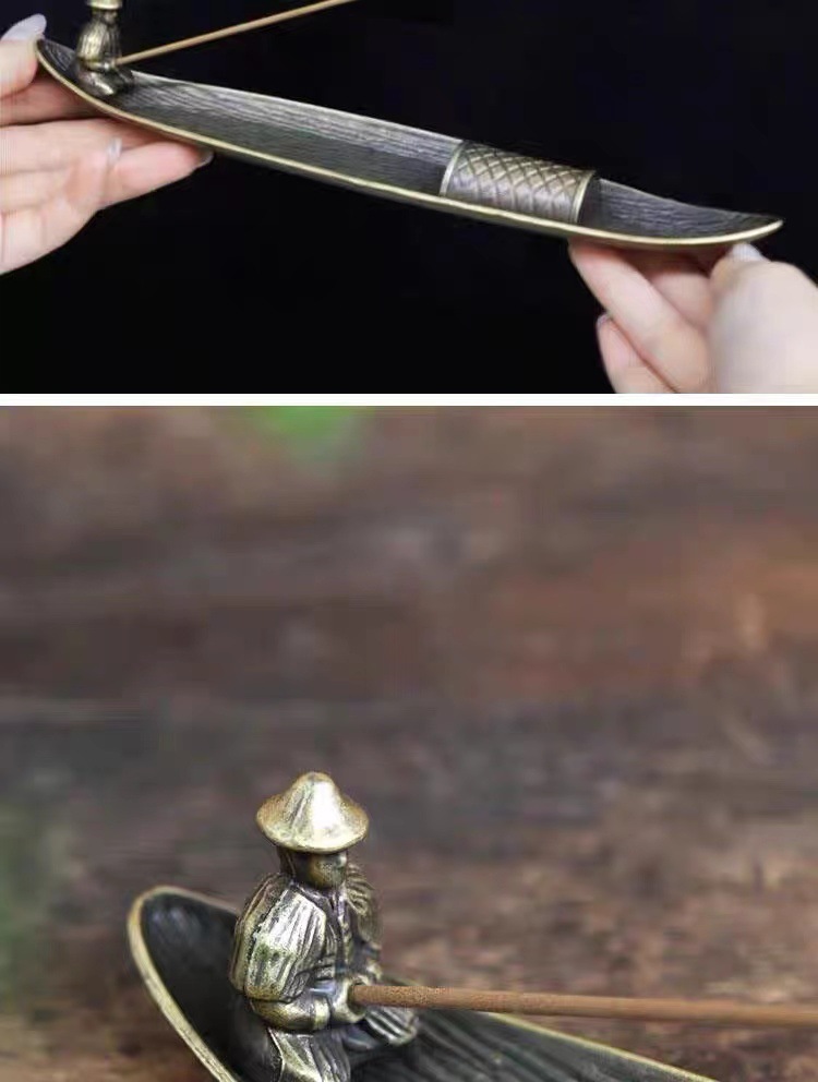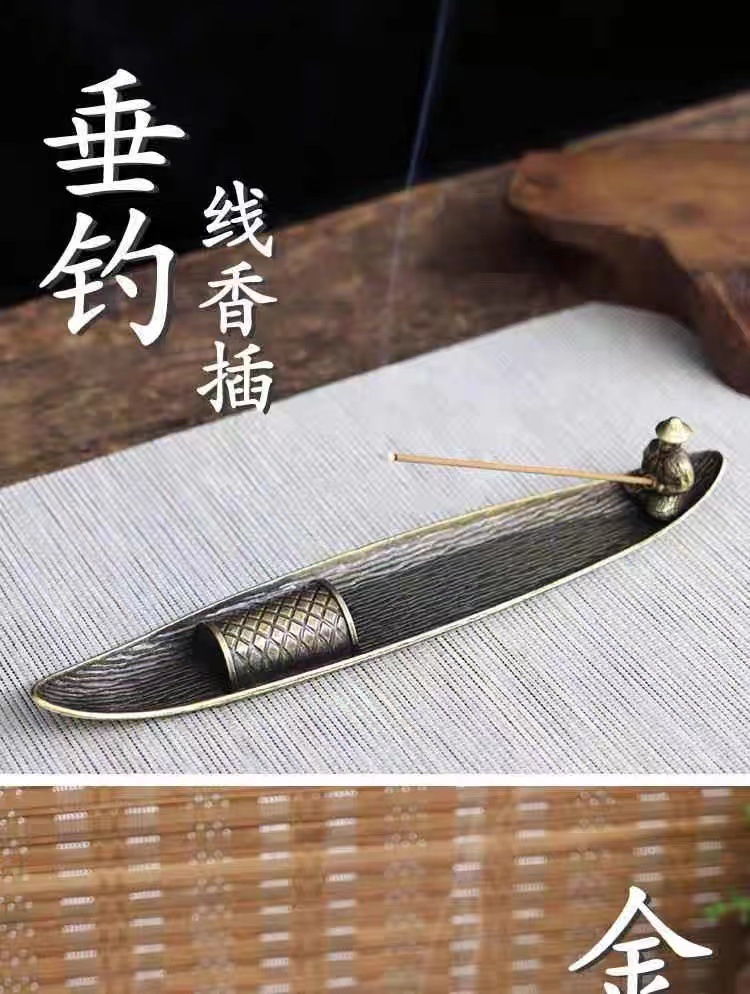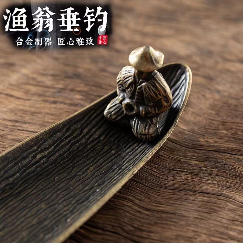 寒江孤影渔翁香插竹排线香插香座仿古插香线香器合金创意禅意摆件