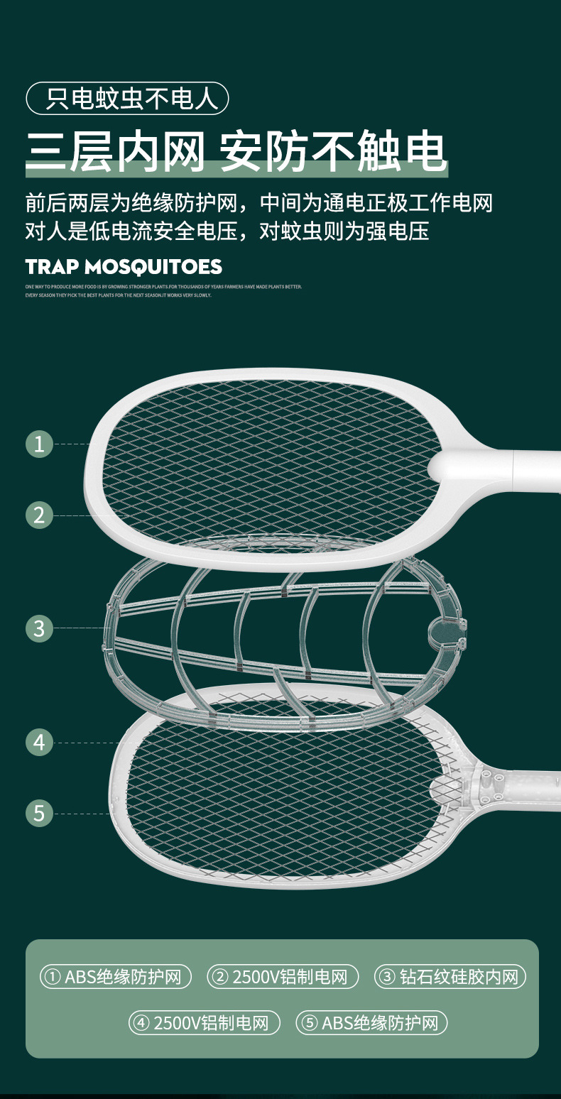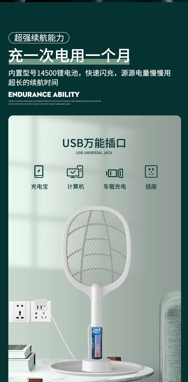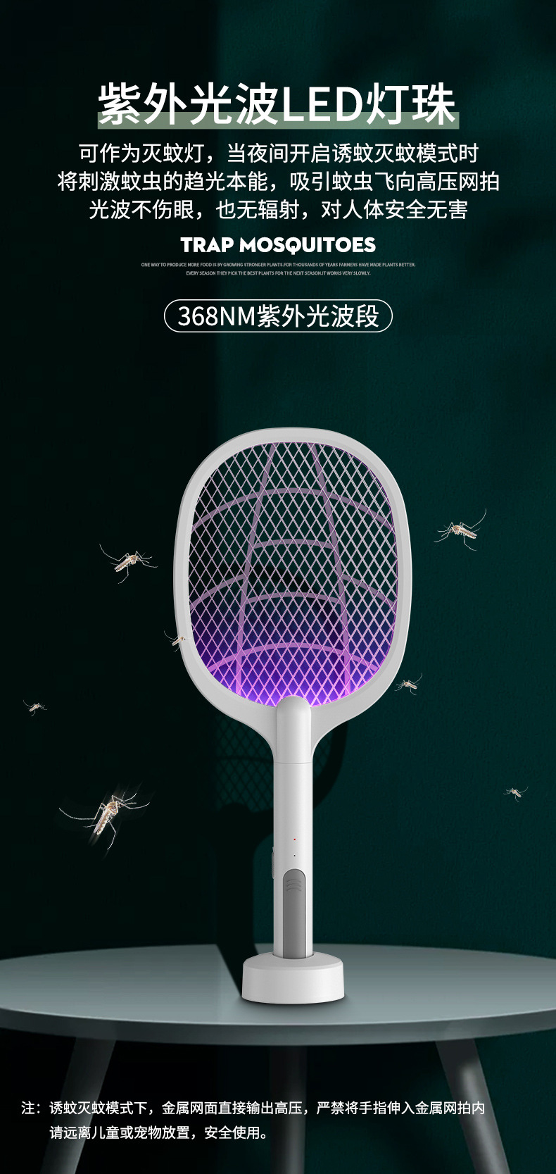电蚊拍灭蚊灯二合一家用灭蚊拍充电式自动诱蚊强力电击苍蝇拍批发
