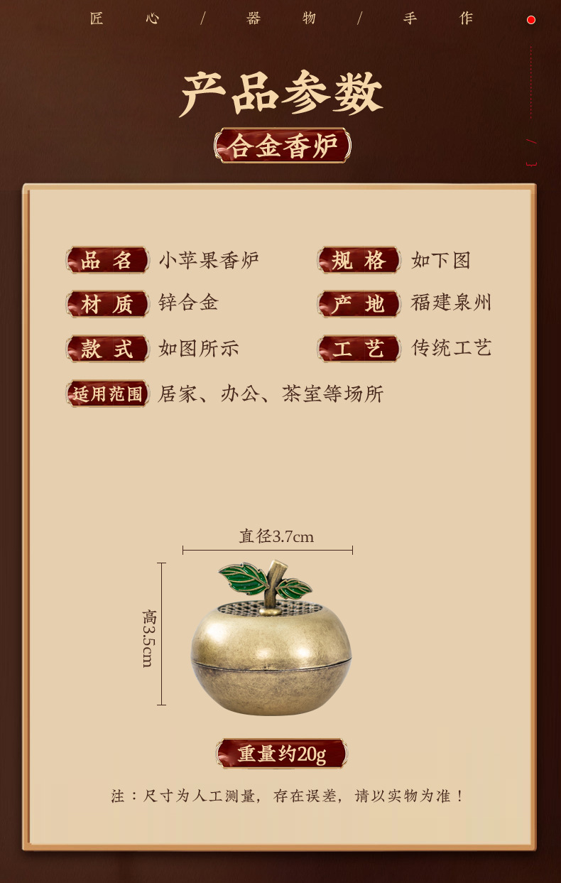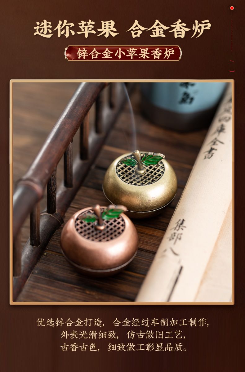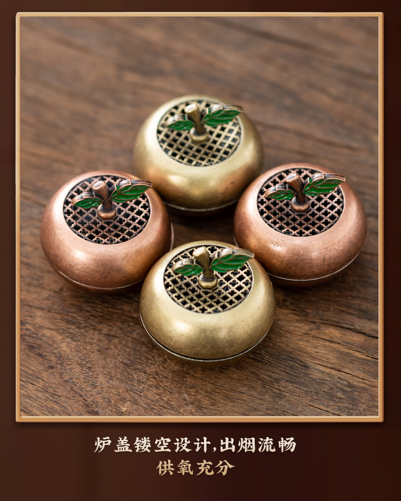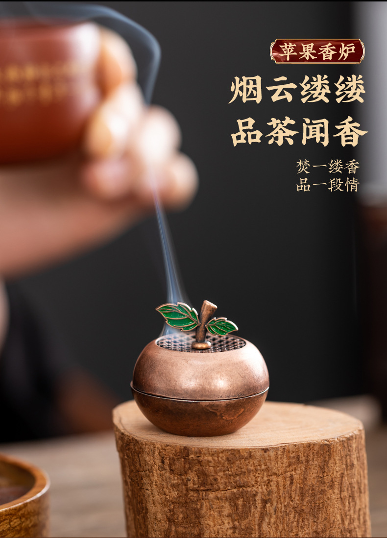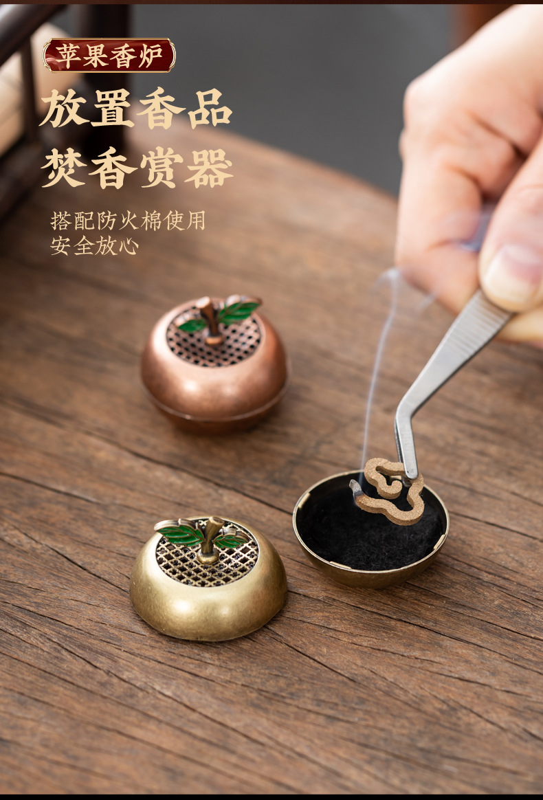 新中式苹果小香炉创意平安果香炉小祥云盘香炉家用室内香薰炉摆件