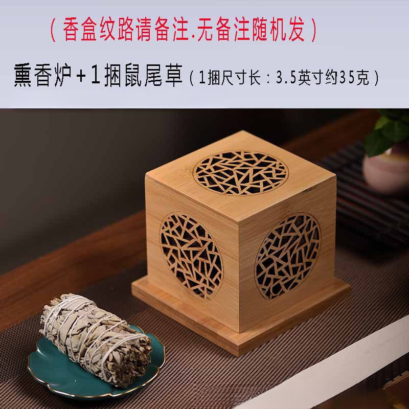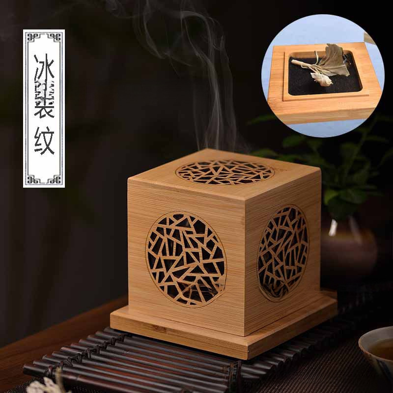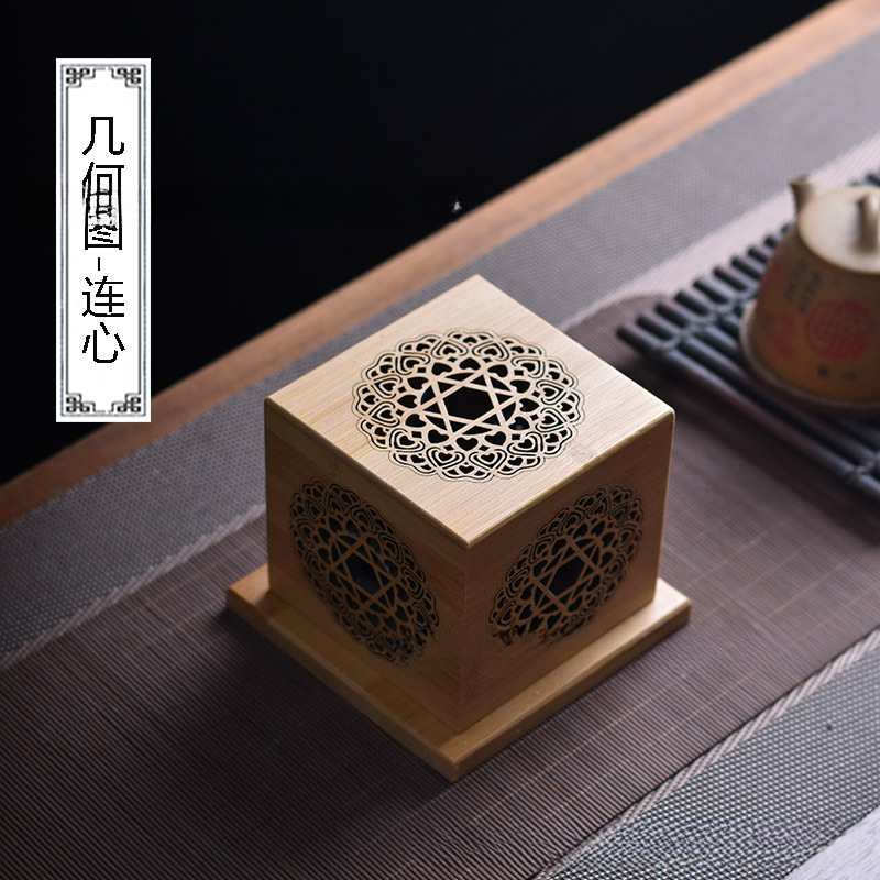 几何图白鼠尾熏香炉水晶炉盘香炉竹木制檀香盒镂空香盒香托香座