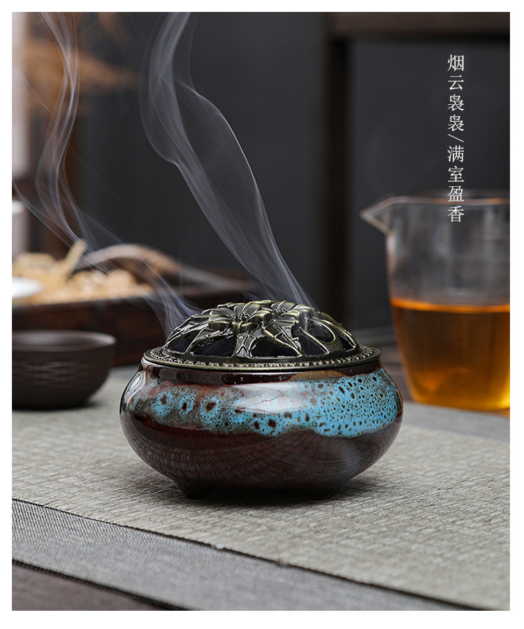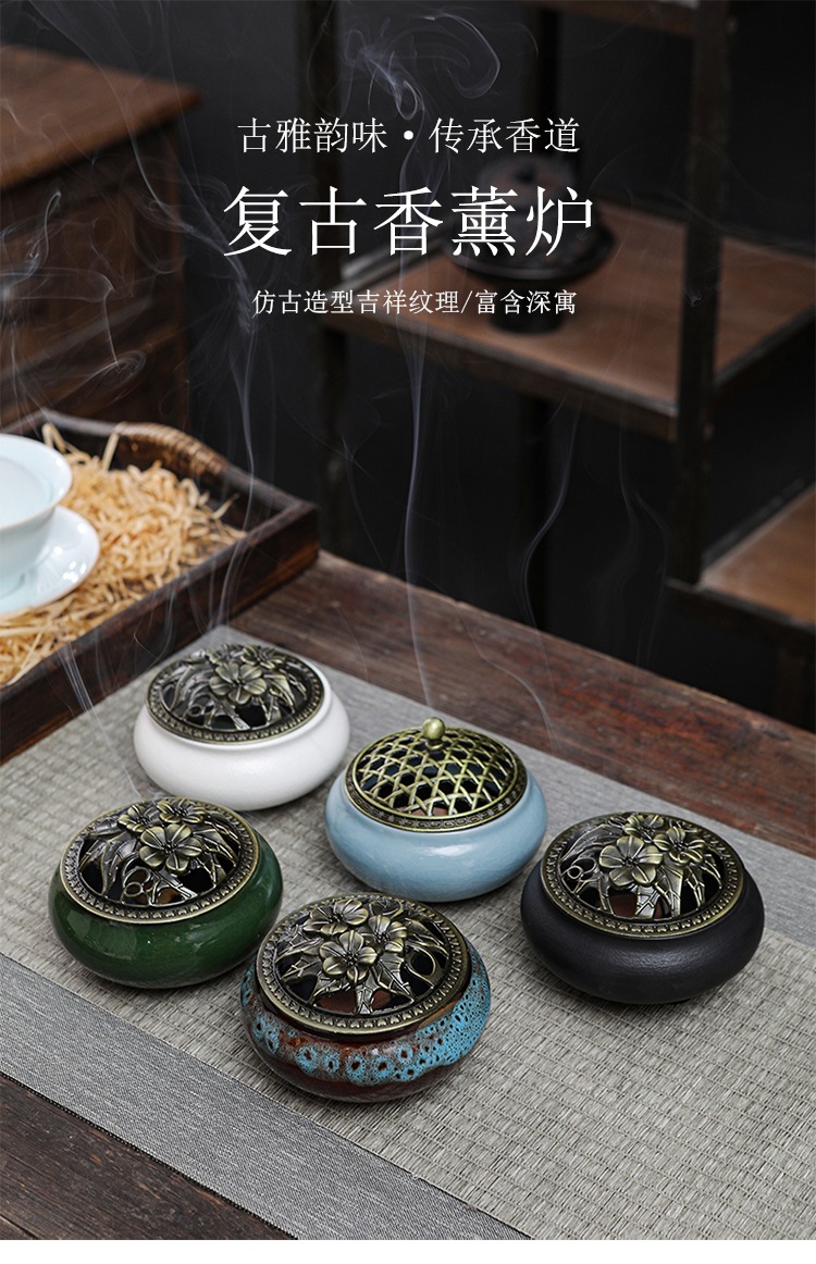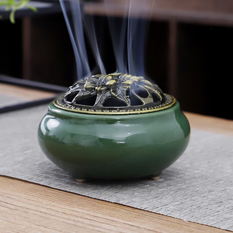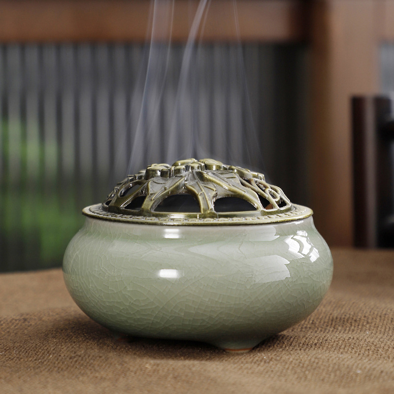 陶瓷香炉青瓷家用仿古小号薰香道冰裂窑变檀香炉厂家直供一件代发
