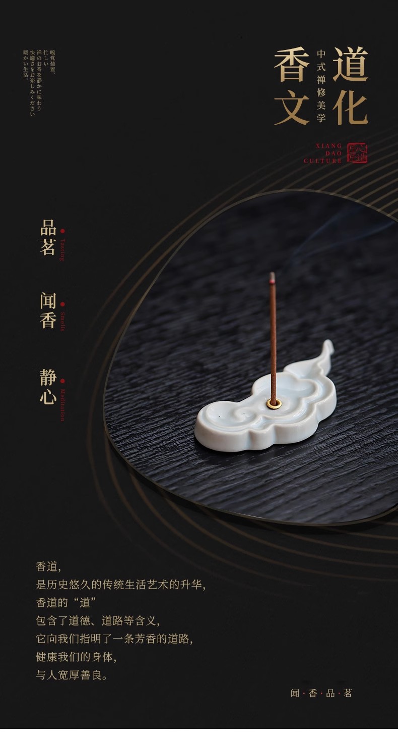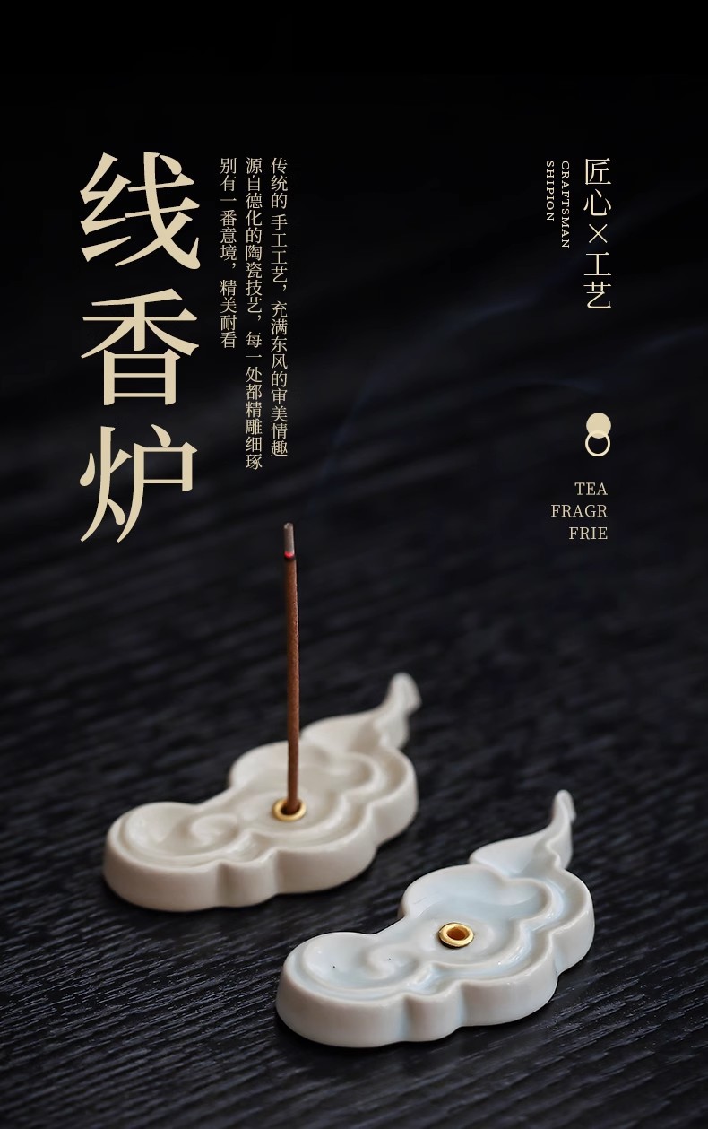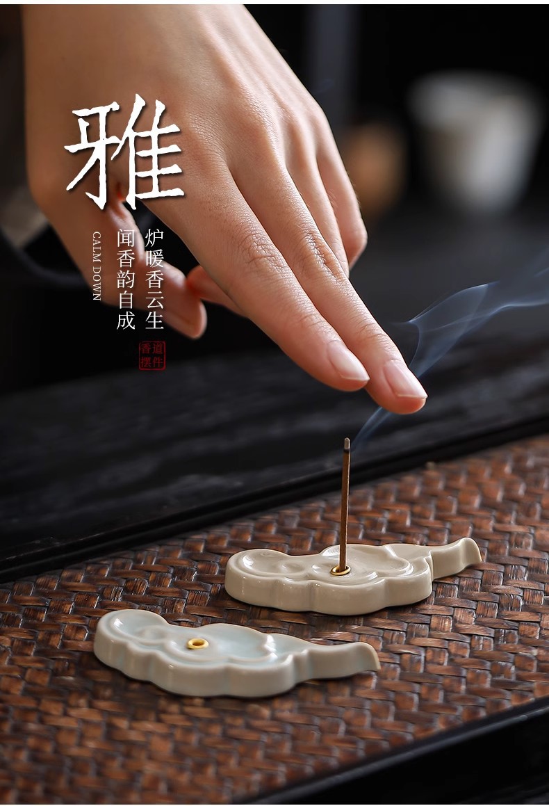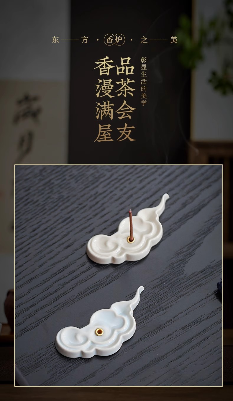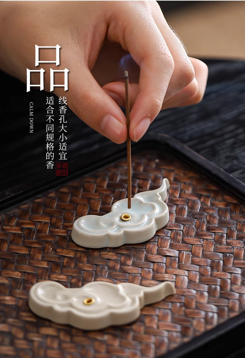 祥云迷你香插中式陶瓷创意桌面香炉家用室内檀香沉香可爱香座香托