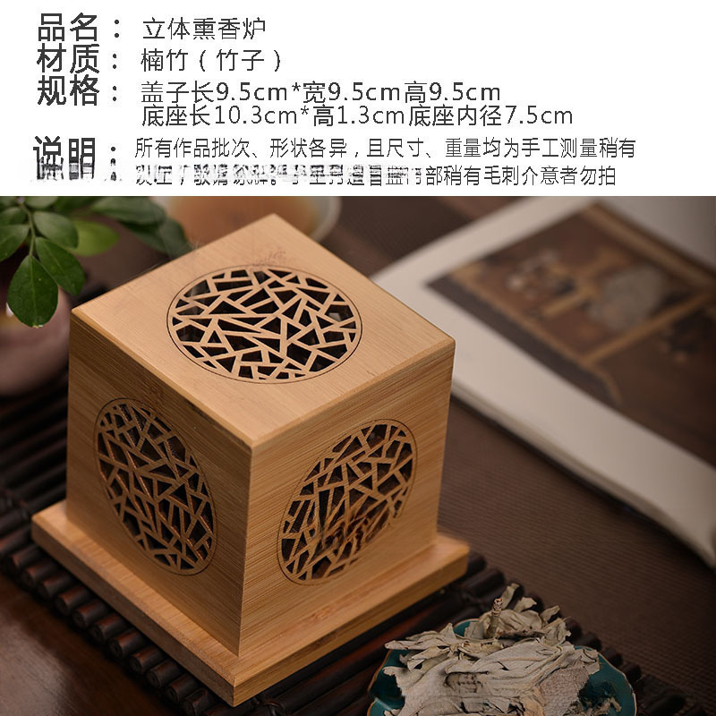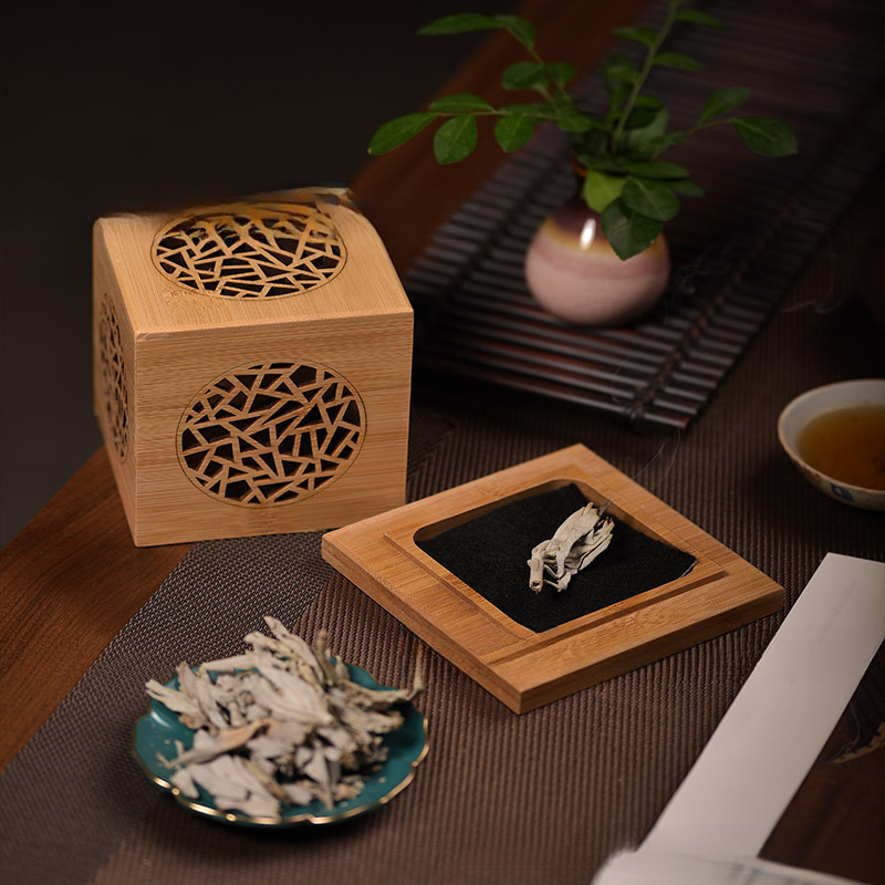 几何图白鼠尾熏香炉水晶炉盘香炉竹木制檀香盒镂空香盒香托香座包