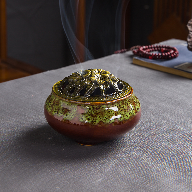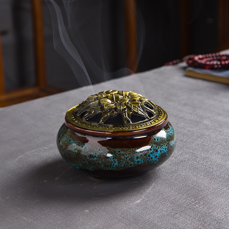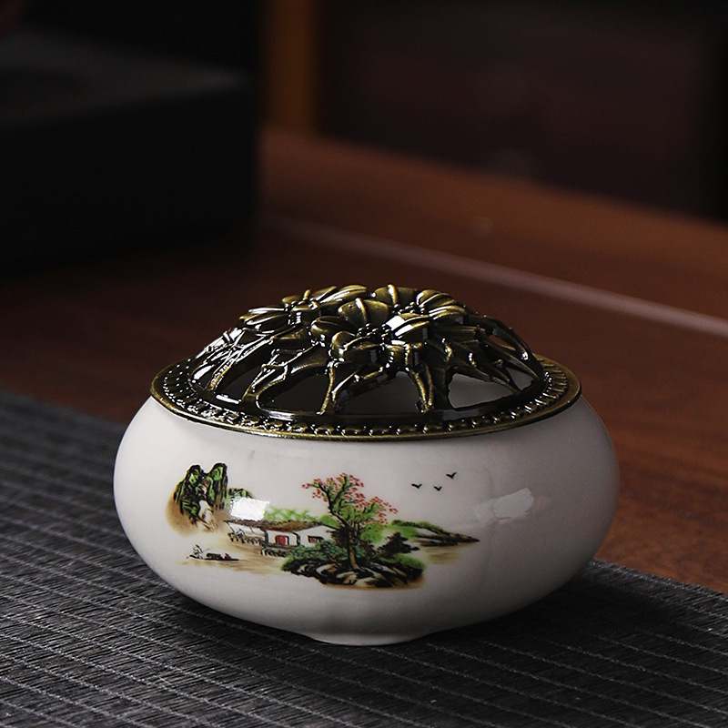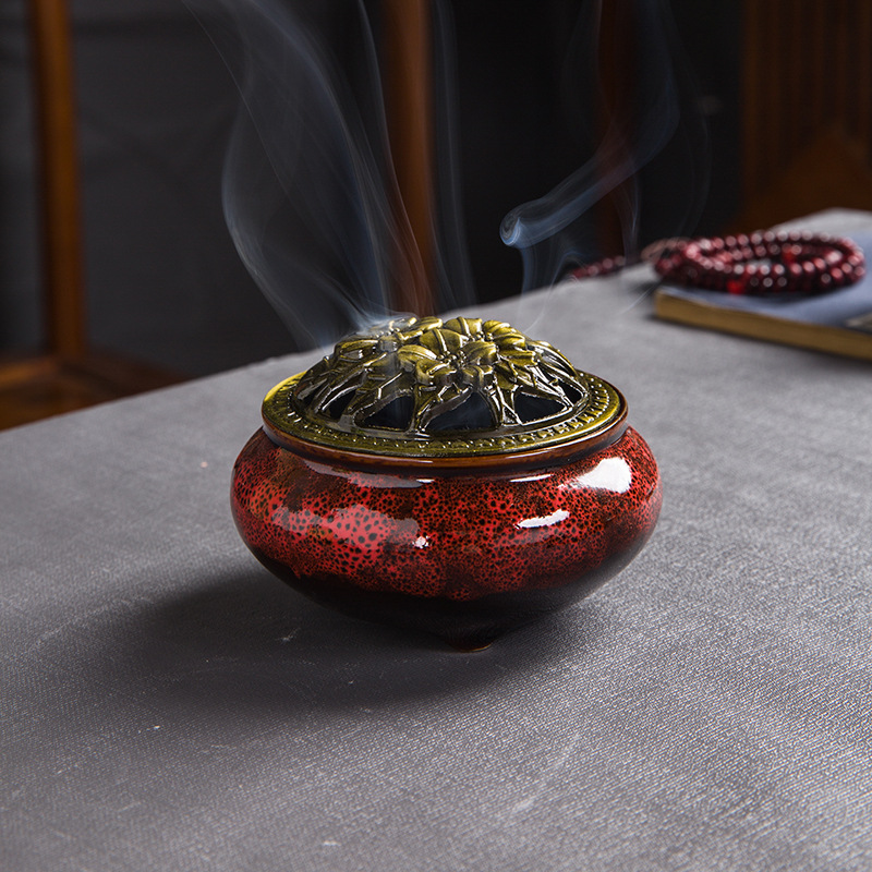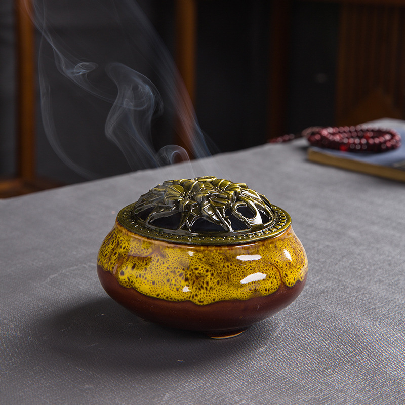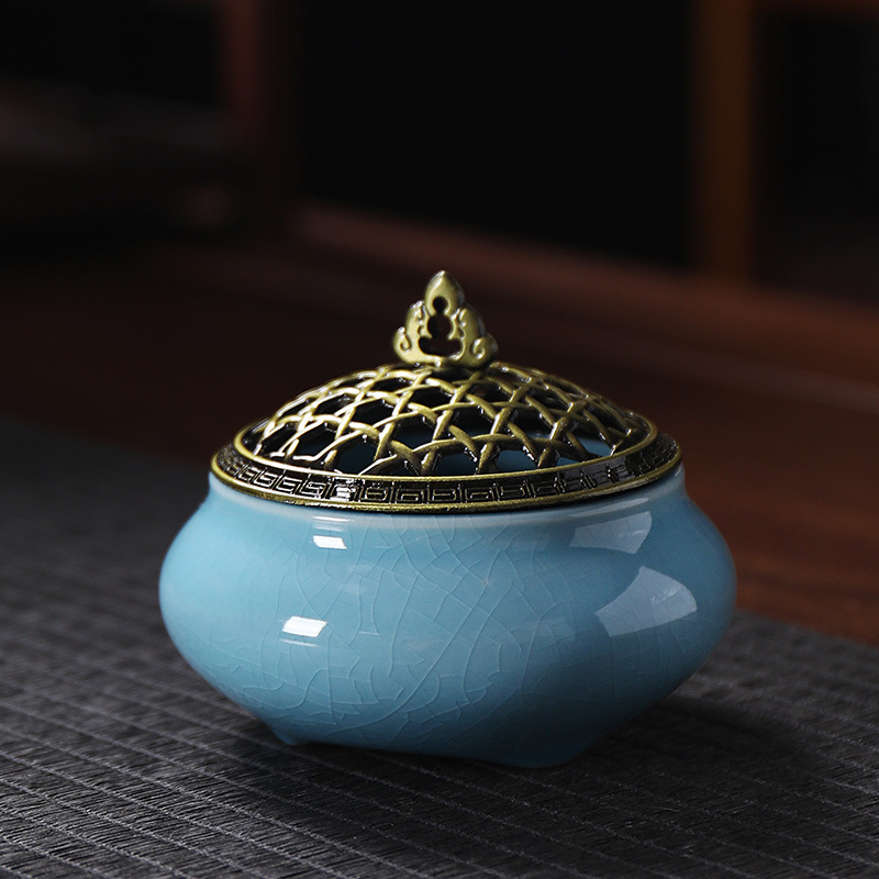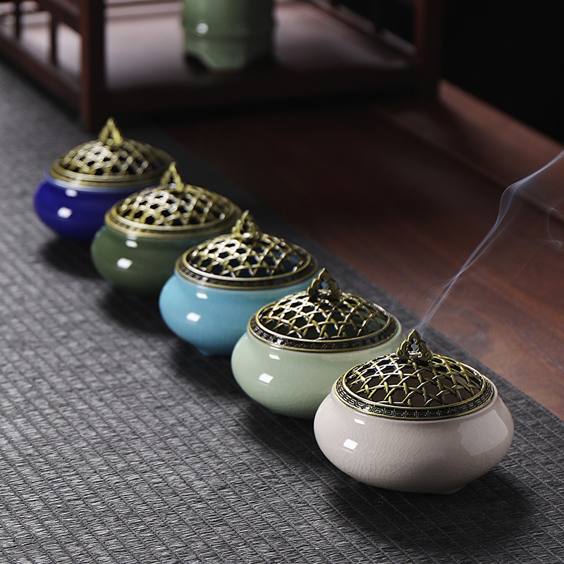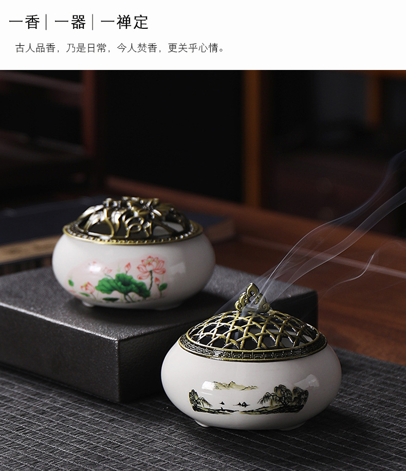陶瓷家用檀香炉三足塔香盘香线香座窑变白瓷小香炉多款式现货批发
