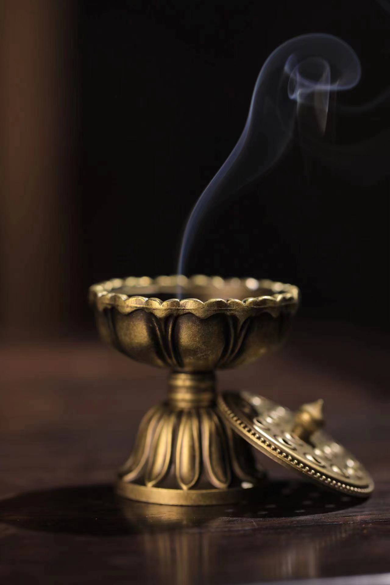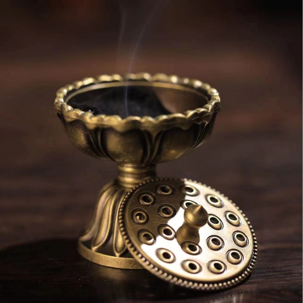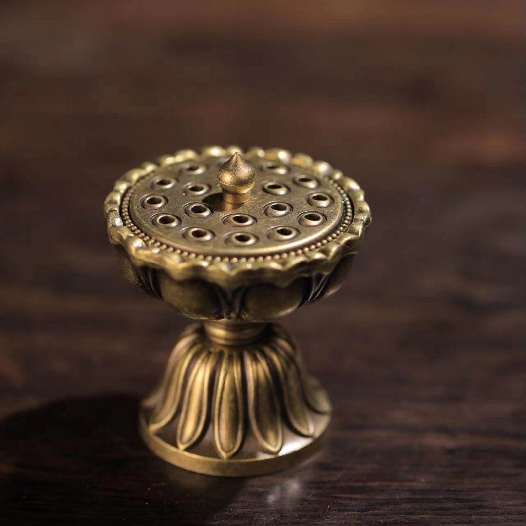 小宝莲灯铜合金香炉金属香篆家用室内小莲花仿古盘香炉中式香薰炉