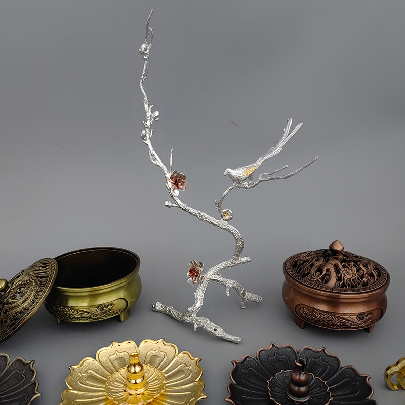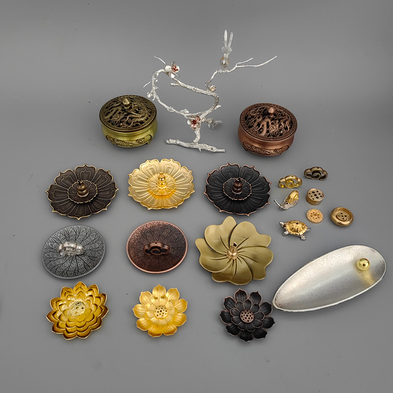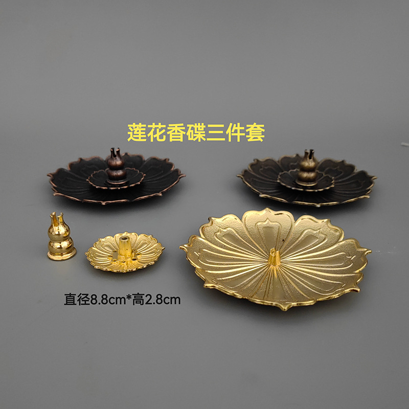 厂家批发合金香插线香铜香炉创意线香插 莲花香盘插香金属工艺