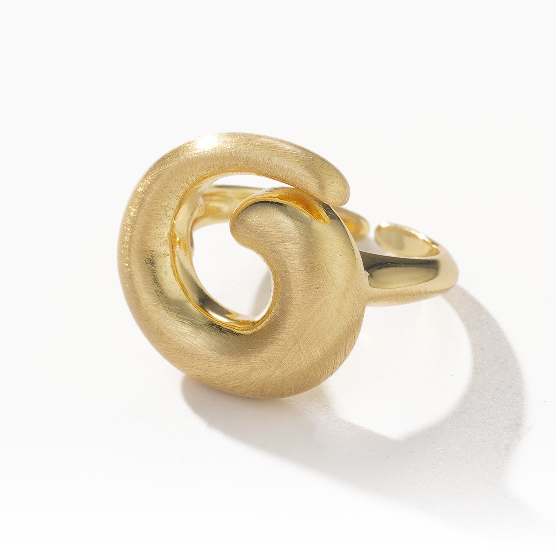 欧美风跨境复古时尚个性蜗牛圆形镂空手饰夸张光面逗号大水滴戒指