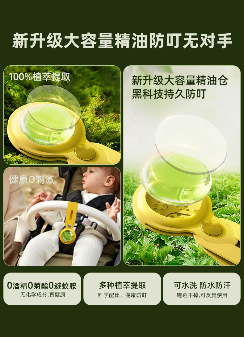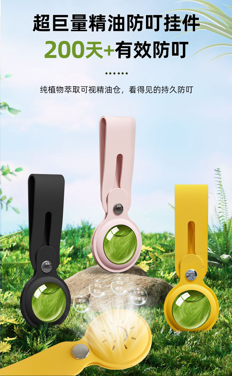 现货防蚊挂件夏季长款植物精油长效精油仓户外运动随身驱蚊硅胶扣