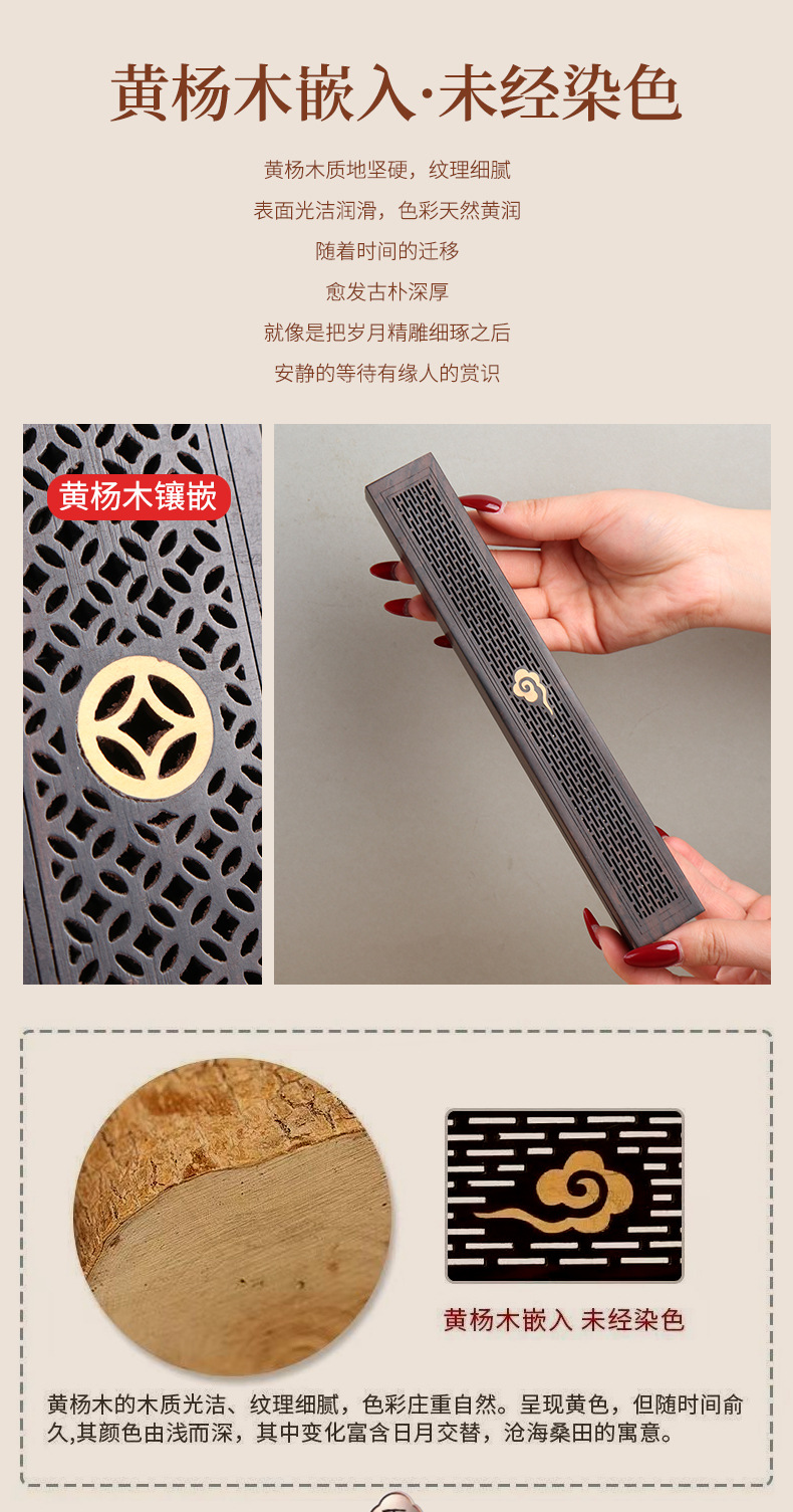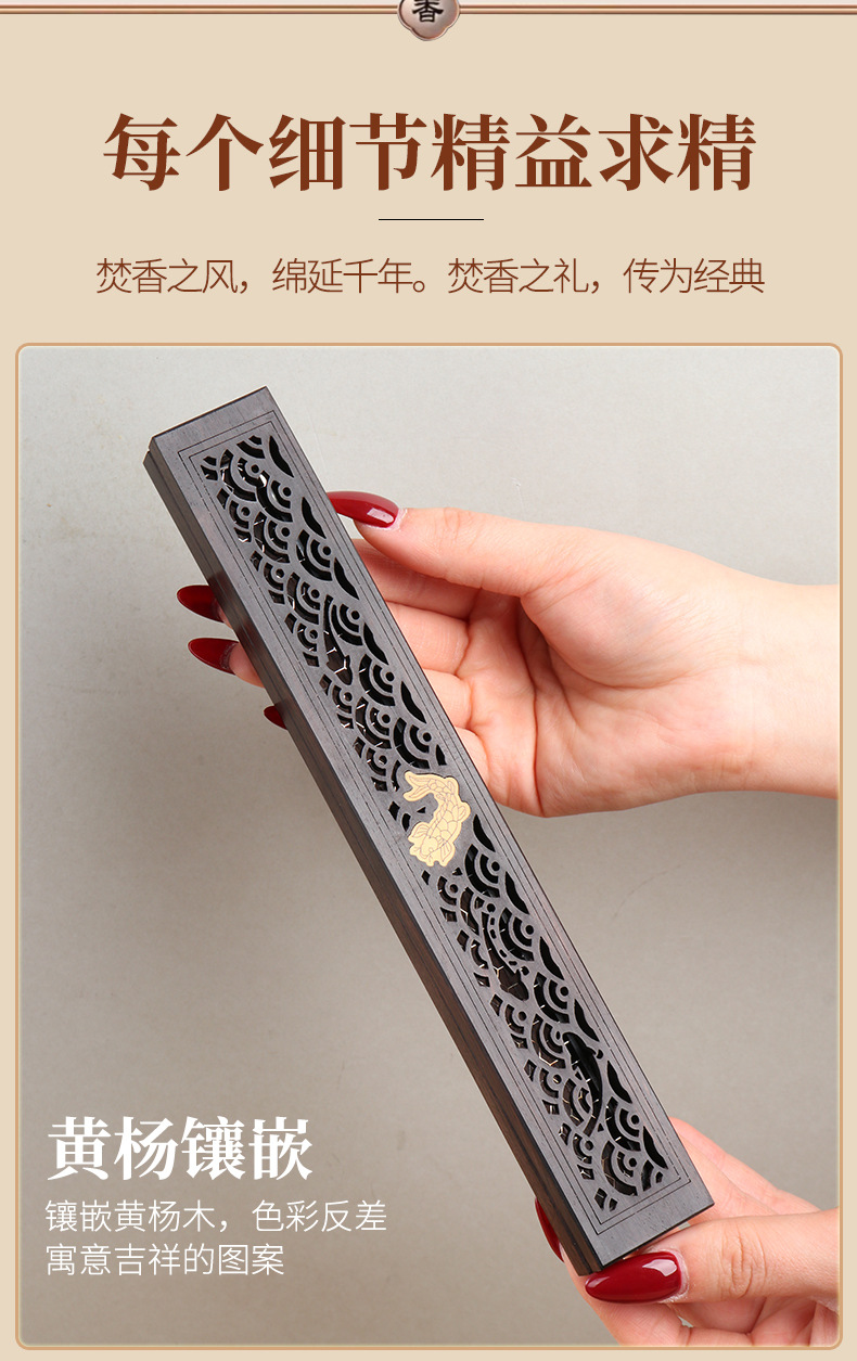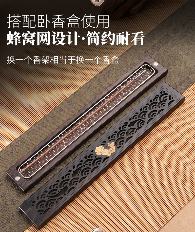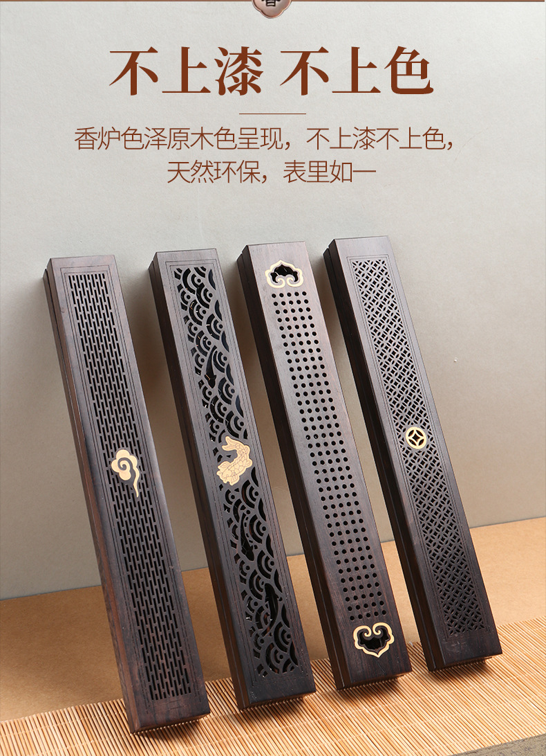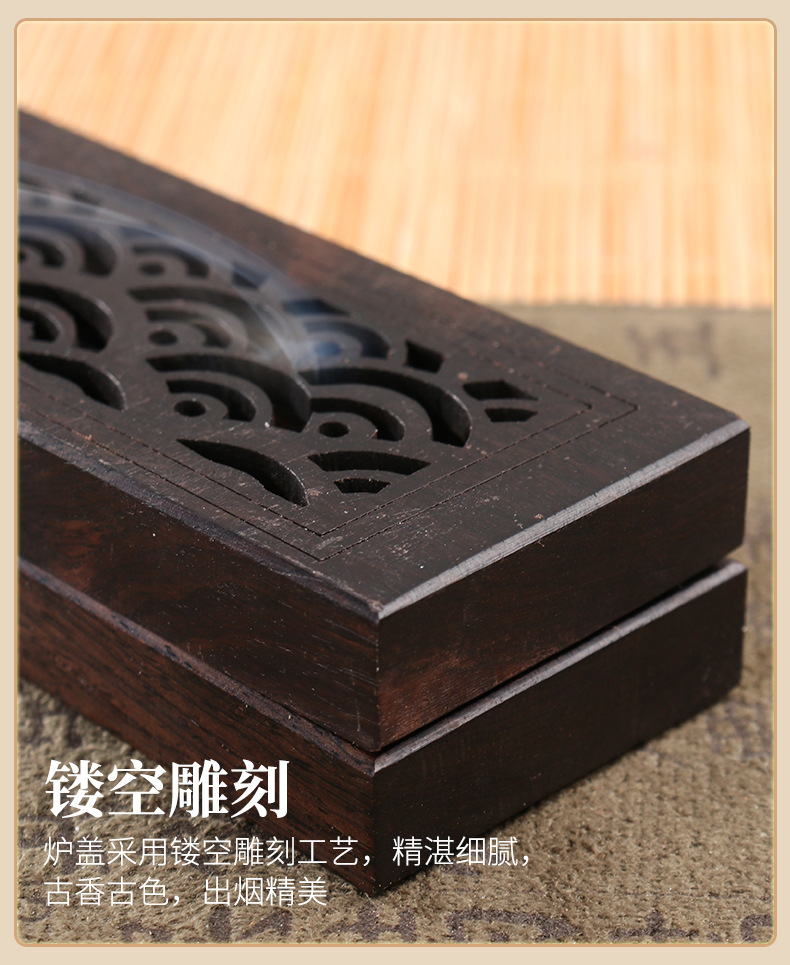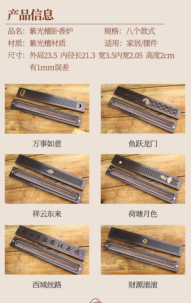 紫光檀卧香盒香炉家用室内香薰木质檀香炉沉香线香黑檀木香盒焚香