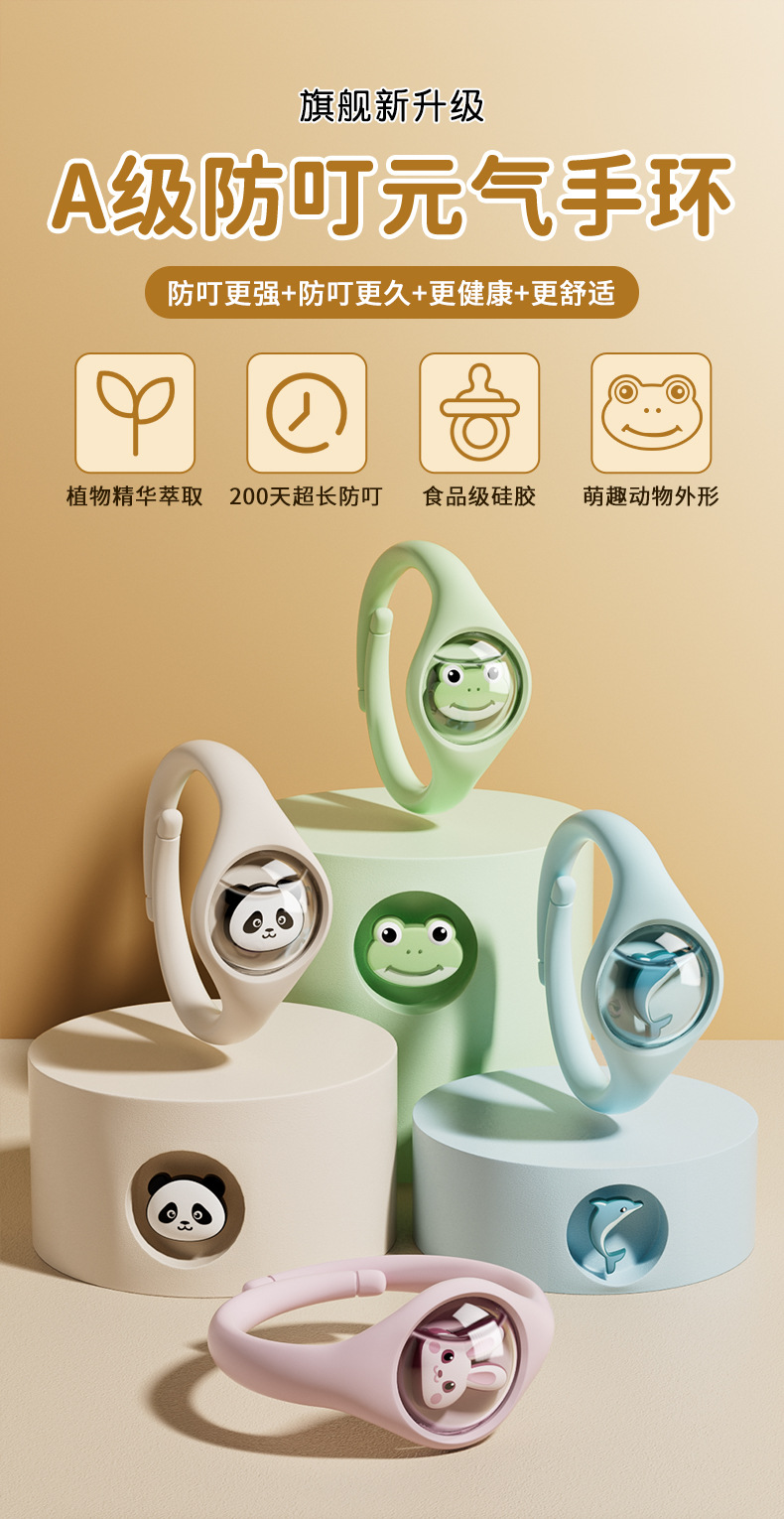 卡通植物精油驱蚊手环儿童学生户外防蚊虫叮咬神器随身硅胶手链扣