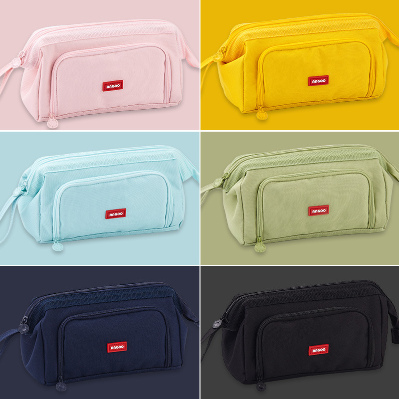 安蔻大容量双层帆布笔袋多功能手提文具盒简约学生铅笔盒