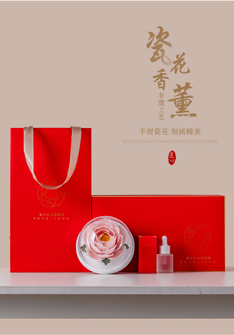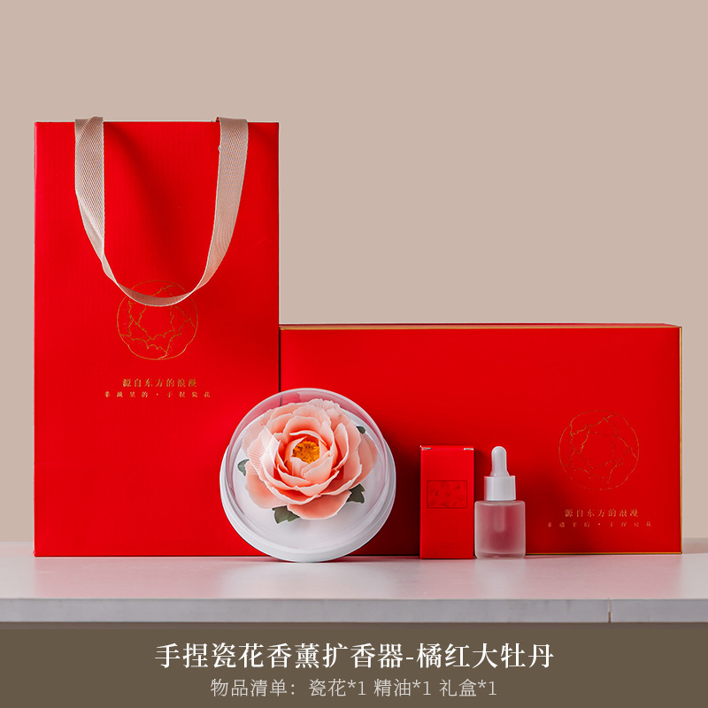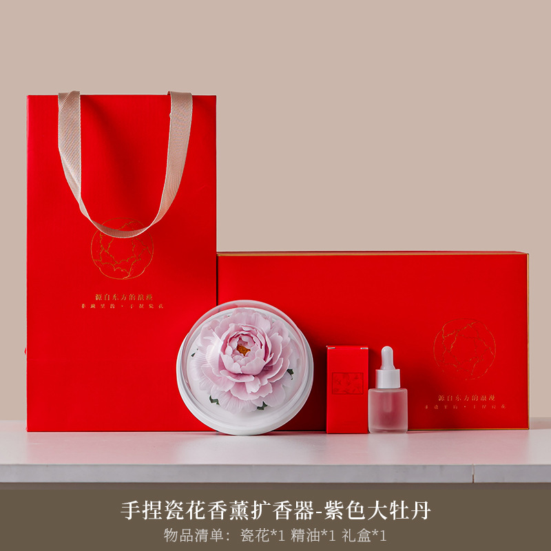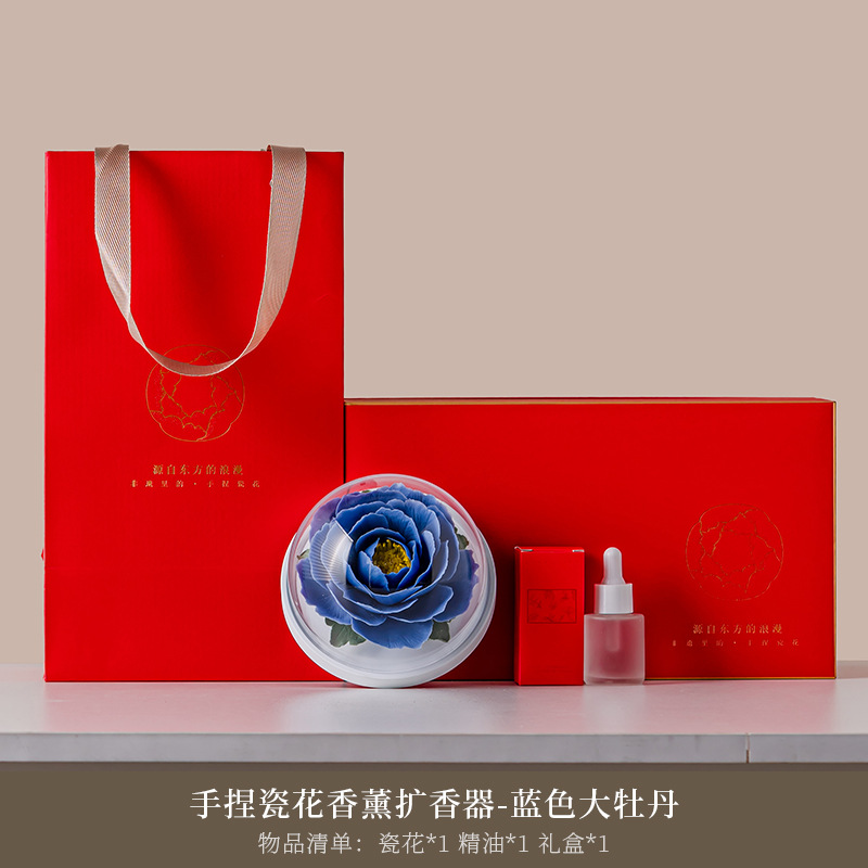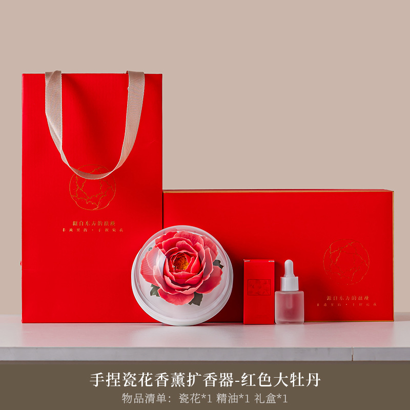 非遗陶瓷花香薰工艺品牡丹扩香器摆件高级感小众跨境车载伴手礼品