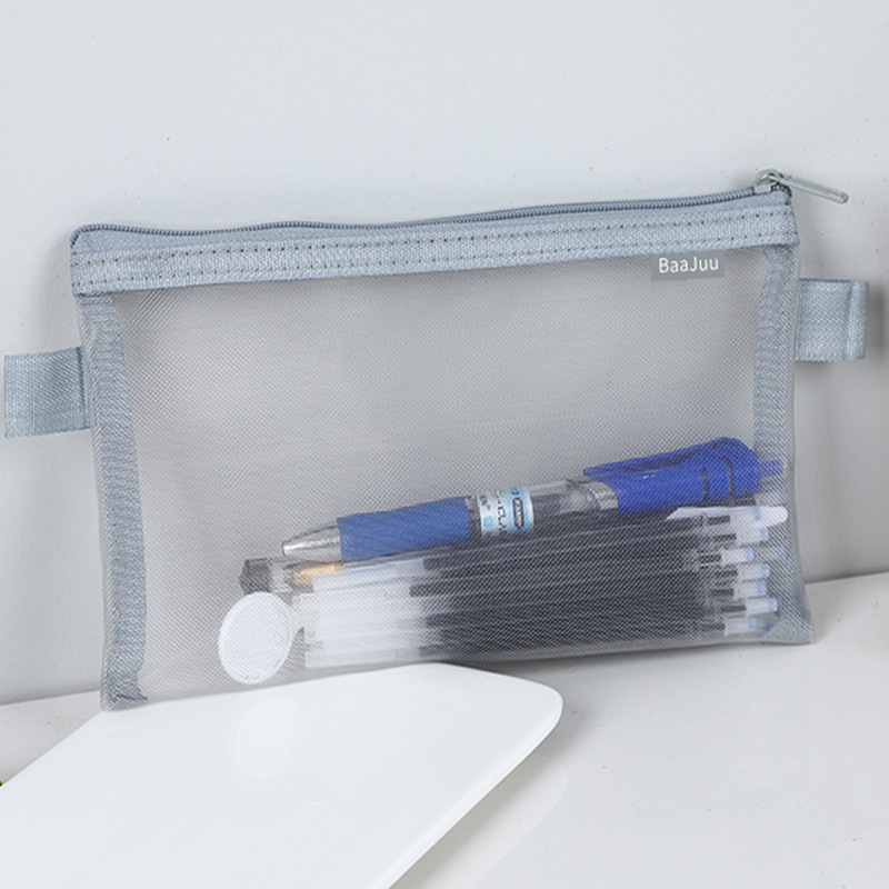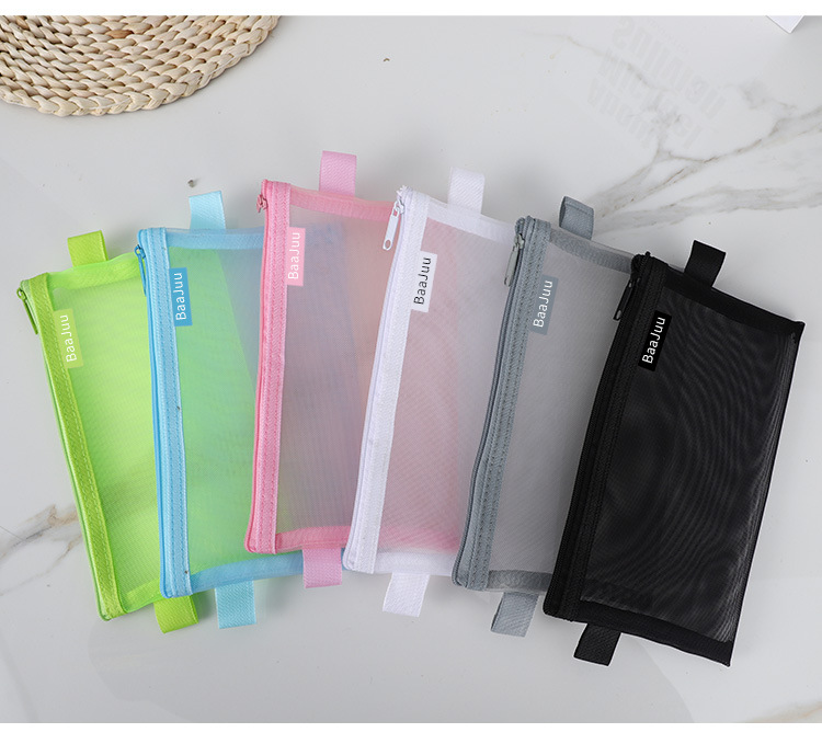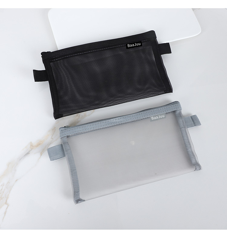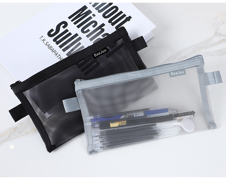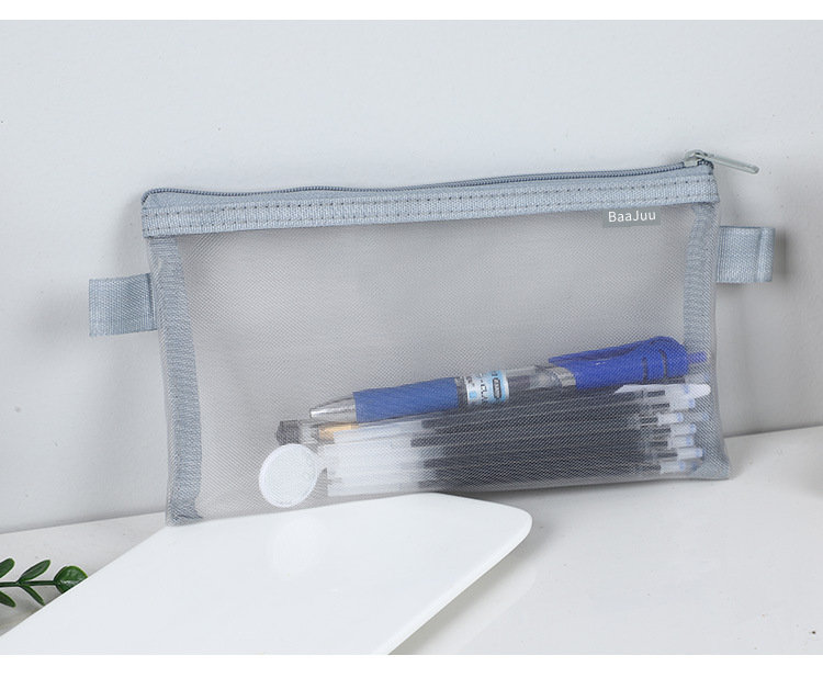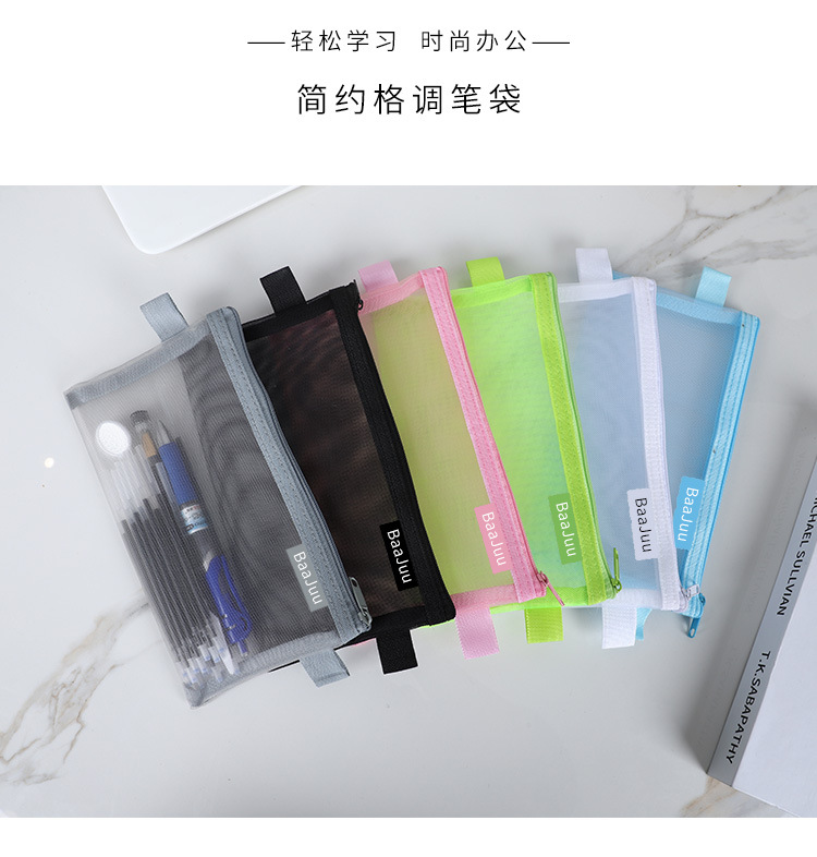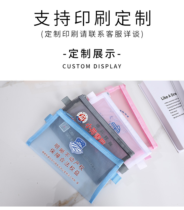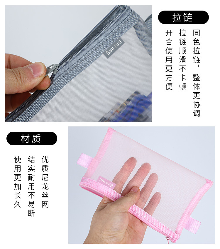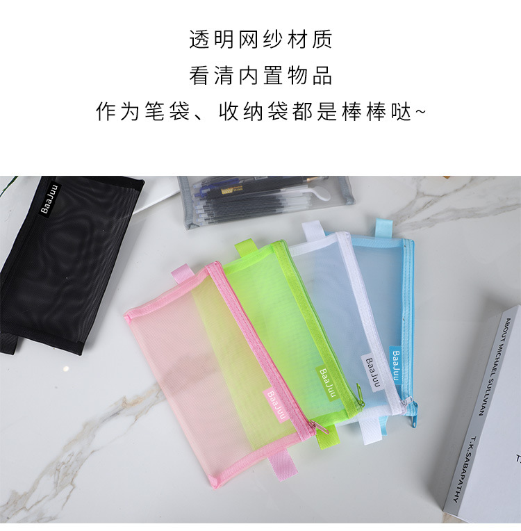 文具笔袋透明学生大容量考试专用铅笔袋文具盒简约网纱拉链袋定制