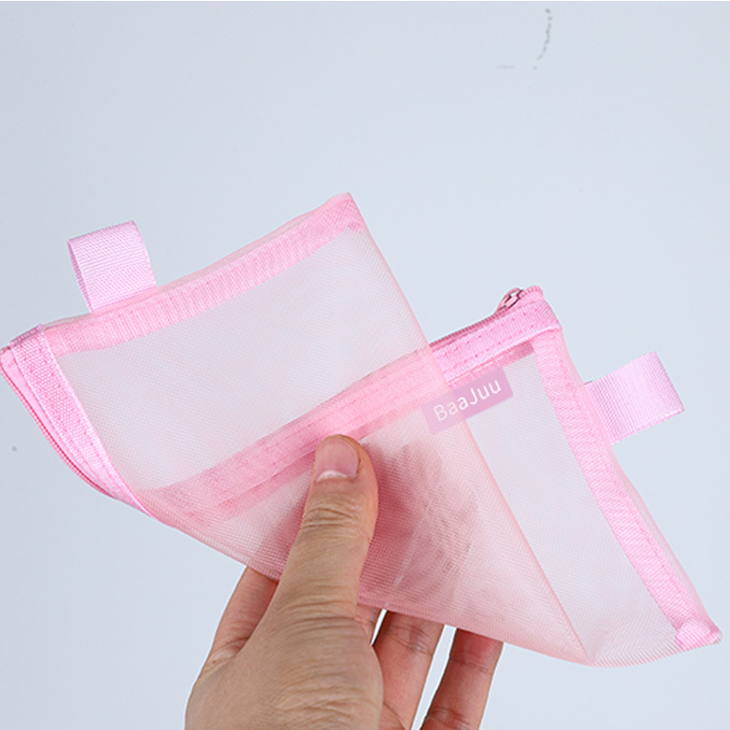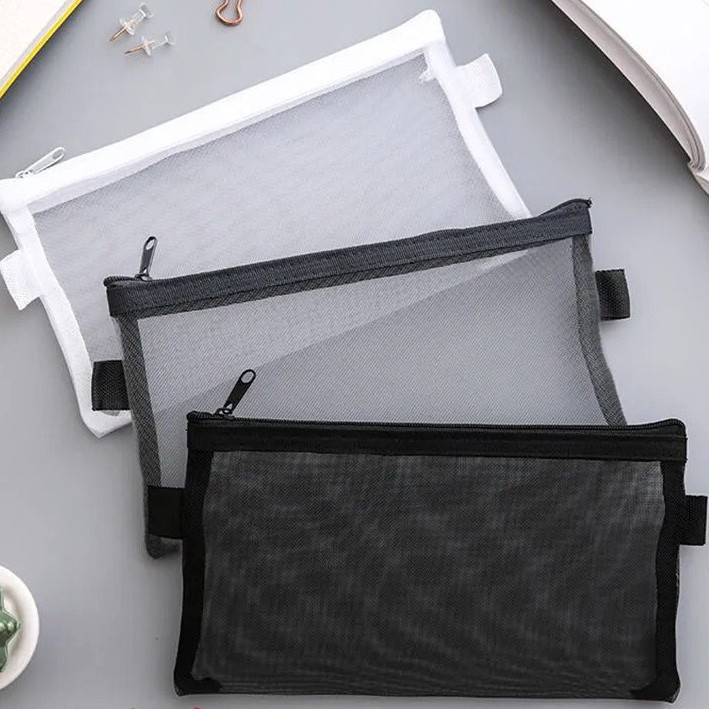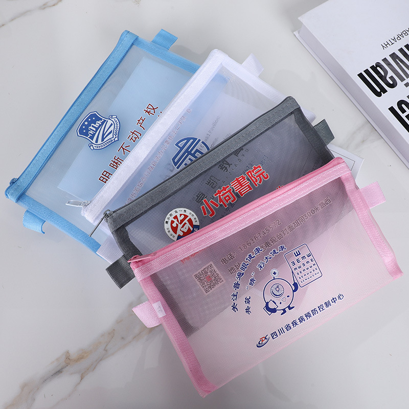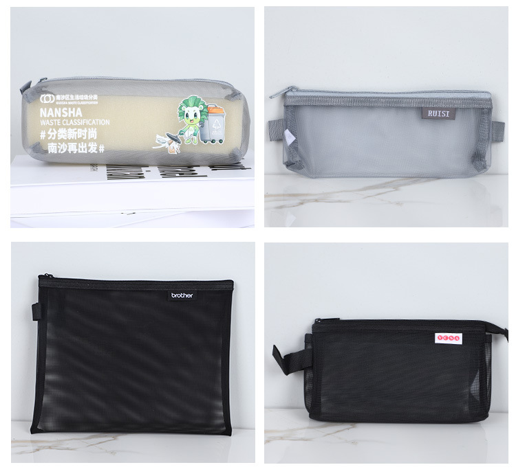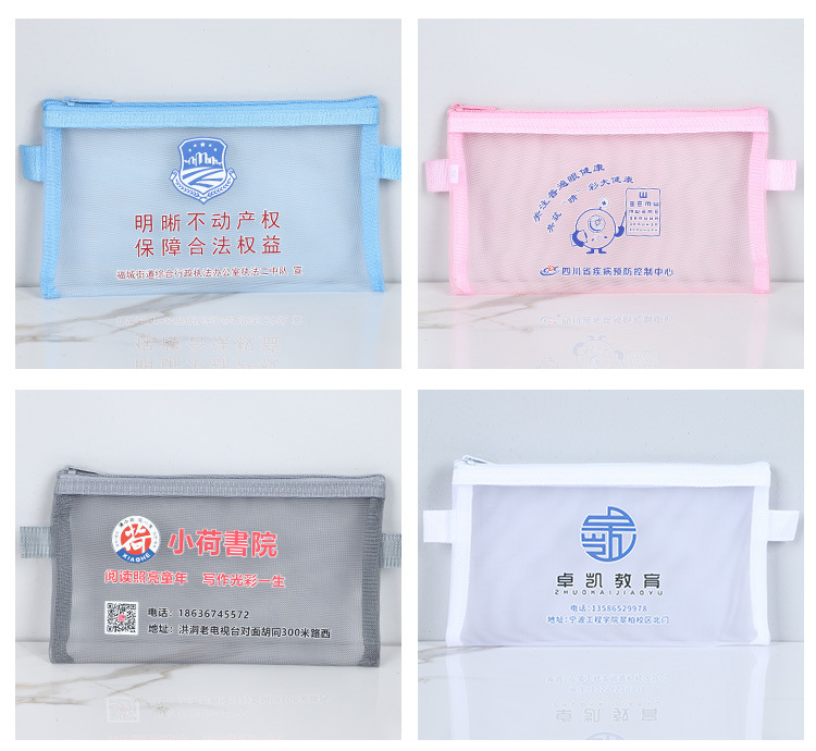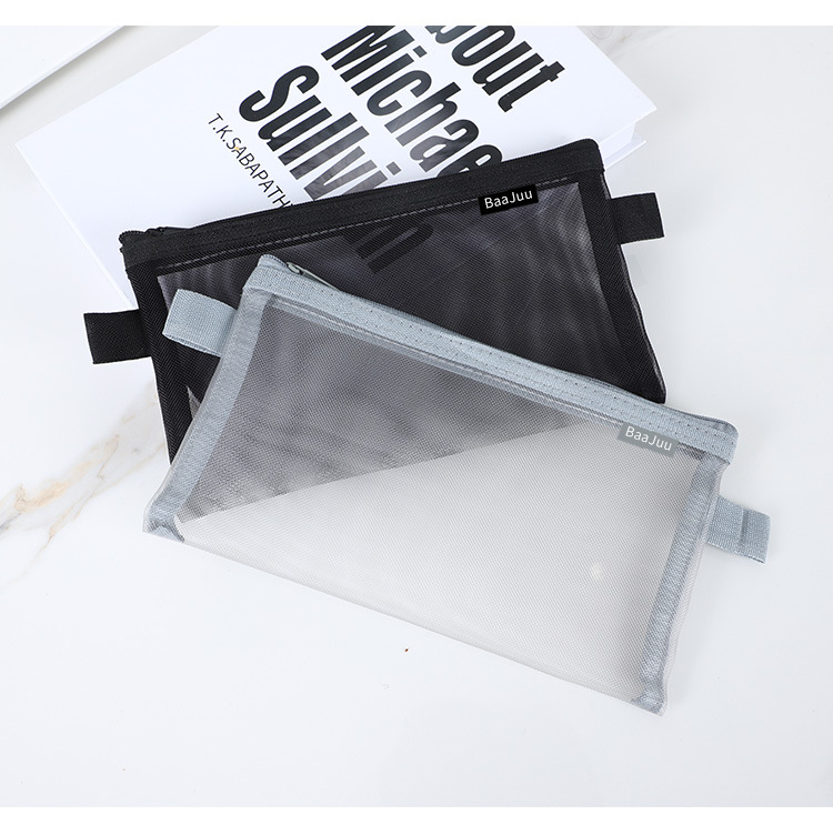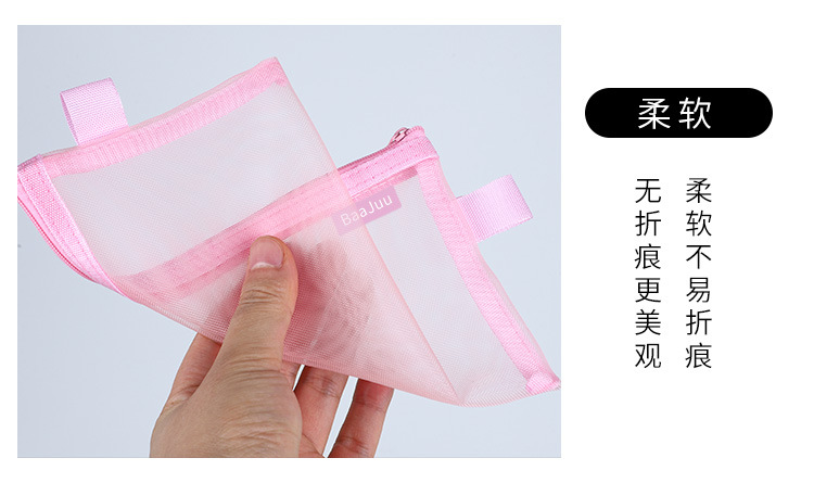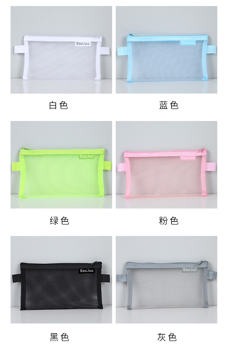 文具笔袋透明学生大容量考试专用铅笔袋文具盒简约网纱拉链袋定制