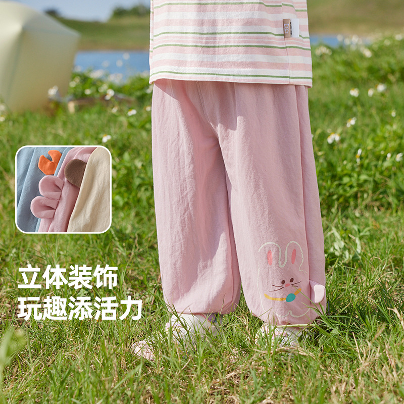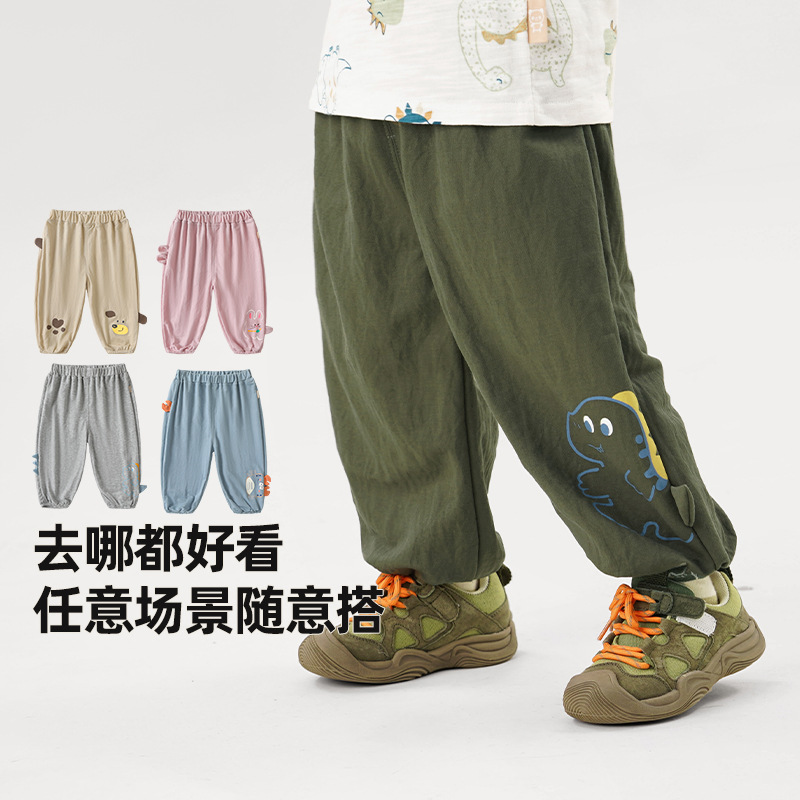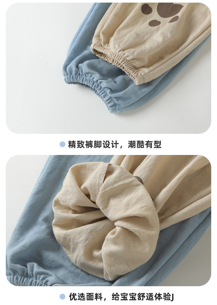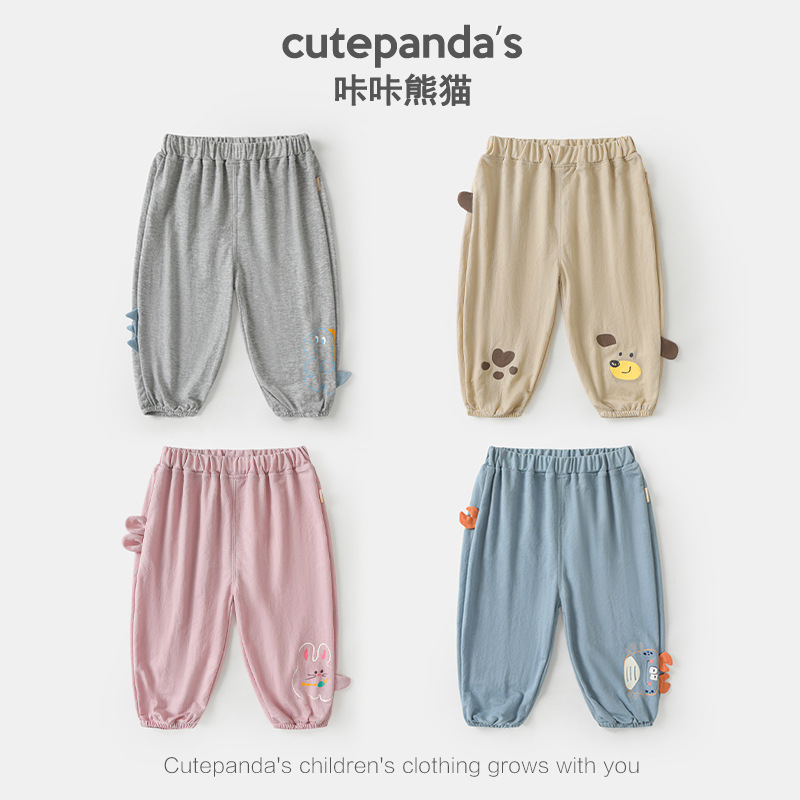 咔咔熊猫儿童防蚊裤婴儿长裤夏装男童裤子女童宝宝夏季空调裤童装