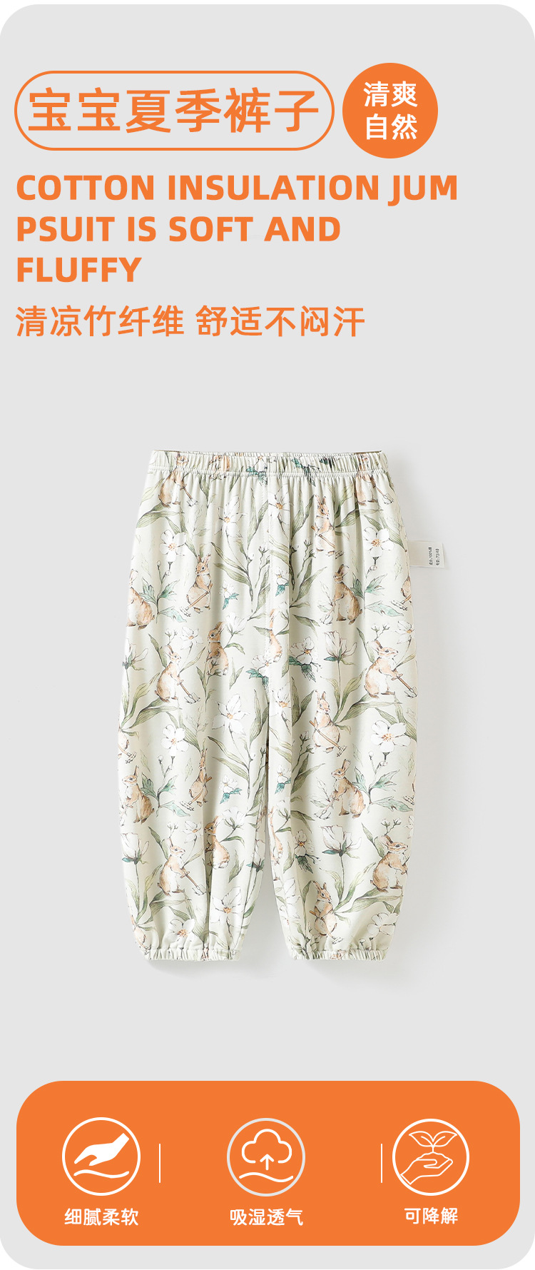 伊日婴幼儿夏款防蚊裤宝宝夏季竹纤维长裤婴儿男宝女宝休闲防蚊裤