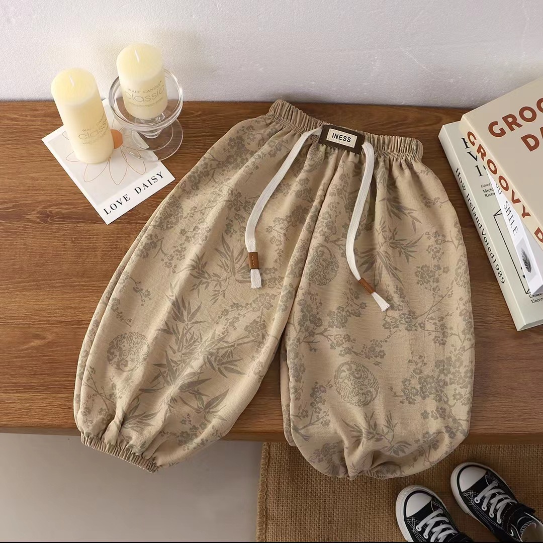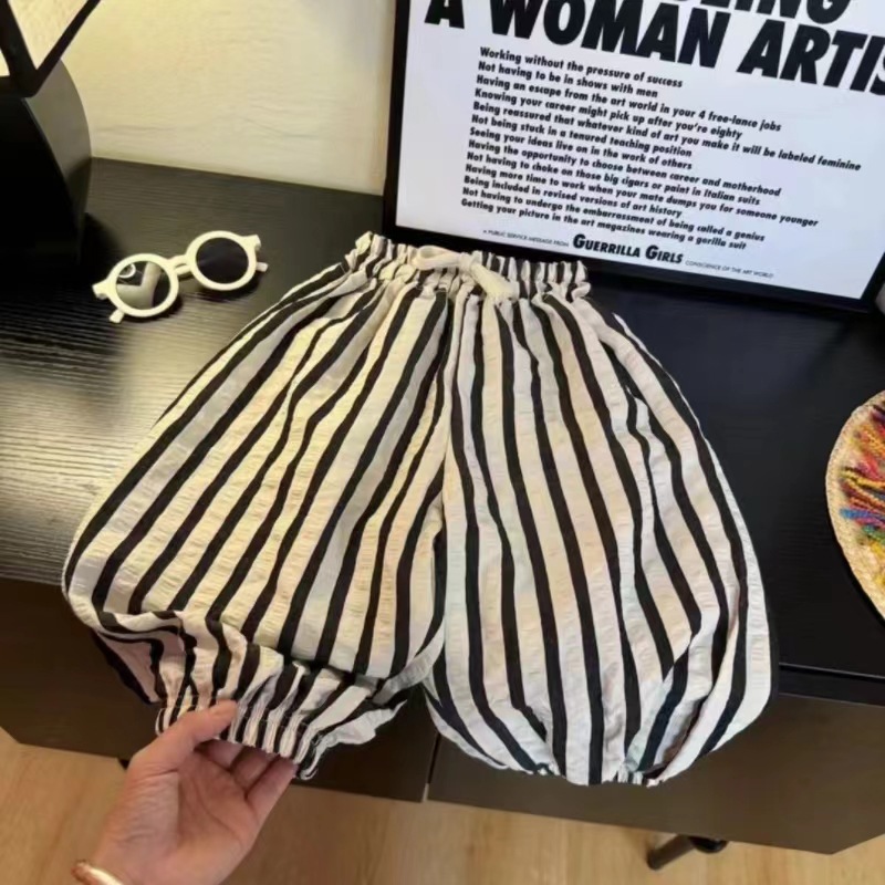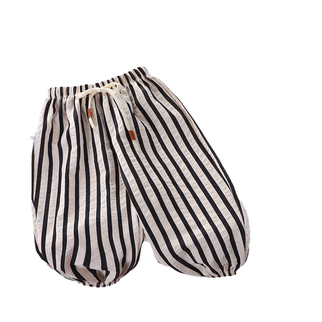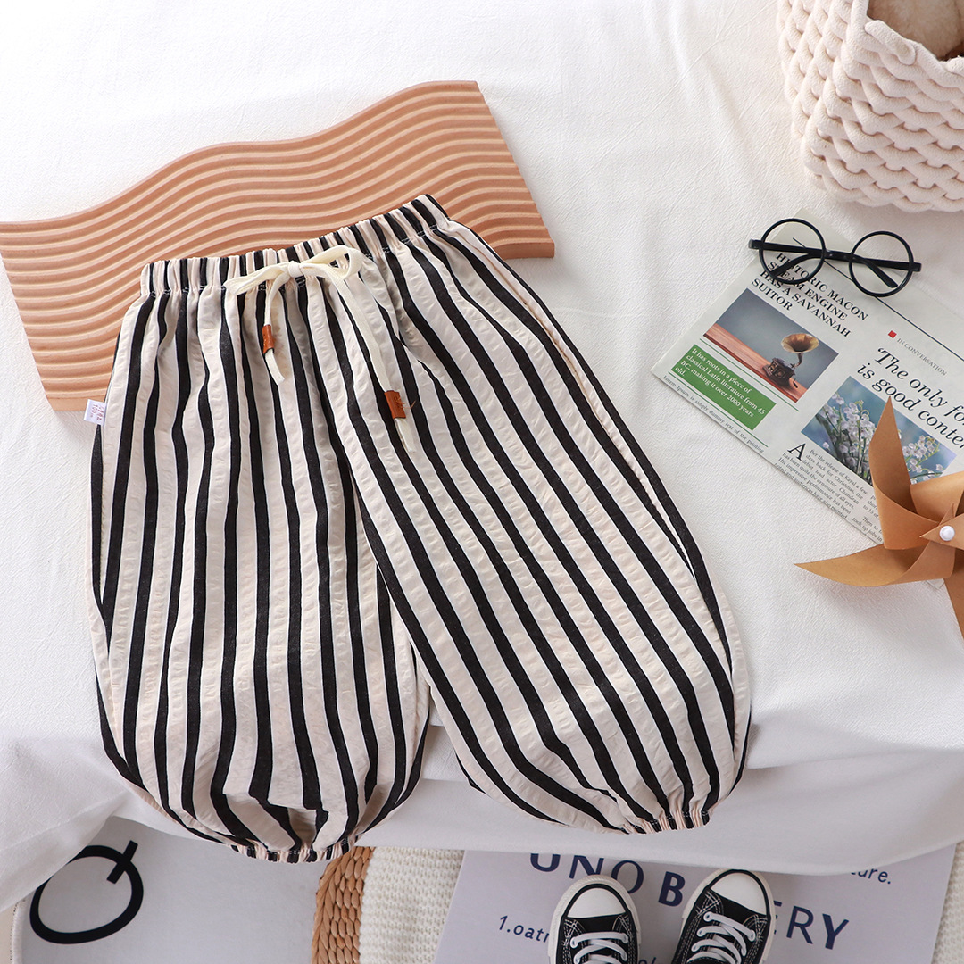 夏季儿童休闲防蚊裤男童女童灯笼裤宝宝薄款白塔条纹长裤一件代销