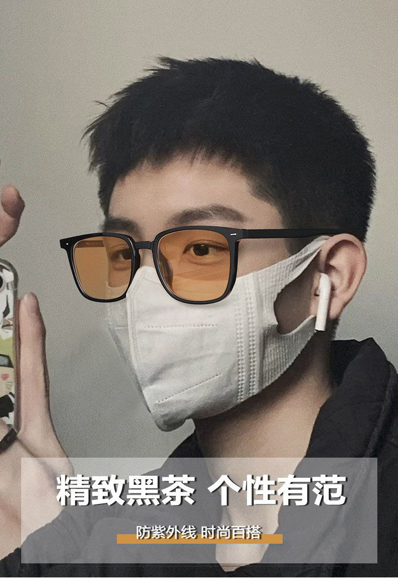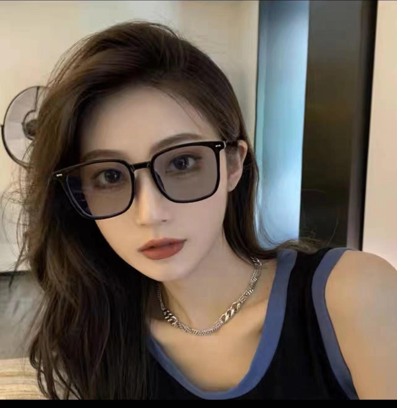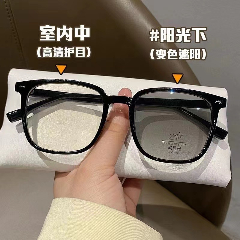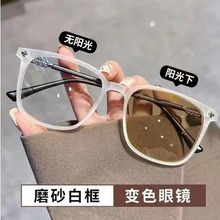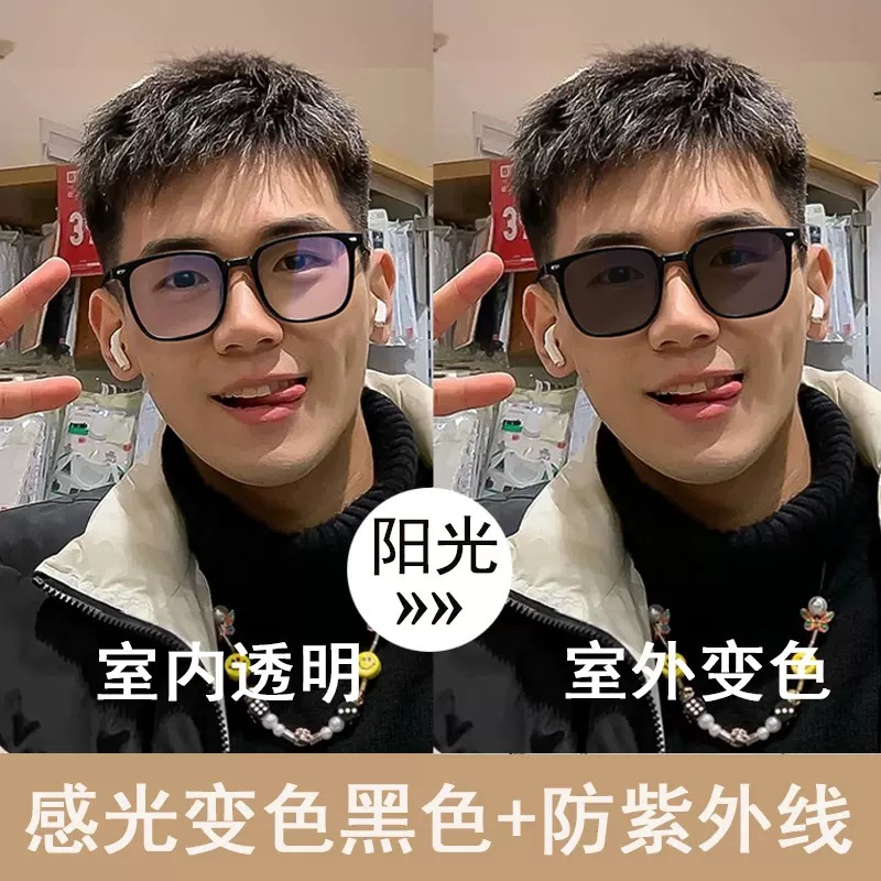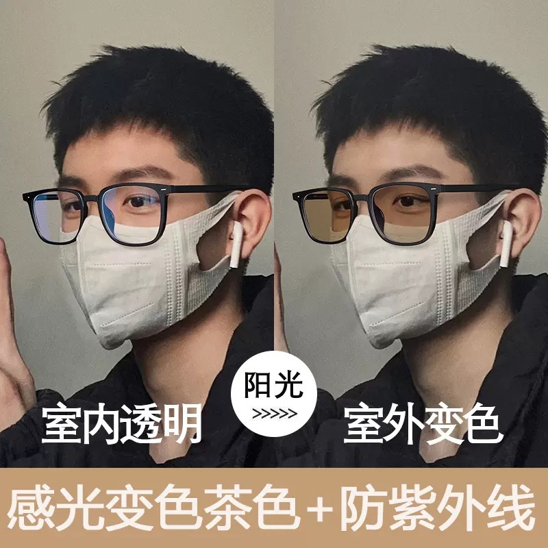 感光变色眼镜同款网红眼镜框黑框茶色墨镜男潮复古女配近视太阳镜
