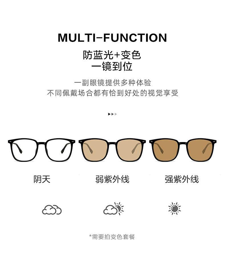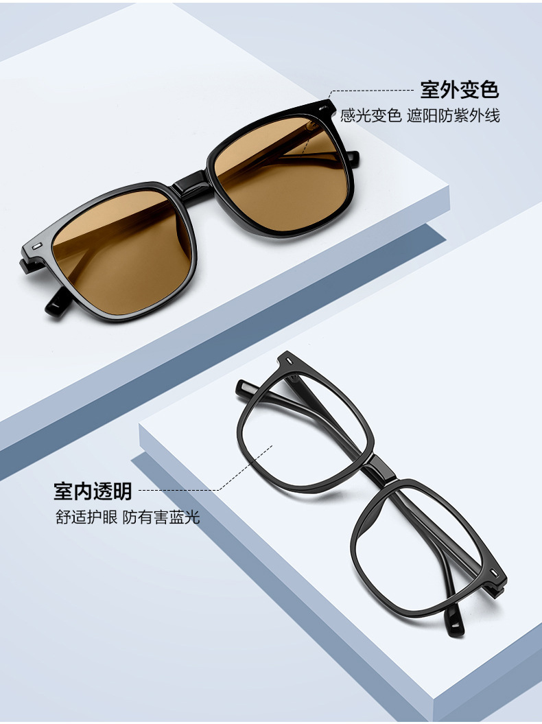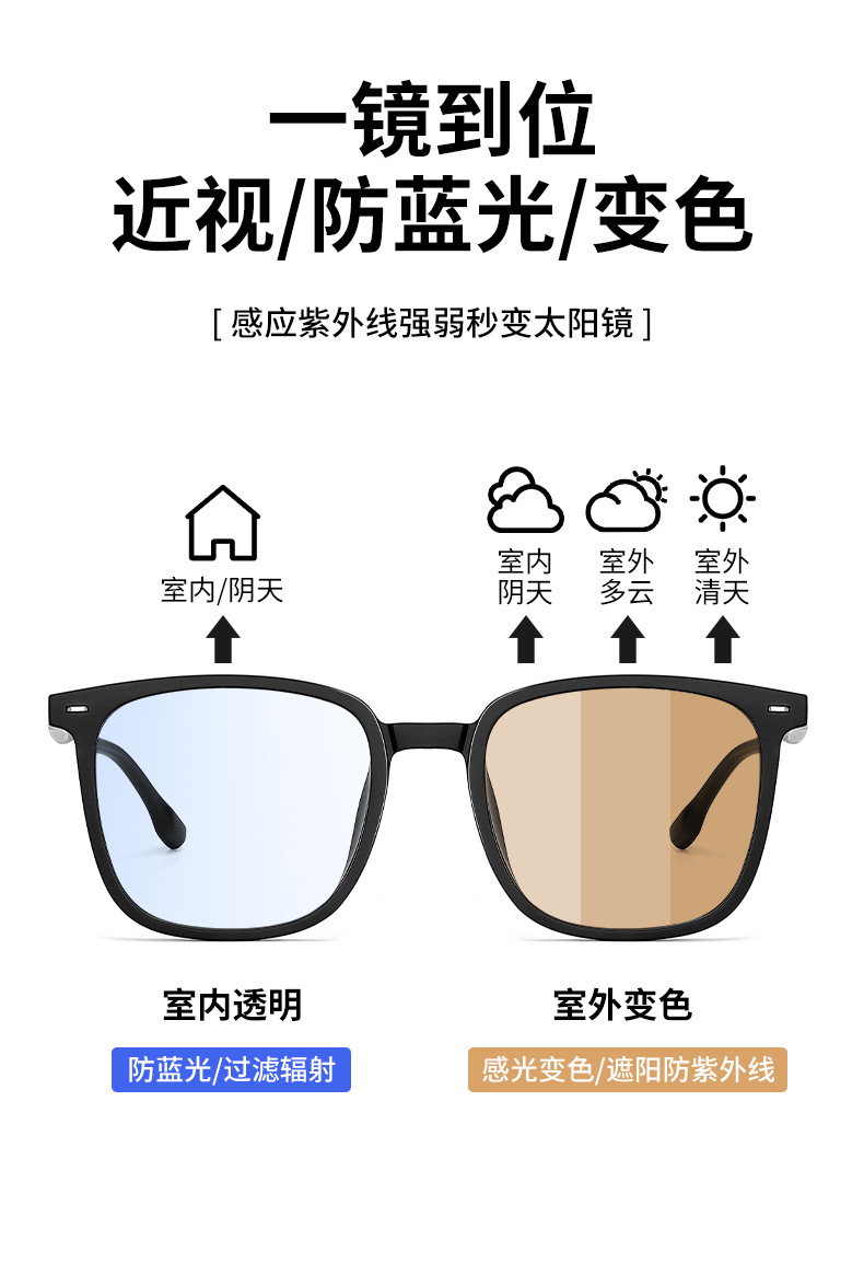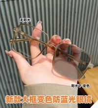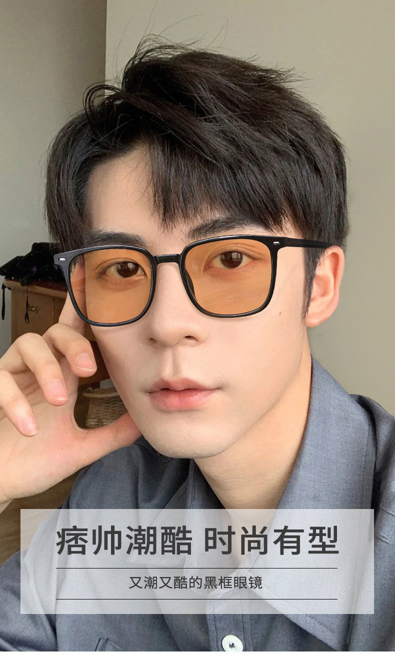 感光变色眼镜同款网红眼镜框黑框茶色墨镜男潮复古女配近视太阳镜