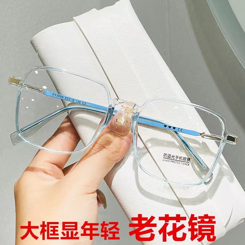 防蓝光老花镜女网红时尚潮款年轻高清大框老光眼镜成品男老花眼镜