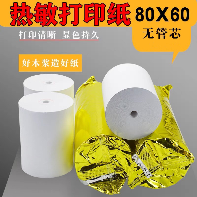 80x60热敏纸无芯80*60收银纸80mm厨房打印纸80 60小票纸后厨打单